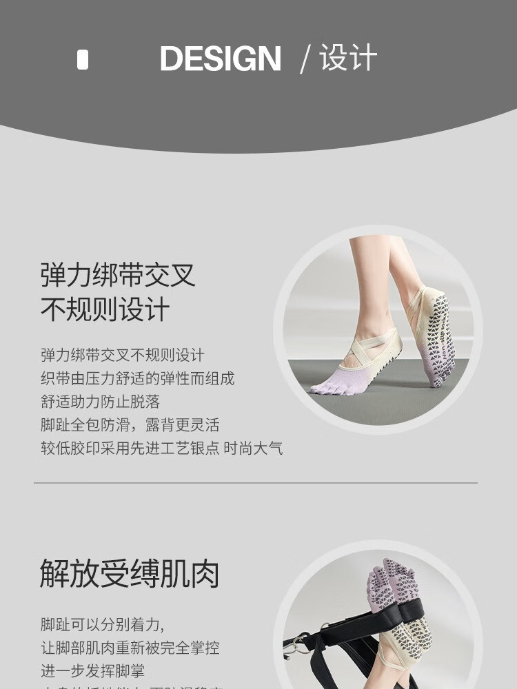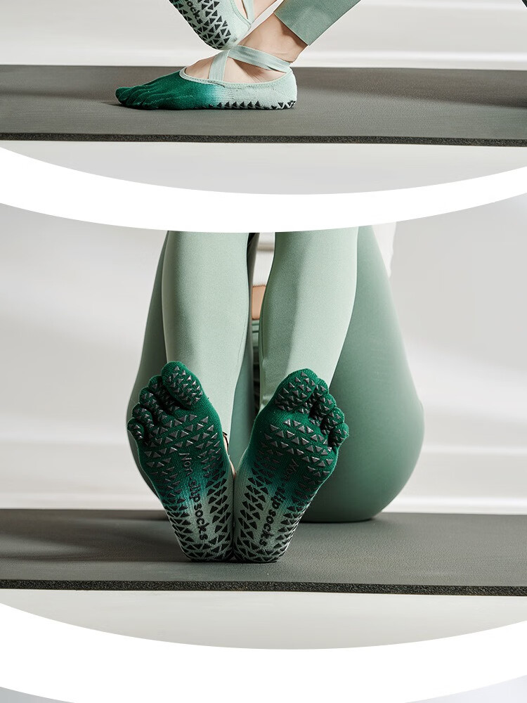 SooGree Yoga Socks Women's Non-Slip Five-Finger Sports Fitness Yoga Pilates Ballet Jump Rope Strap Tie-Dye Non-Slip Socks GSW88697 Gradient Strap Yoga Socks-White Purple