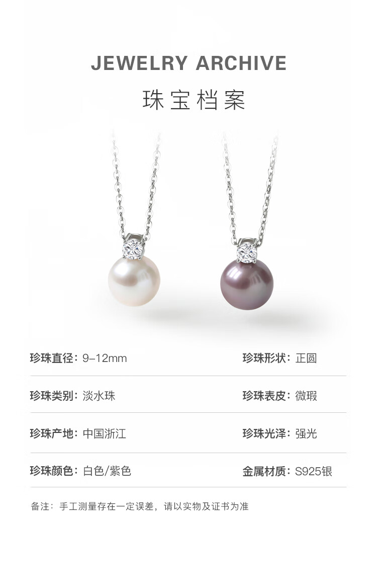 Pearl Queen Princess Diana Edison Pearl Pendant S925 Silver Purple White Pearl Necklace Birthday Gift White 11-12mm