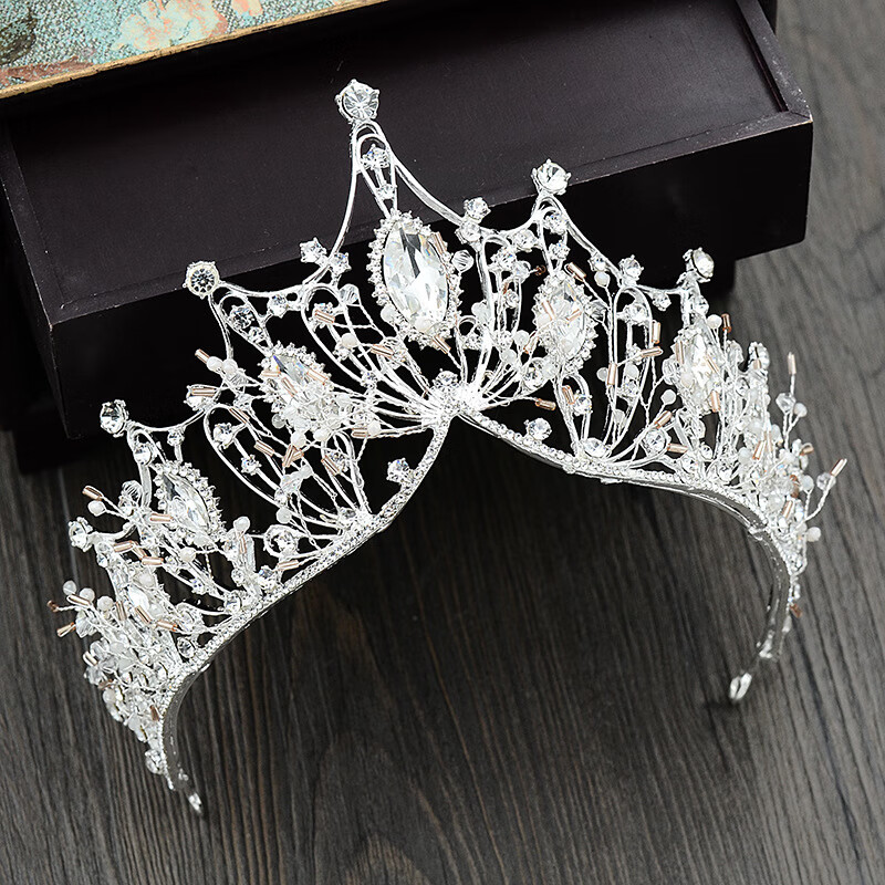QBILY Bridal Crown Wedding Tiara Hair Accessories Princess Birthday Dress Hair Accessories Headband Hairband V-shaped Crown Silver + Veil