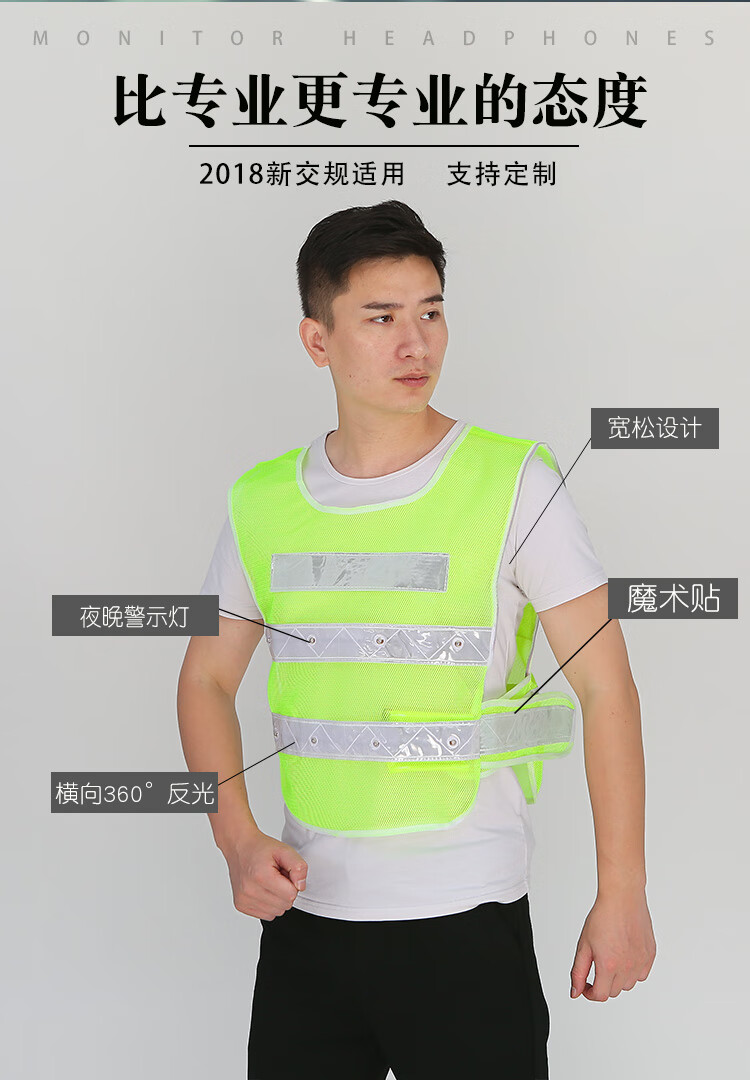 LED light reflective vest vest flash construction safety clothing reflective clothing night riding high speed warning reflective clothing fluorescent green charging model