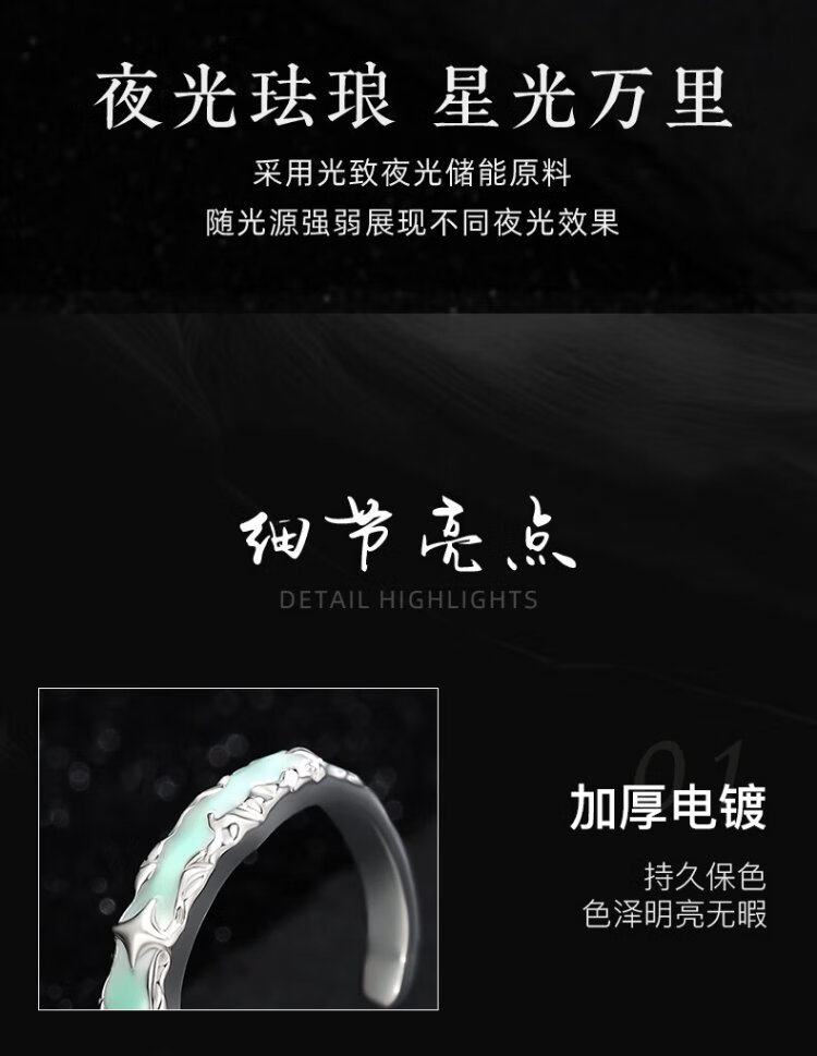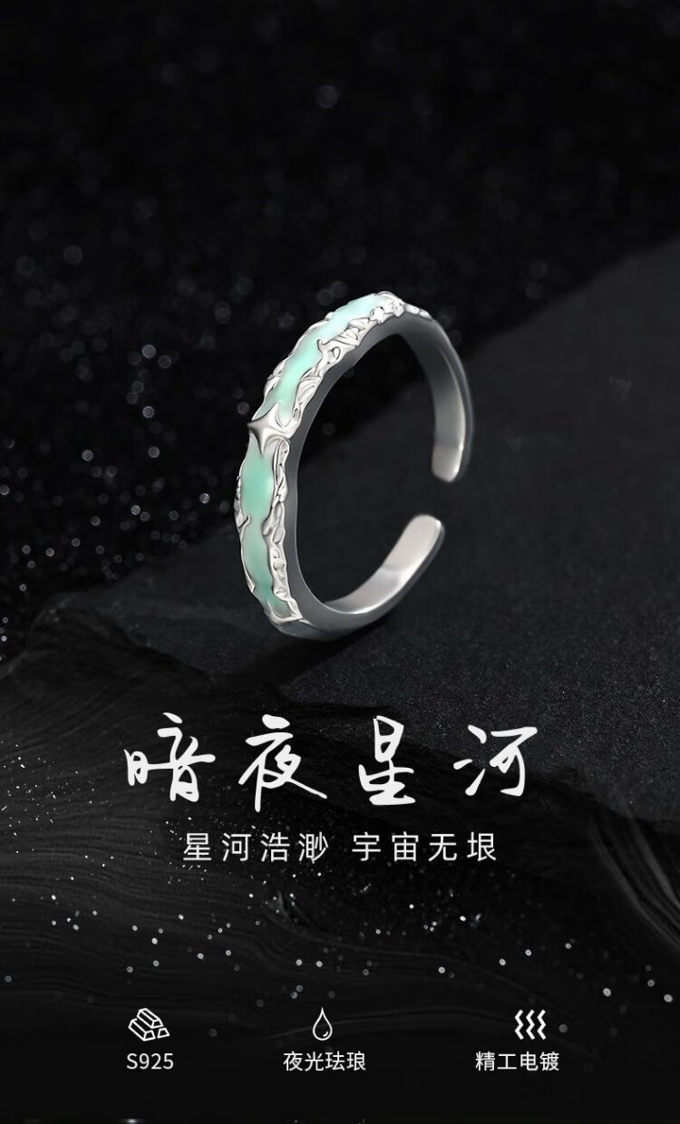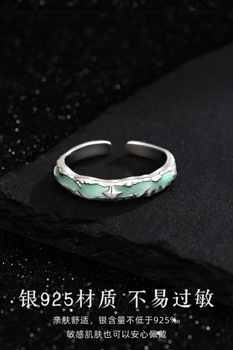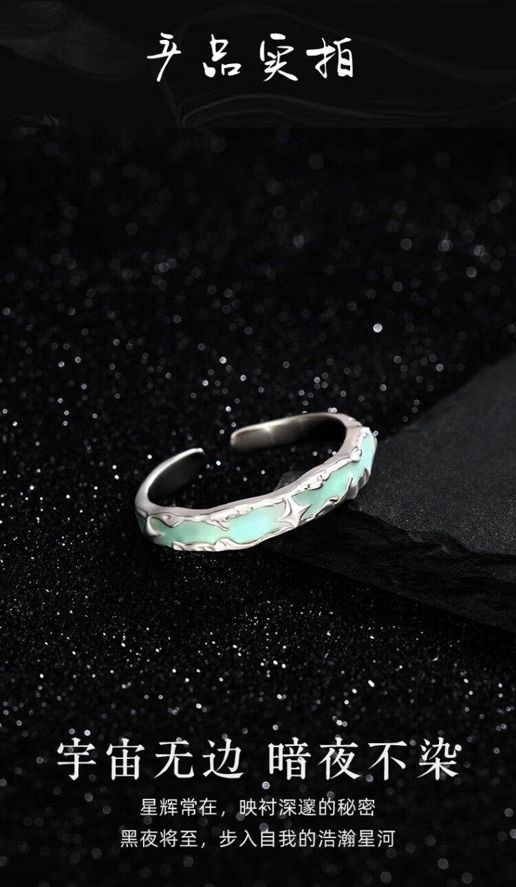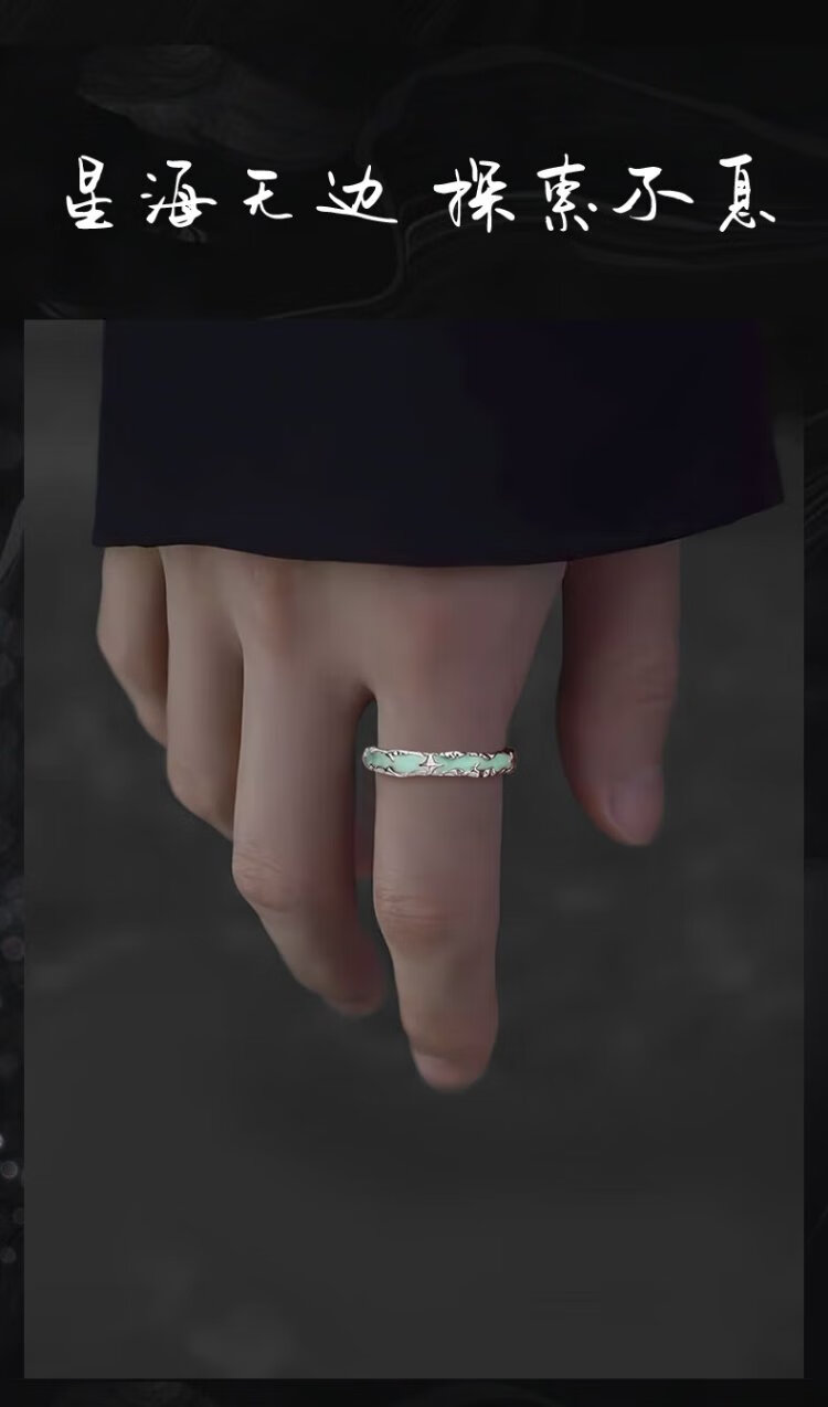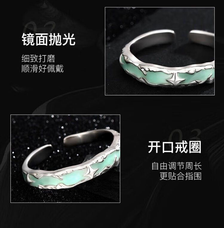 Chinese gold and silver ring men's single men's ring tail ring fashion trend birthday gift boyfriend husband dark night star men's ring