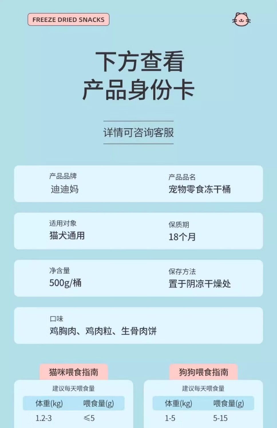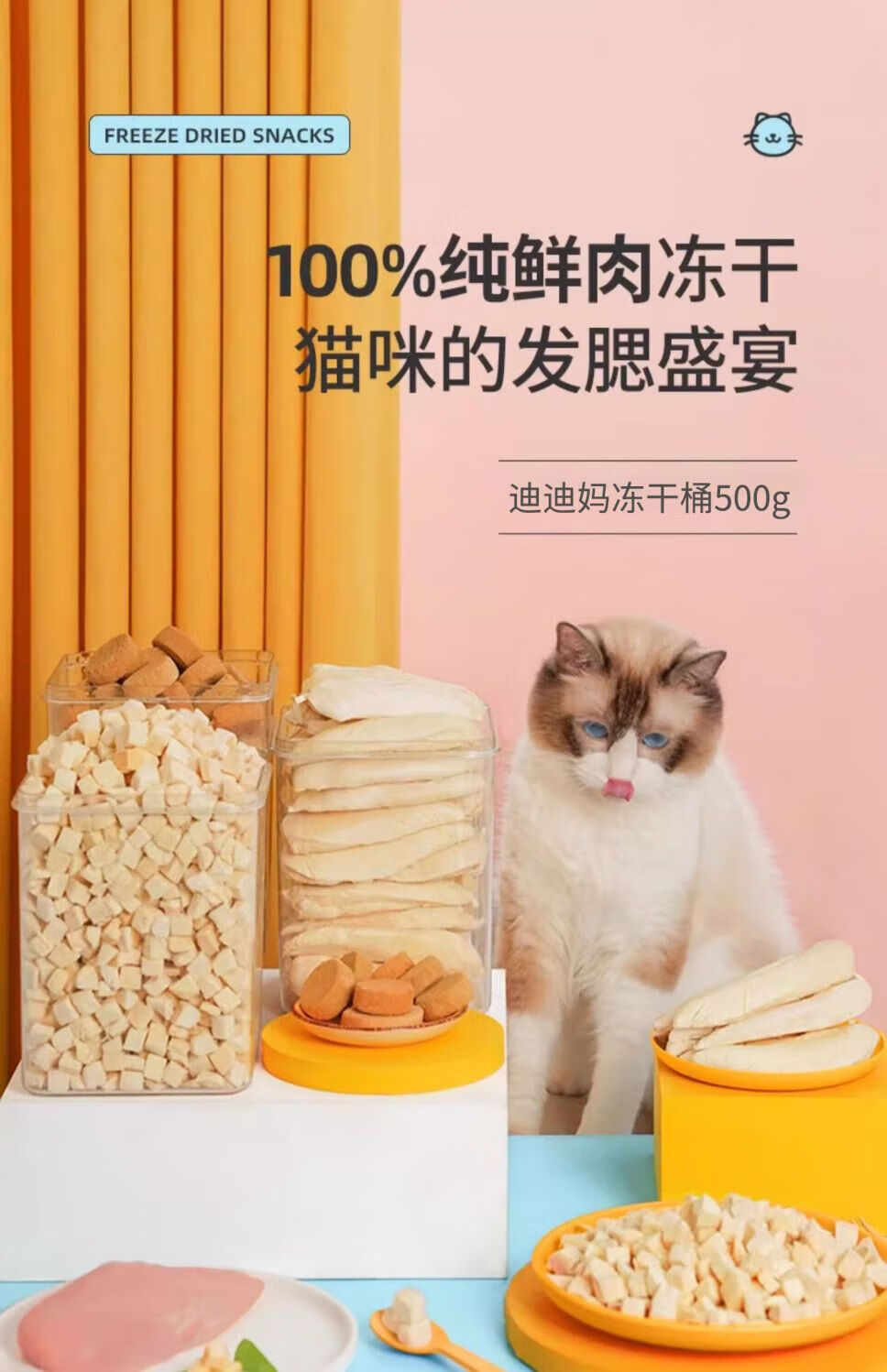 Didi Ma freeze-dried duck meat freeze-dried bucket cat snacks chicken breast pellets dog nutritional fattening egg yolk freeze-dried cat snacks nutritional fattening chicken freeze-dried granules 500g