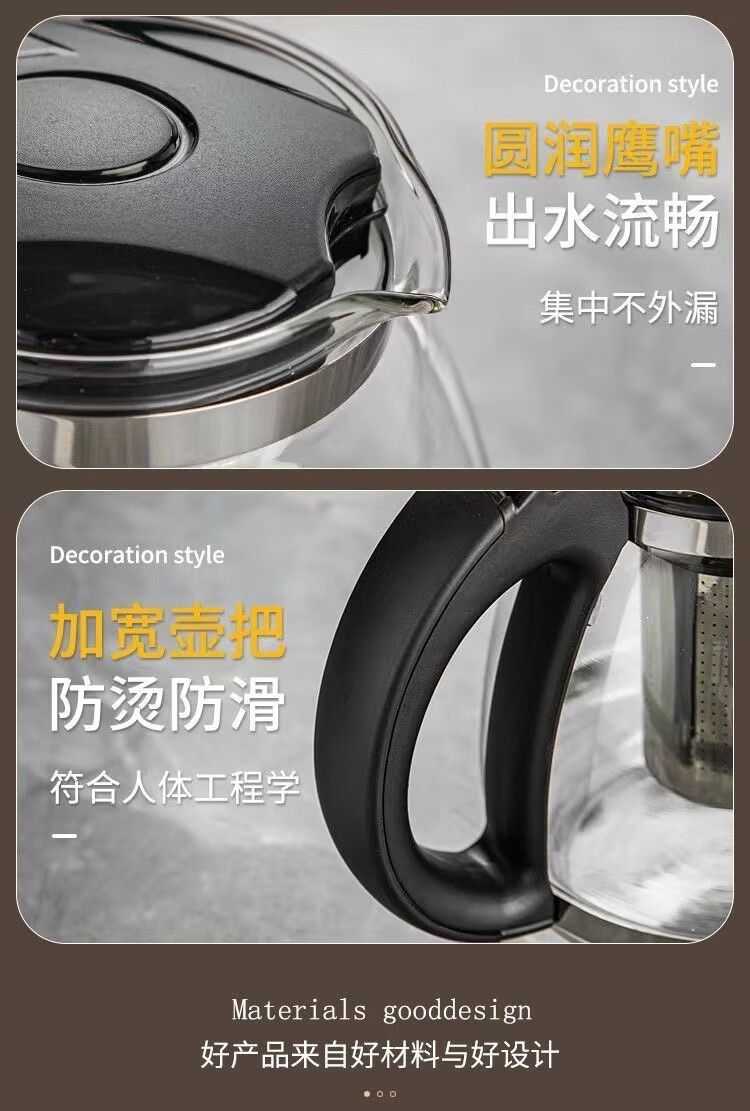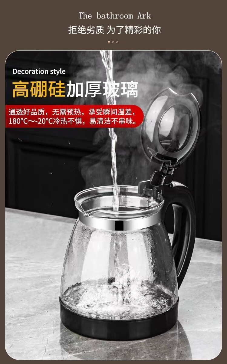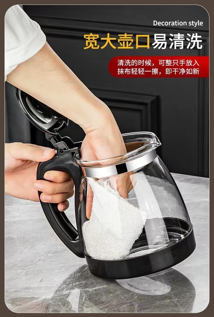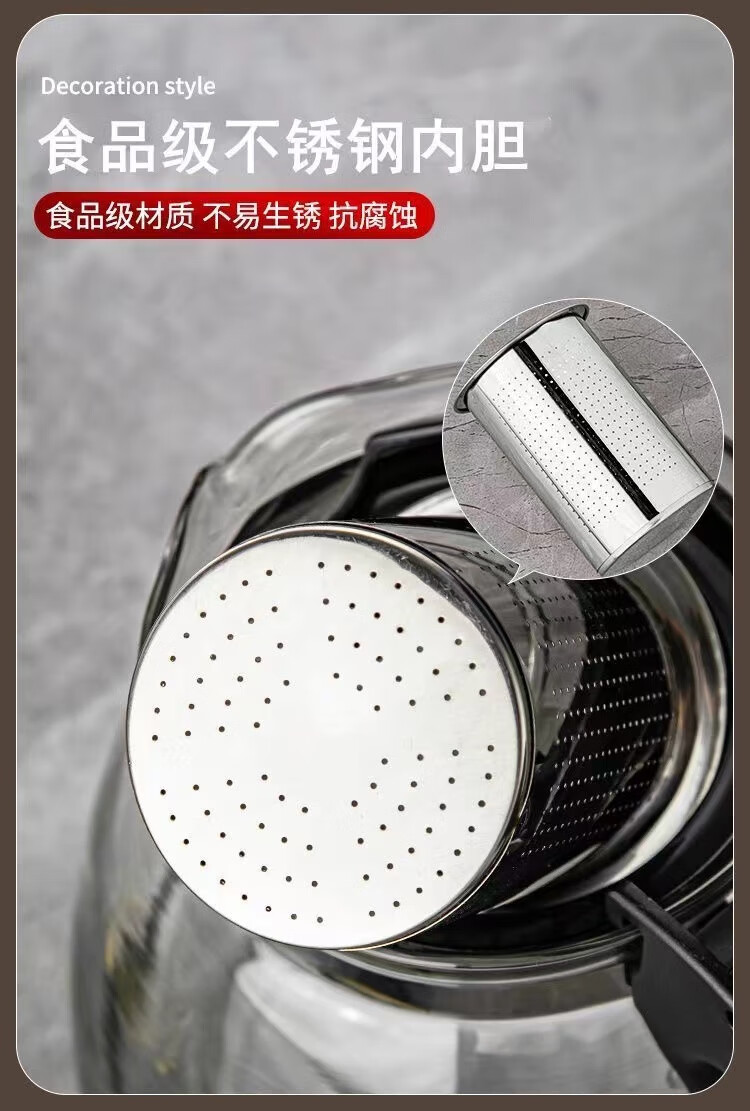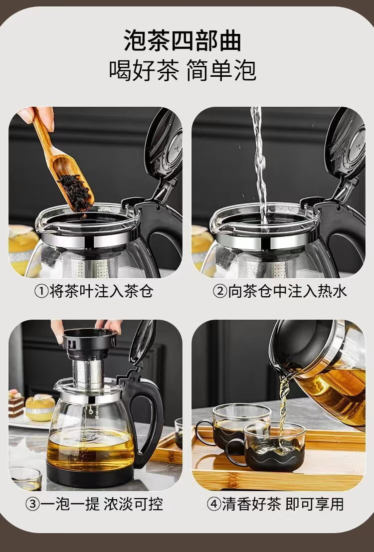 Glass teapot large capacity household teapot heat-resistant tea set kettle tea water separation flower tea filter tea brewing 2000ml black