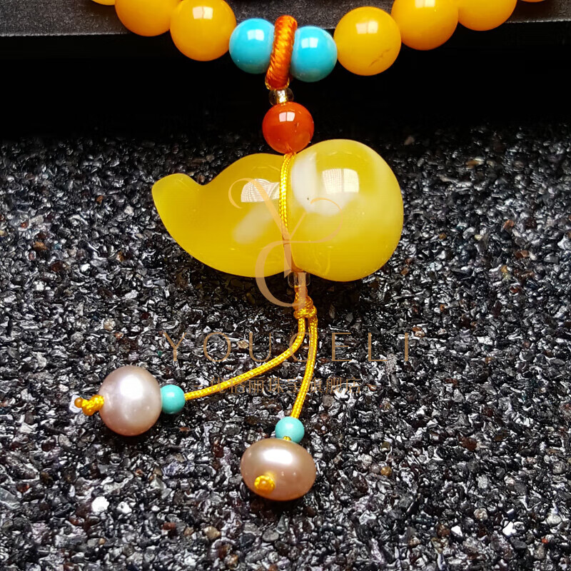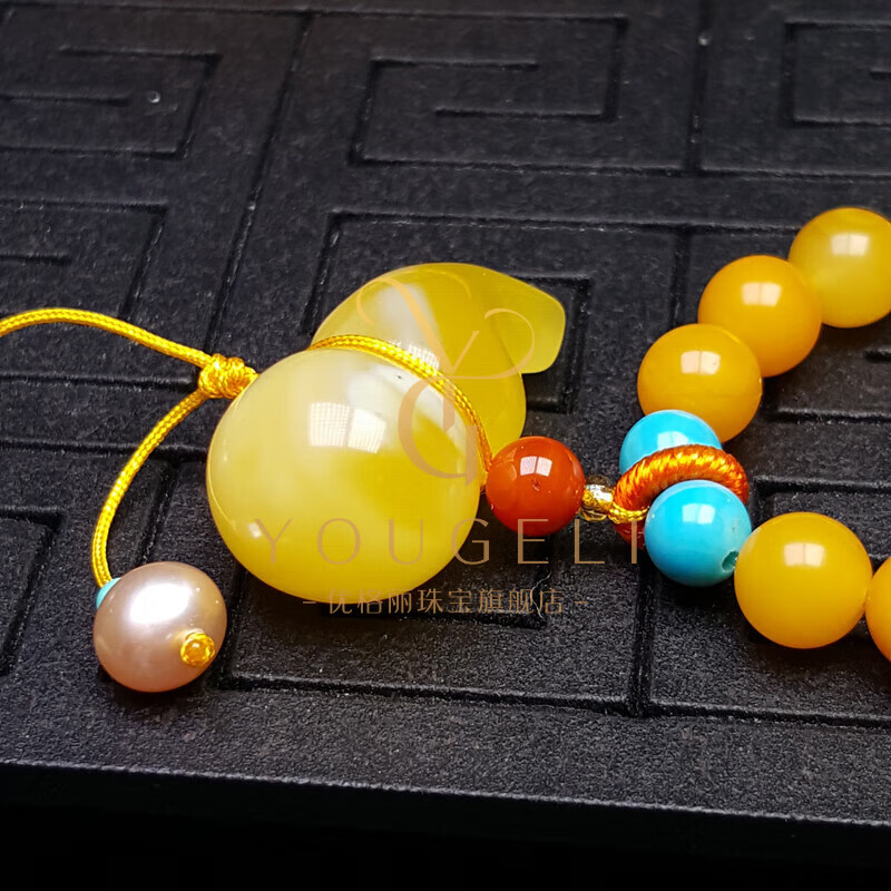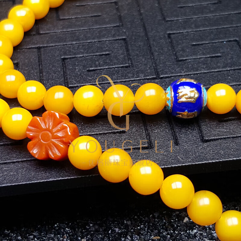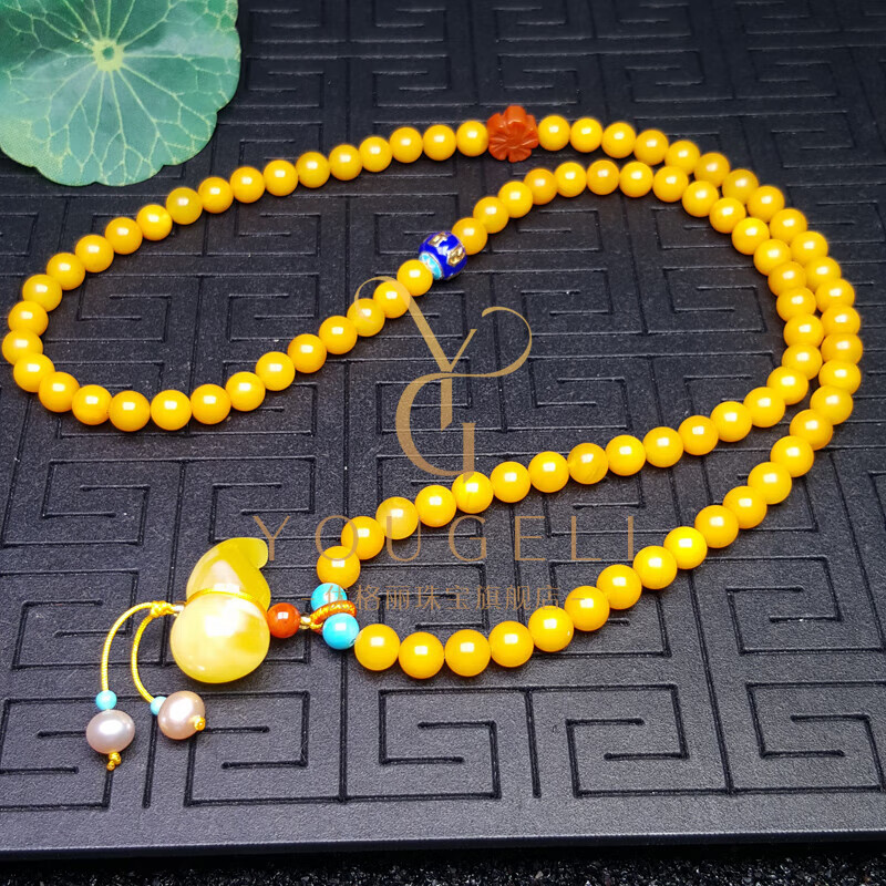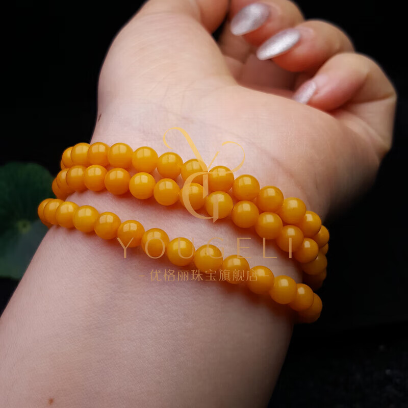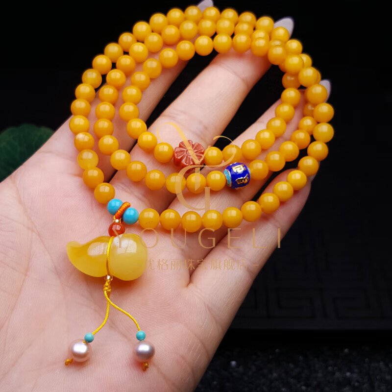 Yogurt natural chicken fat yellow beeswax 108 multi-circle bracelet amber gourd bracelet three-circle style (about 80 beads) beads 6mm