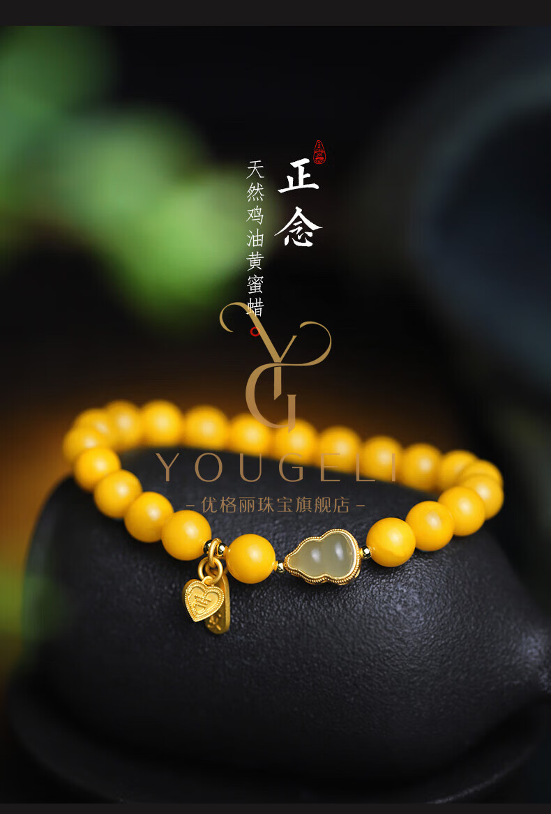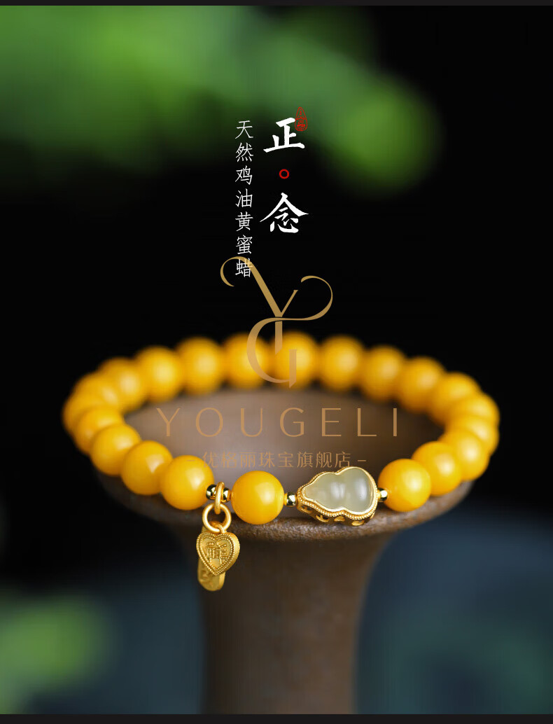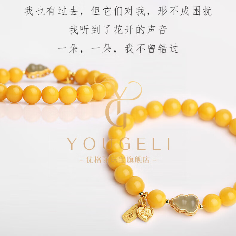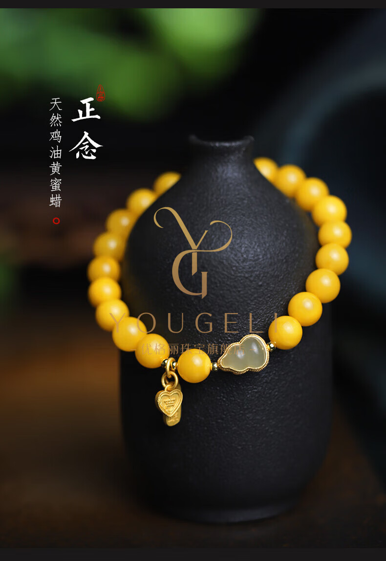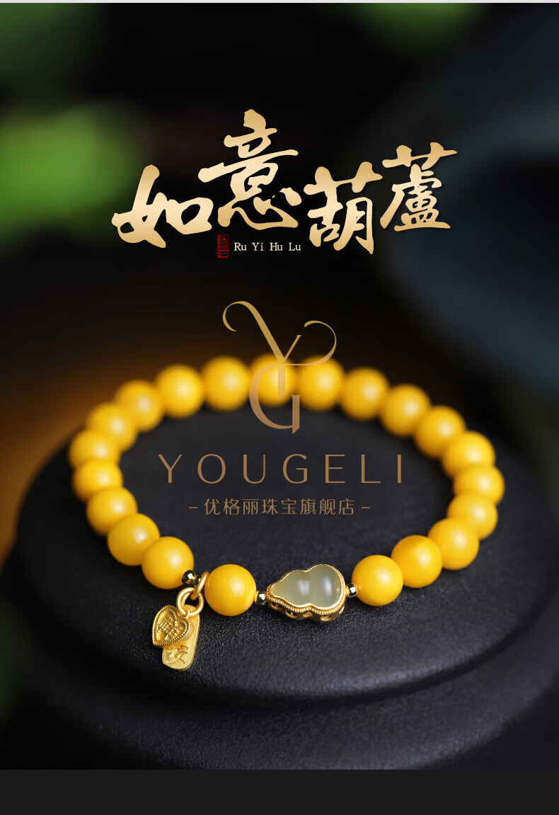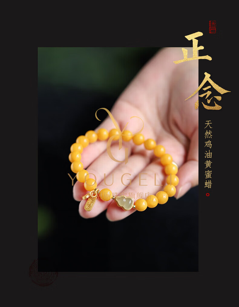 Yogurt Mindfulness Natural Chicken Fat Yellow Beeswax Bracelet Women's Hotan Jade Gourd Accessories Amber Bracelet Beads 8mm