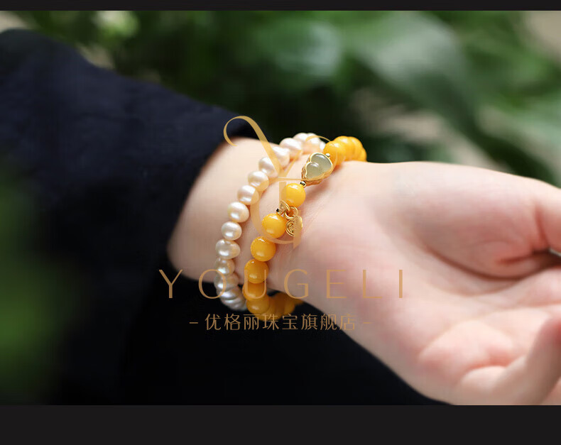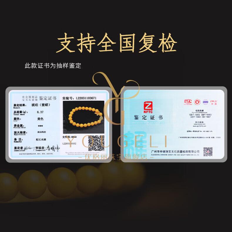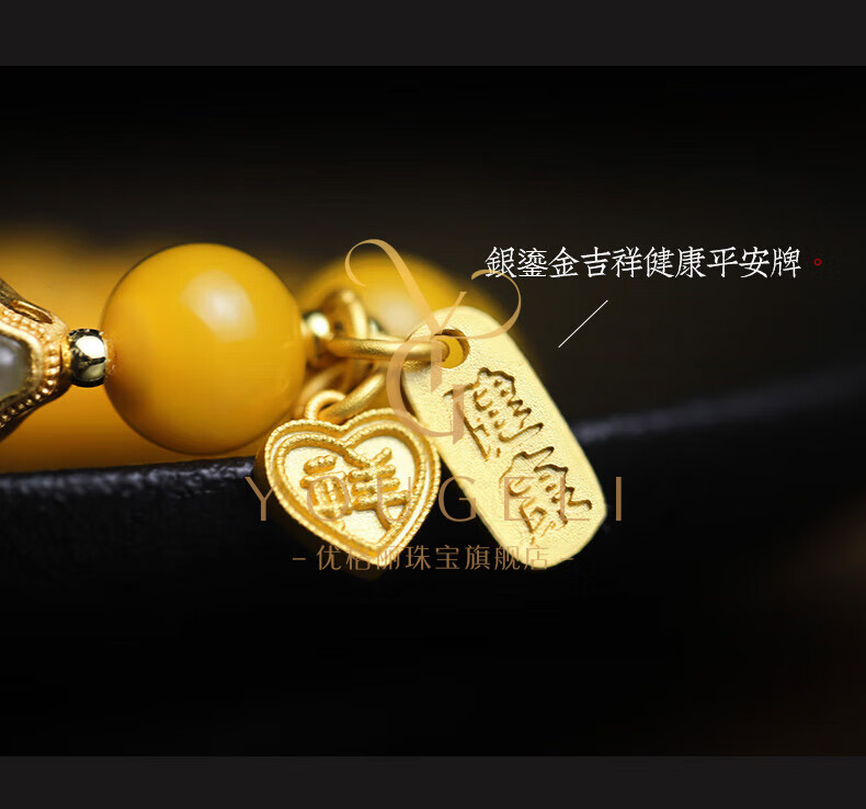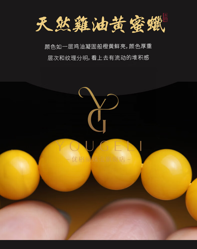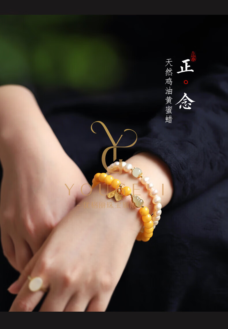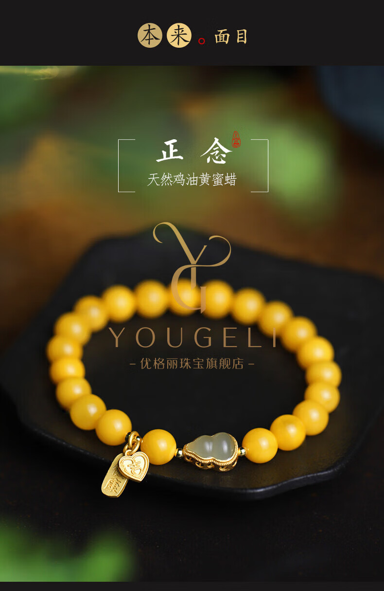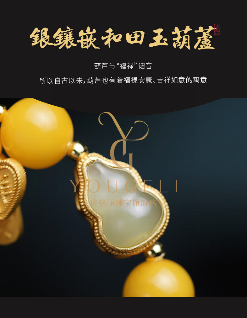 Yogurt Mindfulness Natural Chicken Fat Yellow Beeswax Bracelet Women's Hotan Jade Gourd Accessories Amber Bracelet Beads 8mm