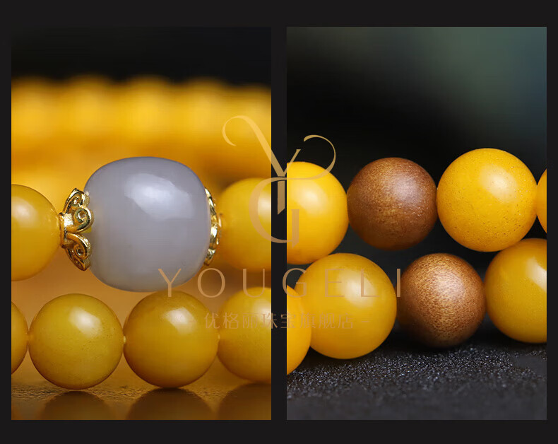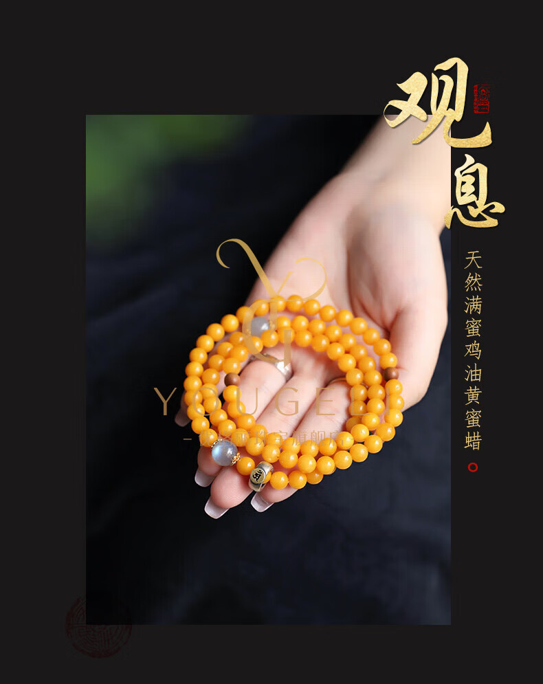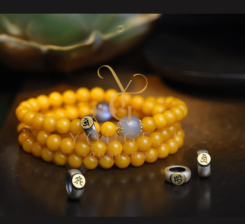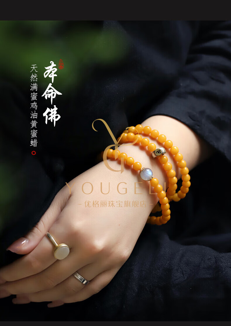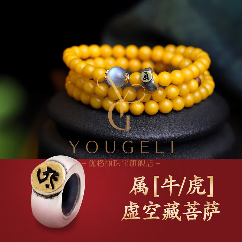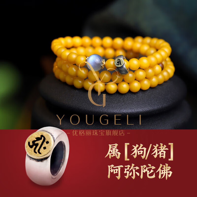 Yogurt Guanxi Natural Chicken Fat Yellow Beeswax Bracelet Twelve Zodiac Signs 108 Buddha Beads Bracelet Men's and Women's Jewelry Native Buddha Heart Mantra (Sheep Monkey) Beads 8mm Four Circles