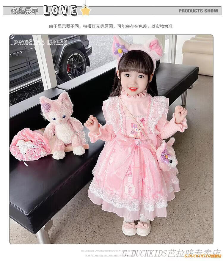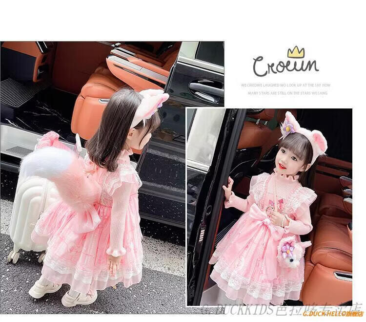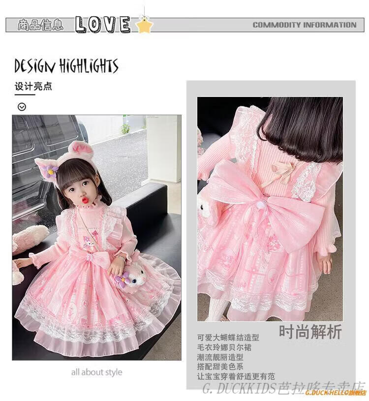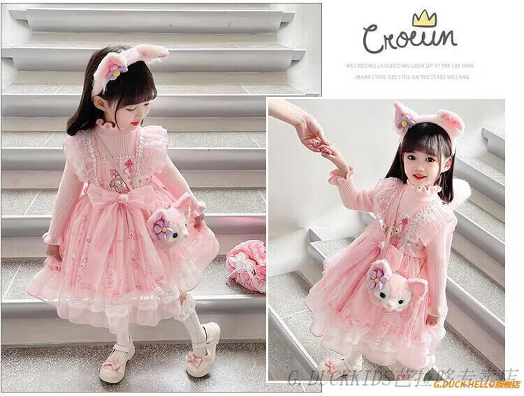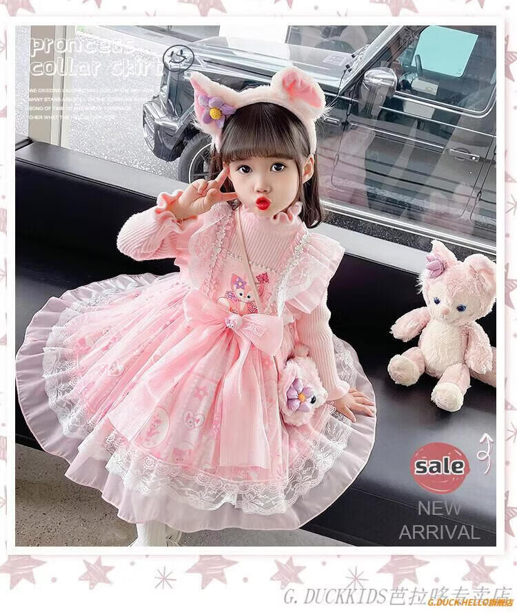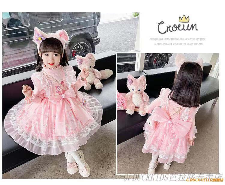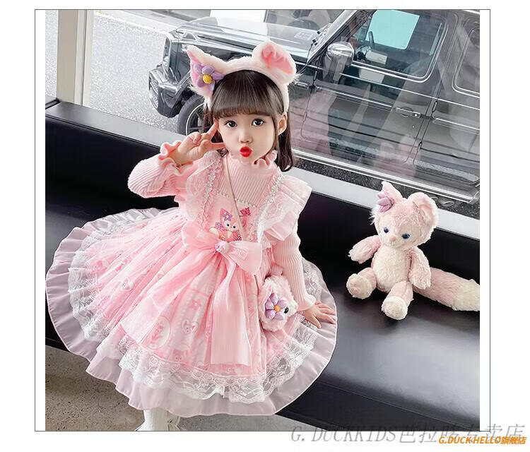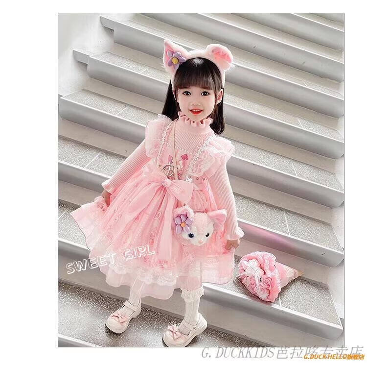 G.duck Little Yellow Duck Lolita Princess Dress Girls Dress Autumn Children's Skirt Girls Sweater Puff Skirt Autumn and Winter Belle Pink Sweater Dress Comes with Bustle 130 Recommended 120-130cm7-8 years old