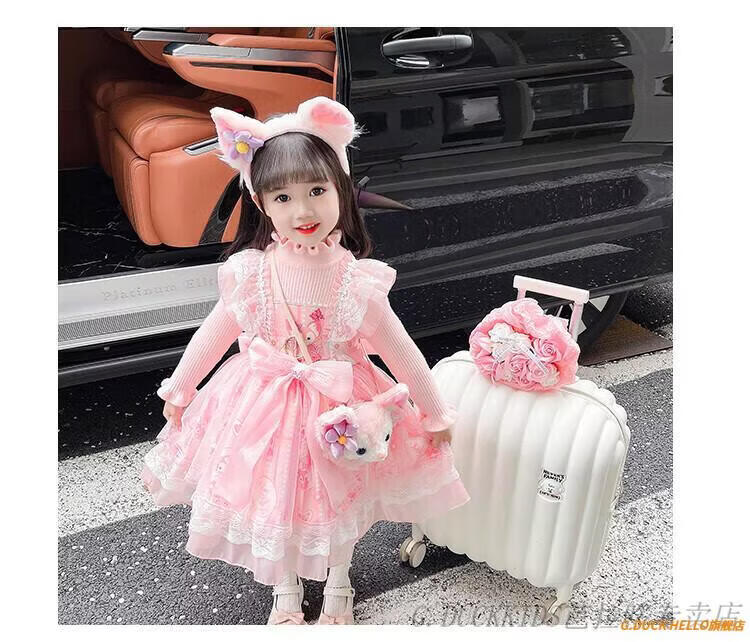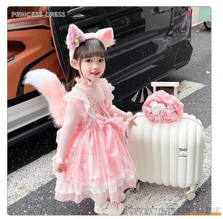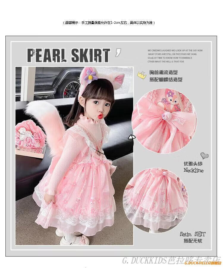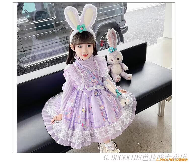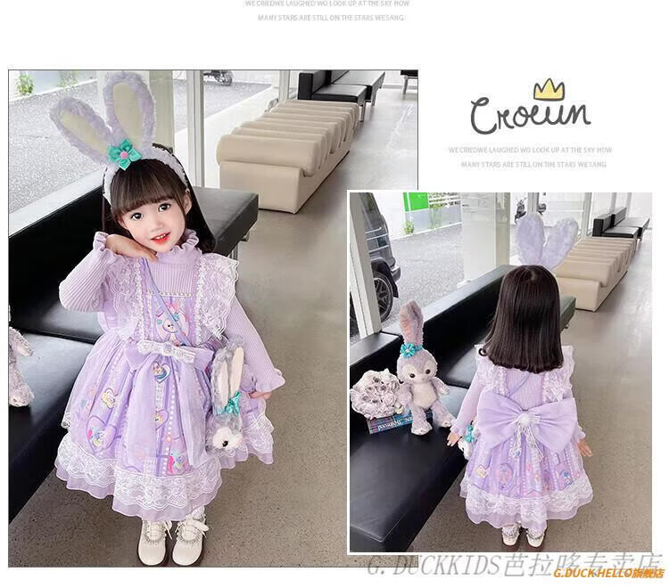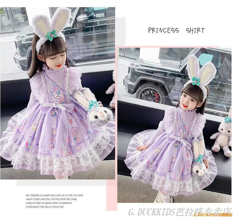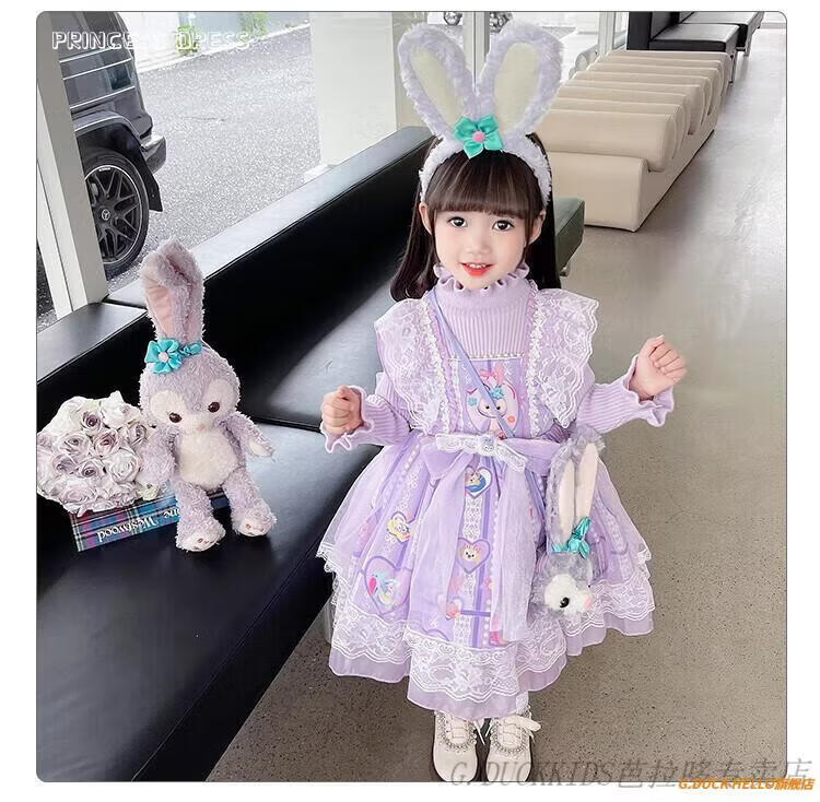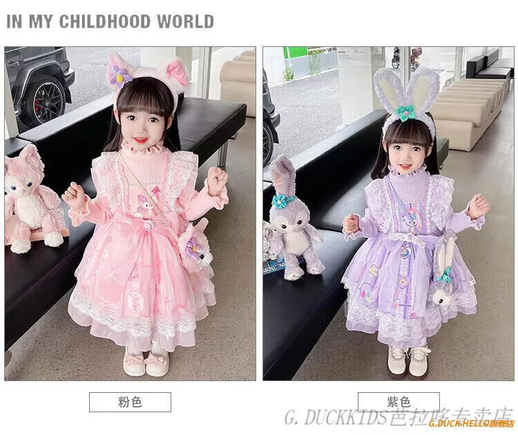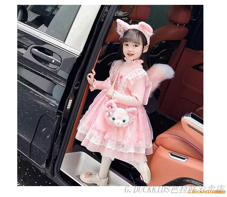 G.duck Little Yellow Duck Lolita Princess Dress Girls Dress Autumn Children's Skirt Girls Sweater Puff Skirt Autumn and Winter Belle Pink Sweater Dress Comes with Bustle 130 Recommended 120-130cm7-8 years old