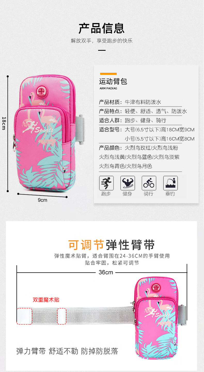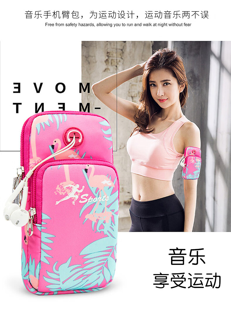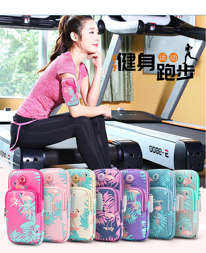 Zhe Rui running mobile phone bag women's sports mobile phone arm bag thin mobile phone arm bag outdoor fitness equipment wrist bag mobile phone bag arm bag youth fashion-Flamingo large size