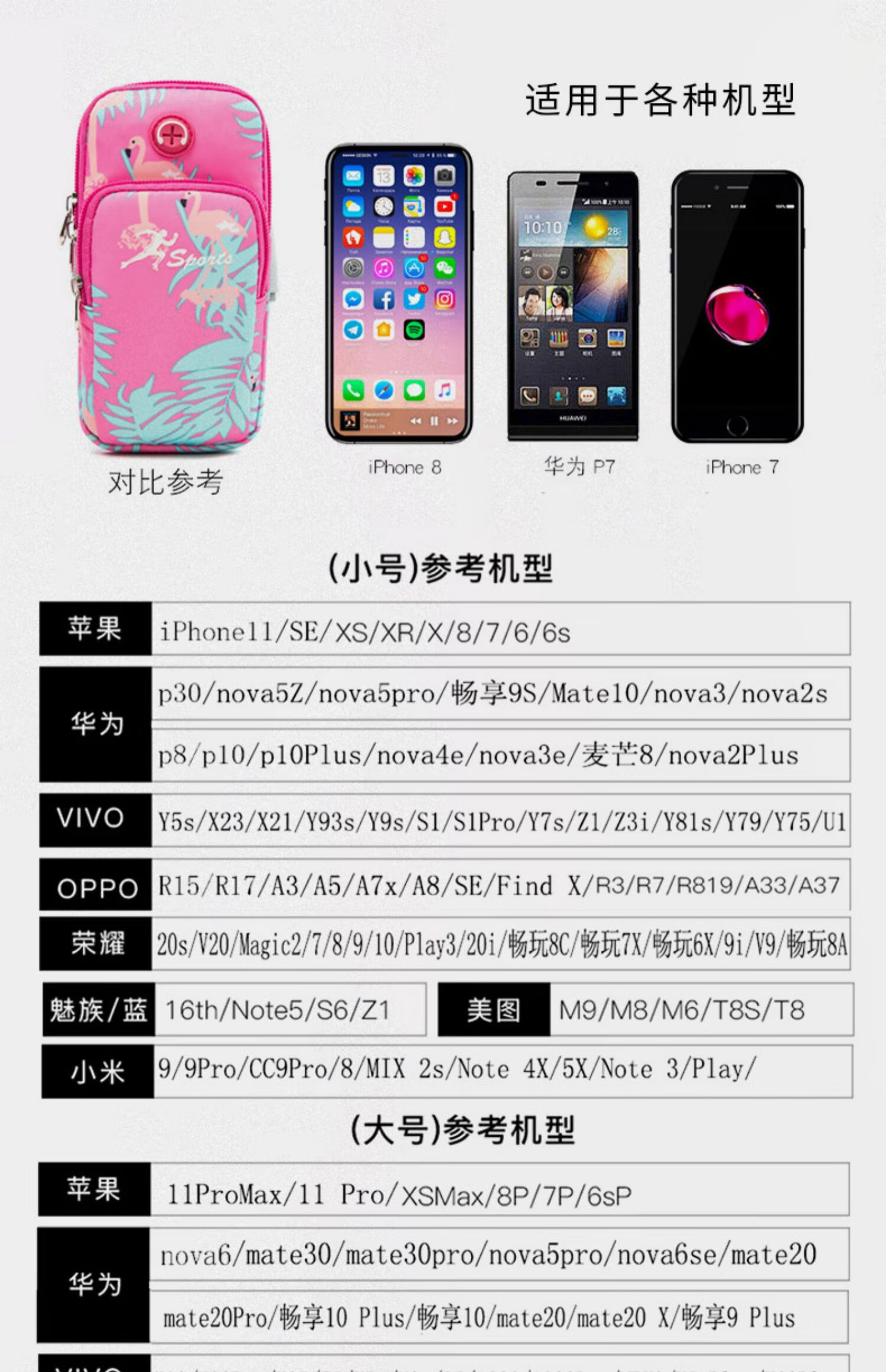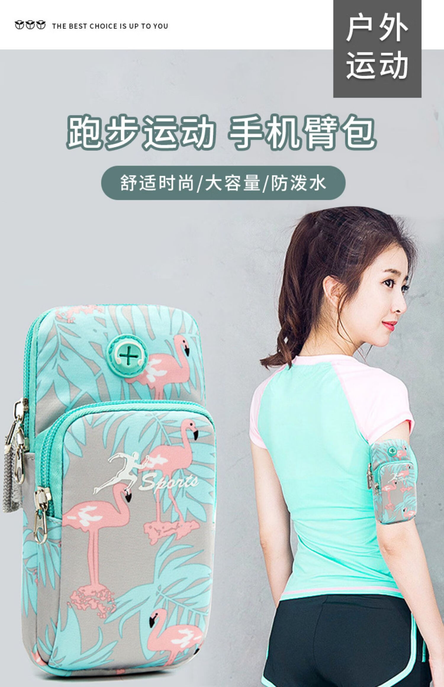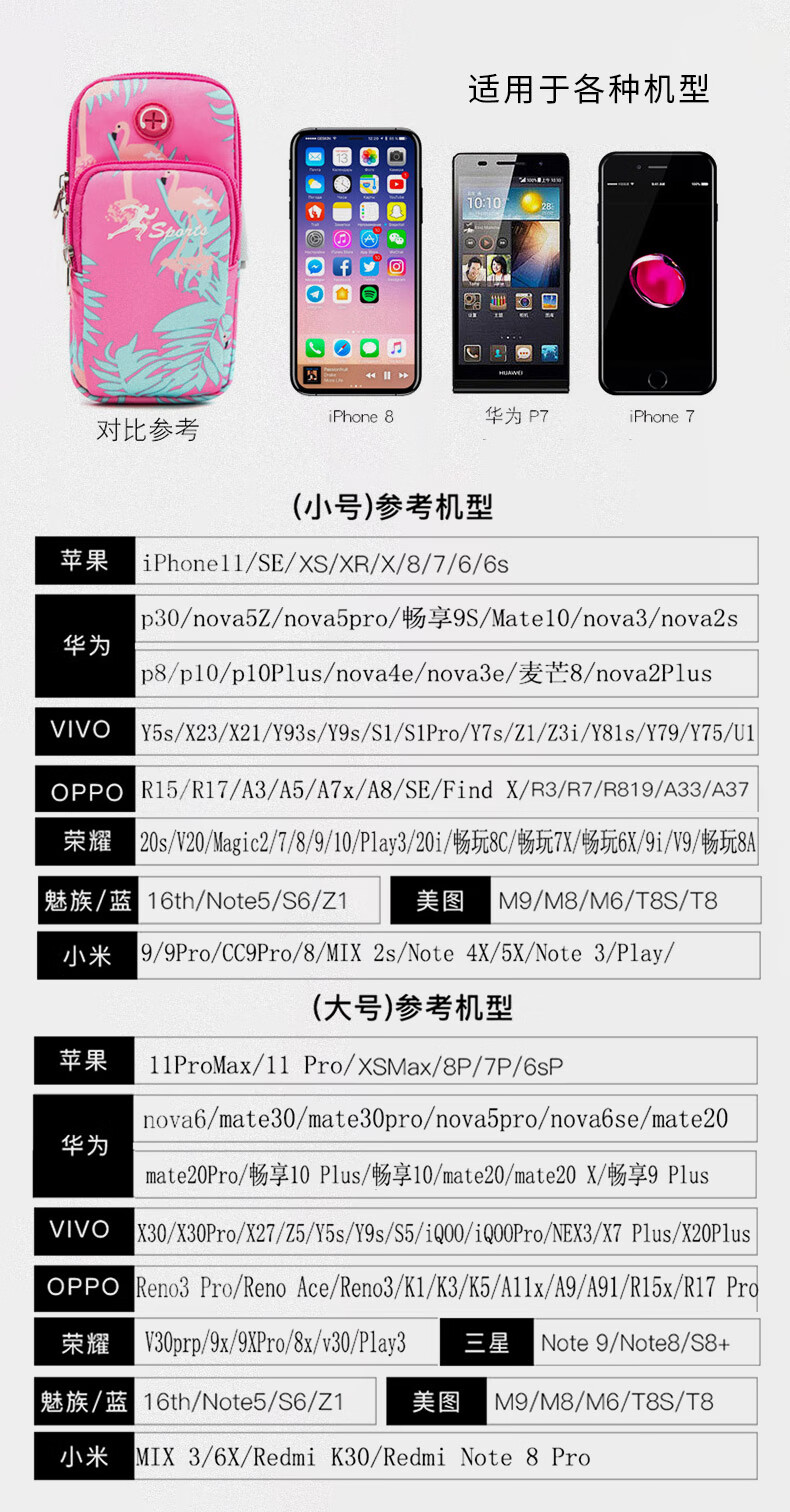 Zhe Rui running mobile phone bag women's sports mobile phone arm bag thin mobile phone arm bag outdoor fitness equipment wrist bag mobile phone bag arm bag youth fashion-Flamingo large size
