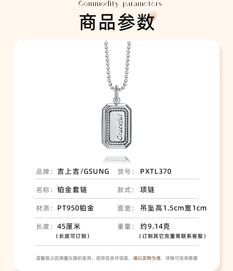GsunG platinum necklace women's PT950 chain set Graceful fashionable shiny platinum chain set women's pendant bead necklace PT950 necklace about 9 grams 40 cm pre-order
