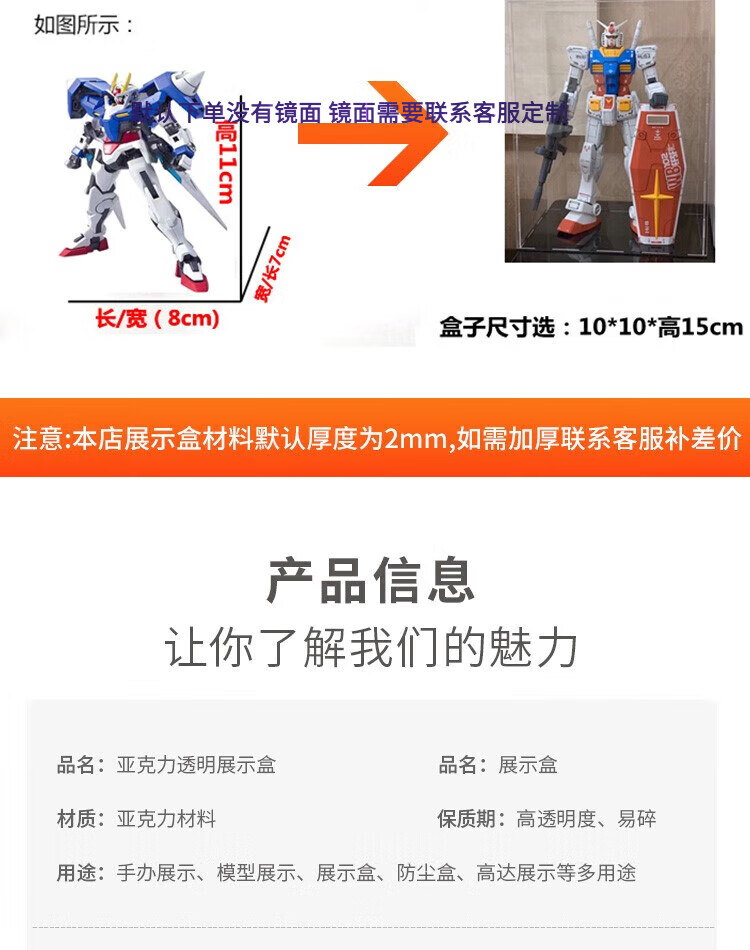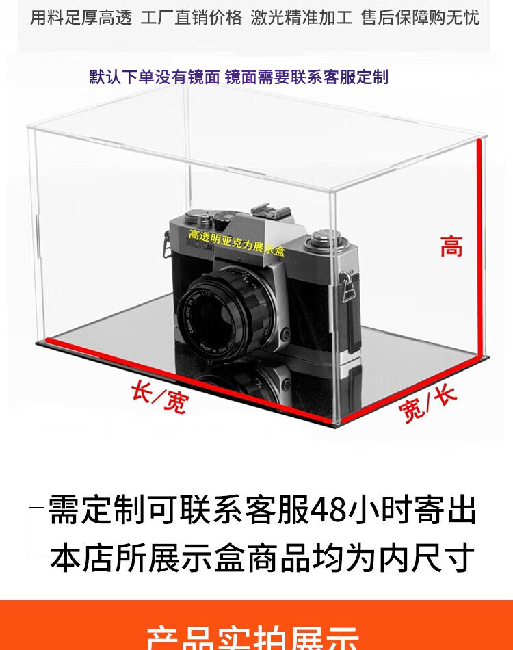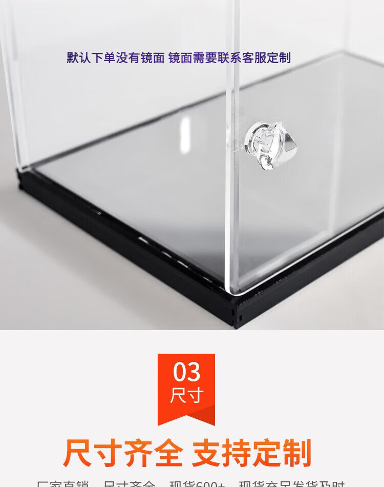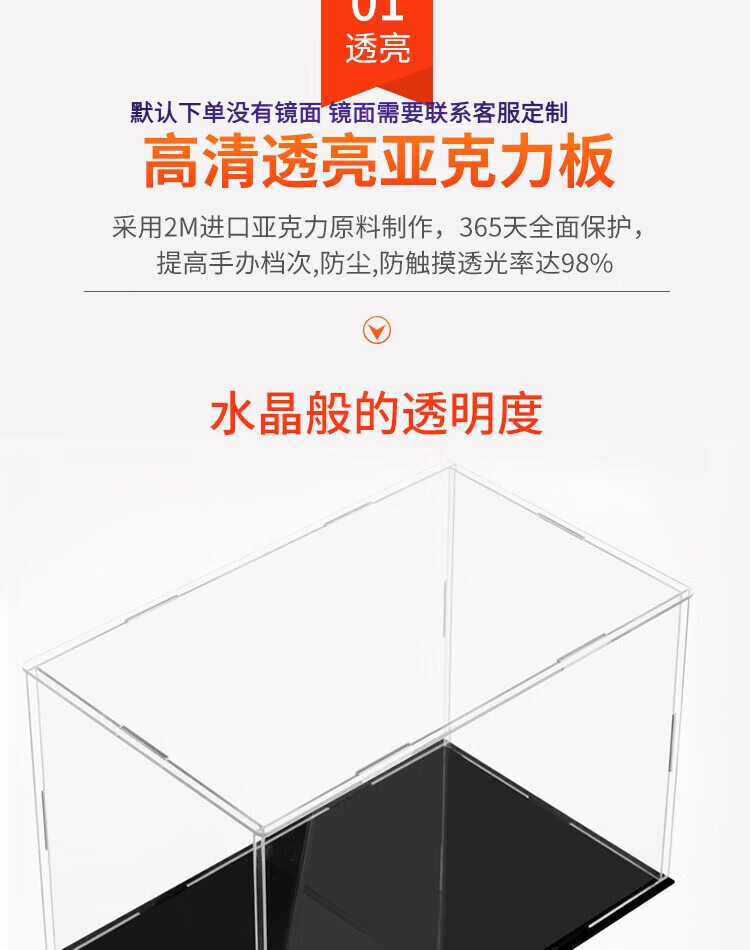 Customized high-transparent acrylic display box with thickened door opening animation model building block storage dust box height 10cm black bottom height 10cm black bottom (no mirror) door length 10*width 10cm