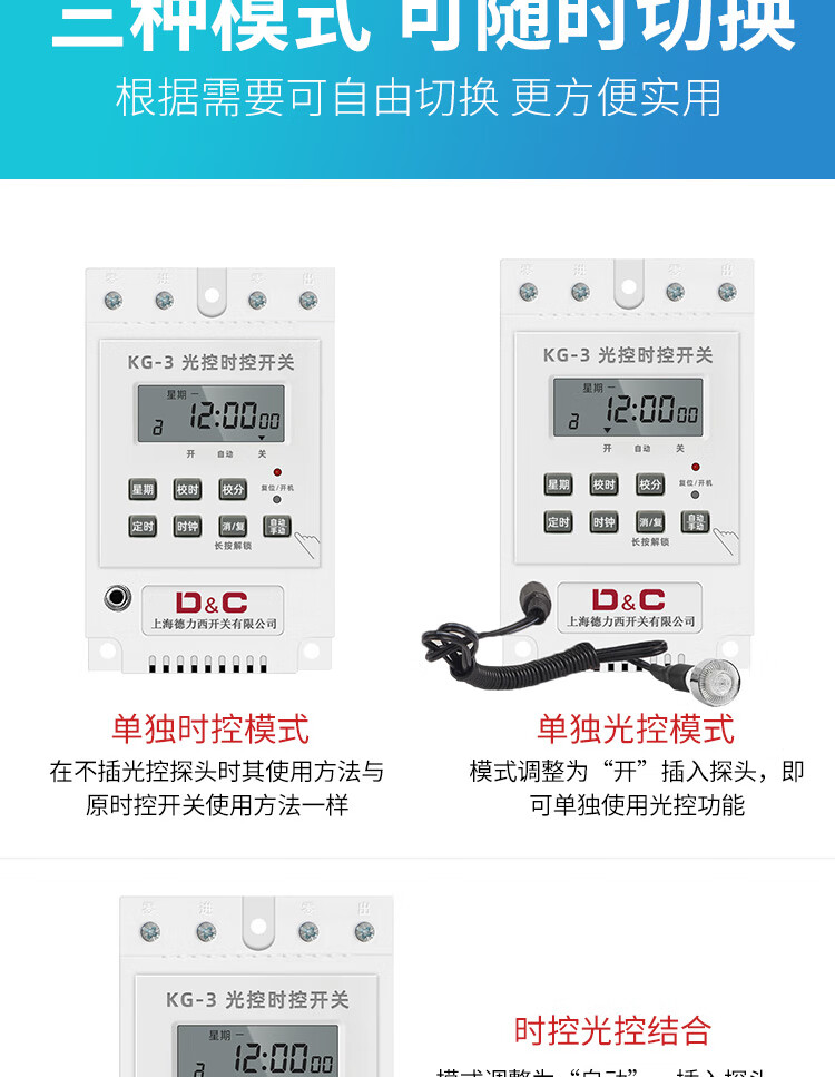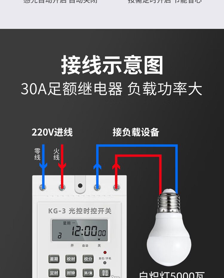 Switch light-controlled time-controlled switch automatically turns on when dark, intelligent light sensor 220V street light controller light-controlled switch (adjustable sensitivity)