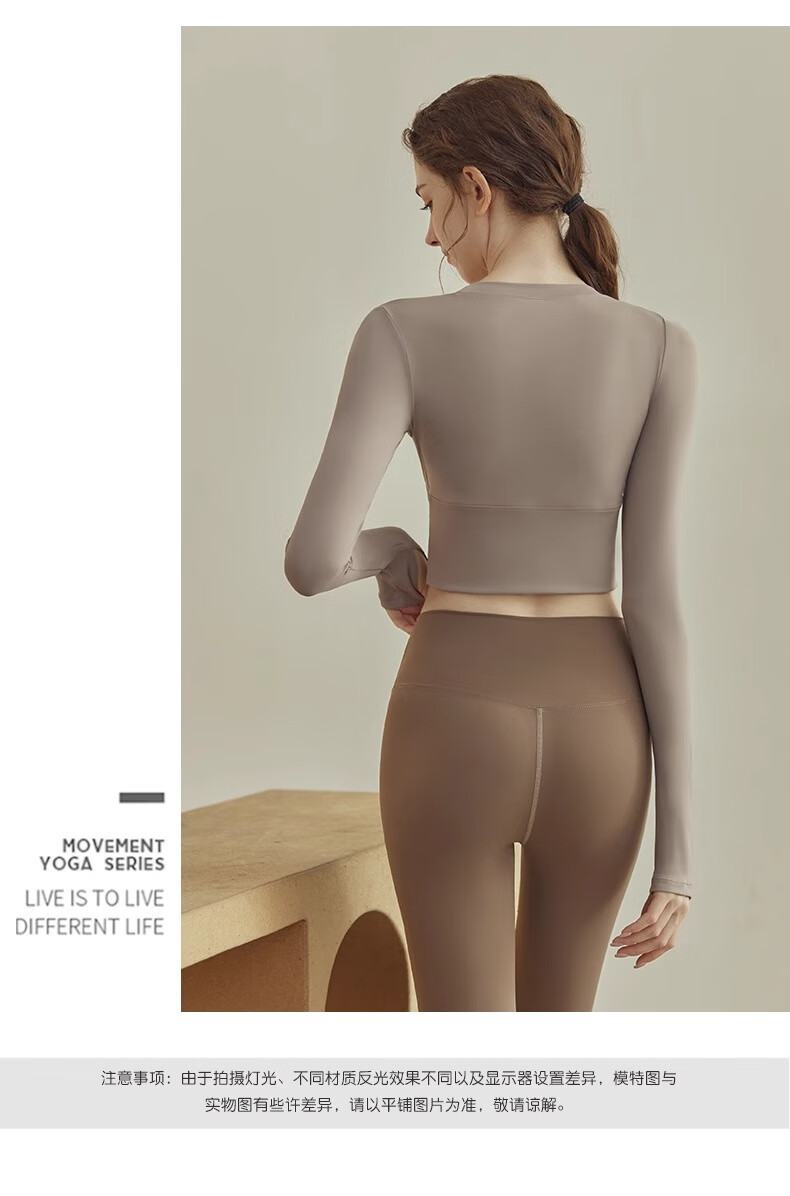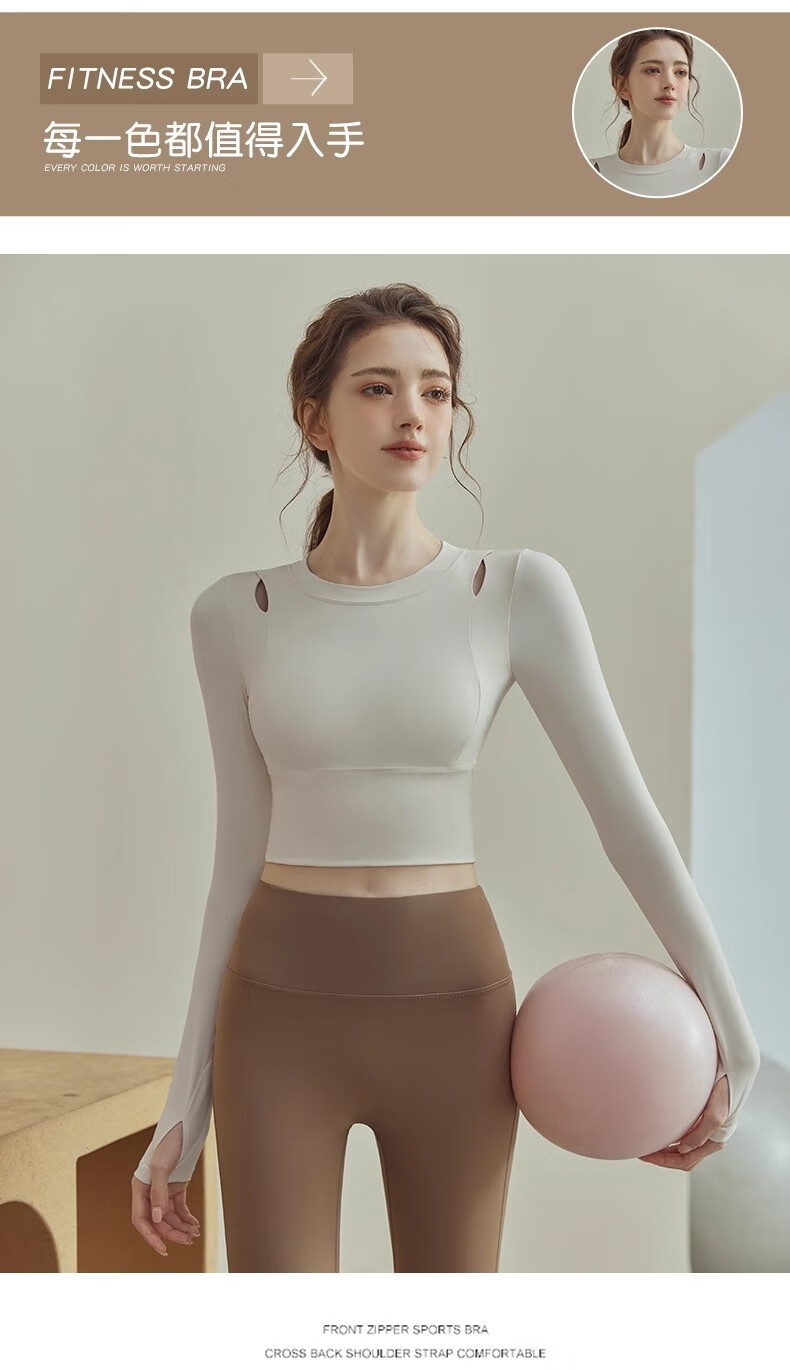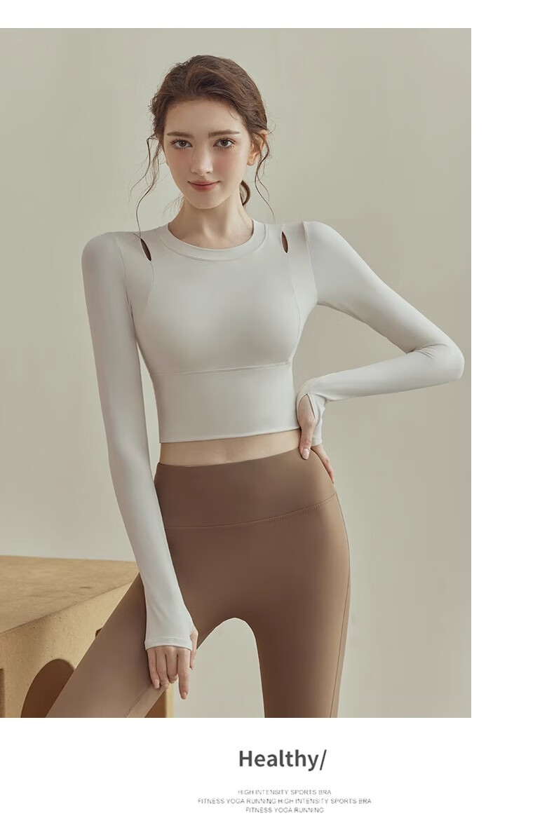 LULUUVTTOH yoga clothing suit for women 2025 new professional training Pilates fitness long-sleeved sports running top tights apricot top fixed cup breast pad M