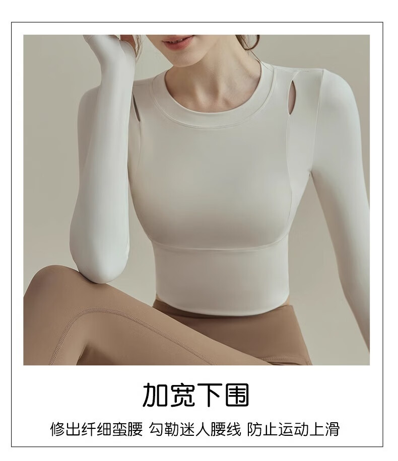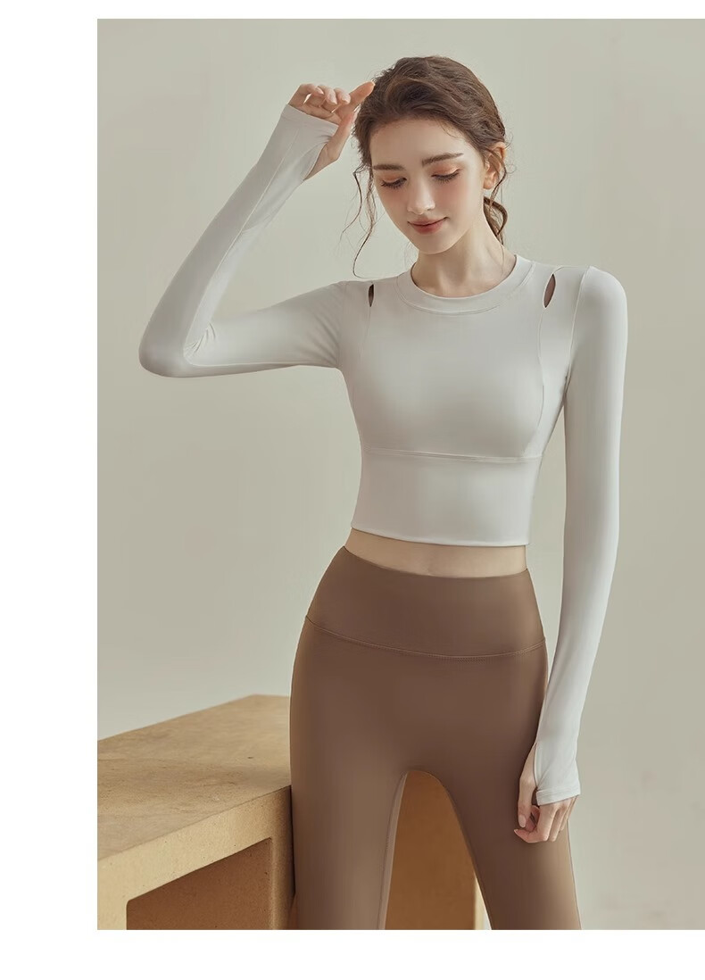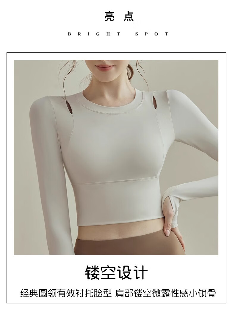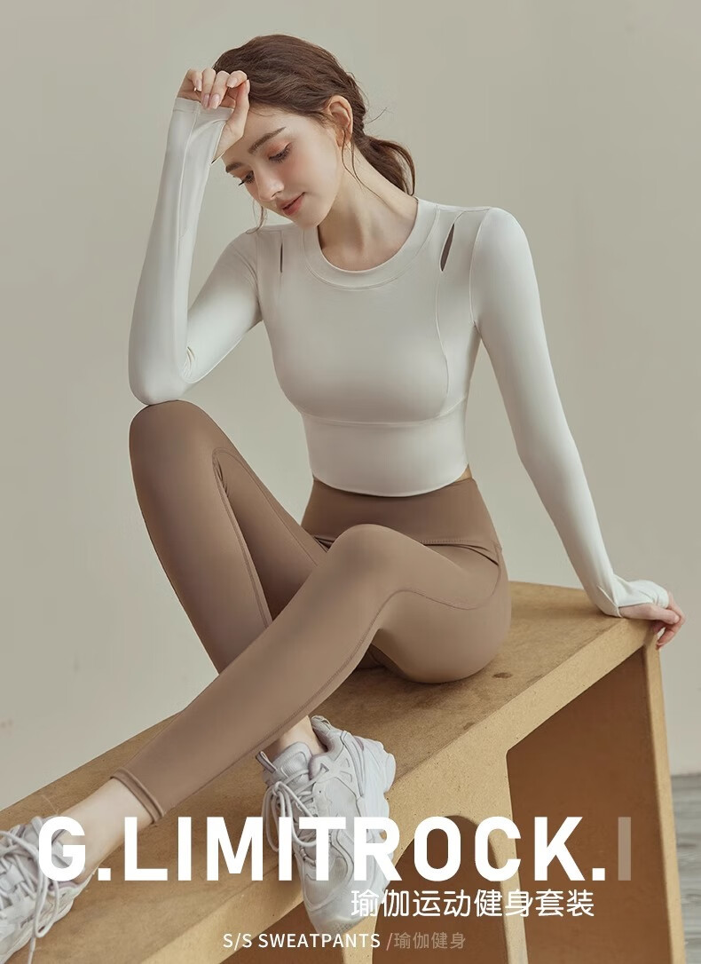 LULUUVTTOH yoga clothing suit for women 2025 new professional training Pilates fitness long-sleeved sports running top tights apricot top fixed cup breast pad M