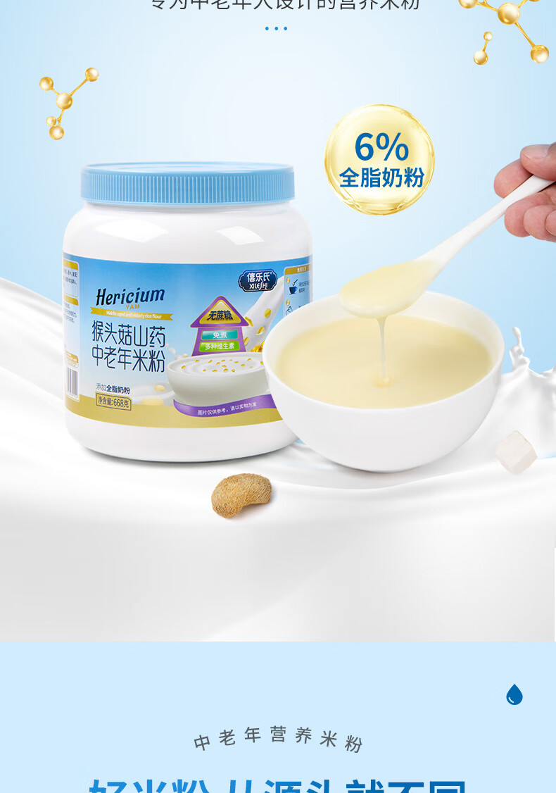 Xile's buy 1 get 1 free|Hericium yam rice flour, nutritious rice cereal for middle-aged and elderly people, sucrose-free meal replacement liquid food for nasal feeding adults, Hericium yam formula, shoot 1 and 2