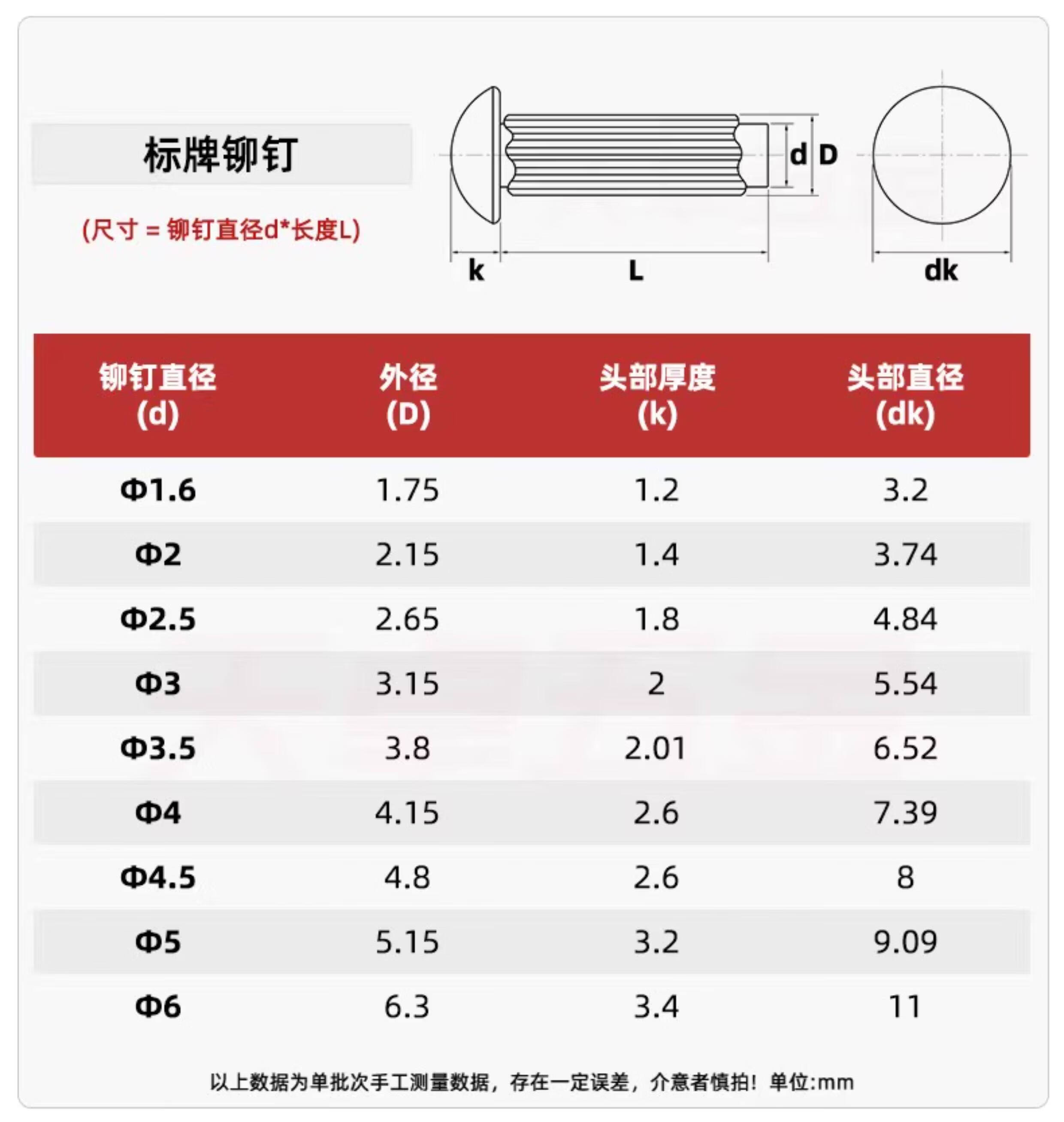 Tianzhuo Hardware GB827 stainless steel 304 sign rivets aluminum knurled nameplate copper trademark solid rivets M2M2.5M3M4M5mm M2*6 300 pieces copper