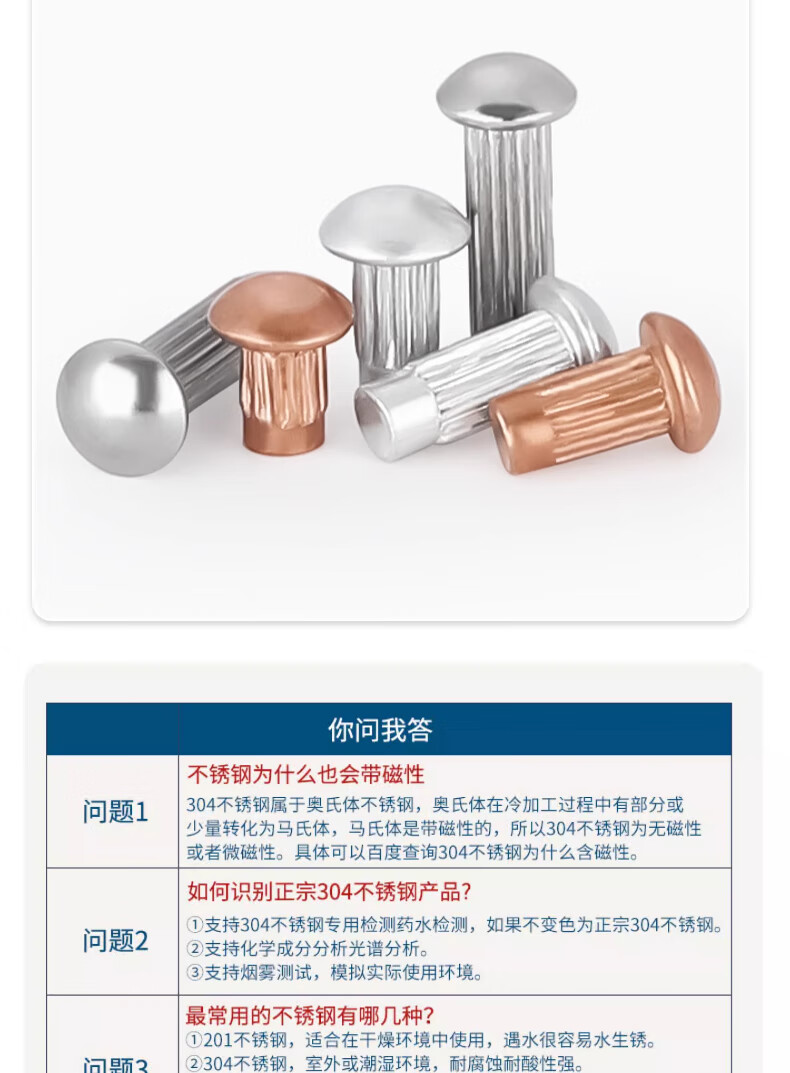 Tianzhuo Hardware GB827 stainless steel 304 sign rivets aluminum knurled nameplate copper trademark solid rivets M2M2.5M3M4M5mm M4*6 50 pieces copper