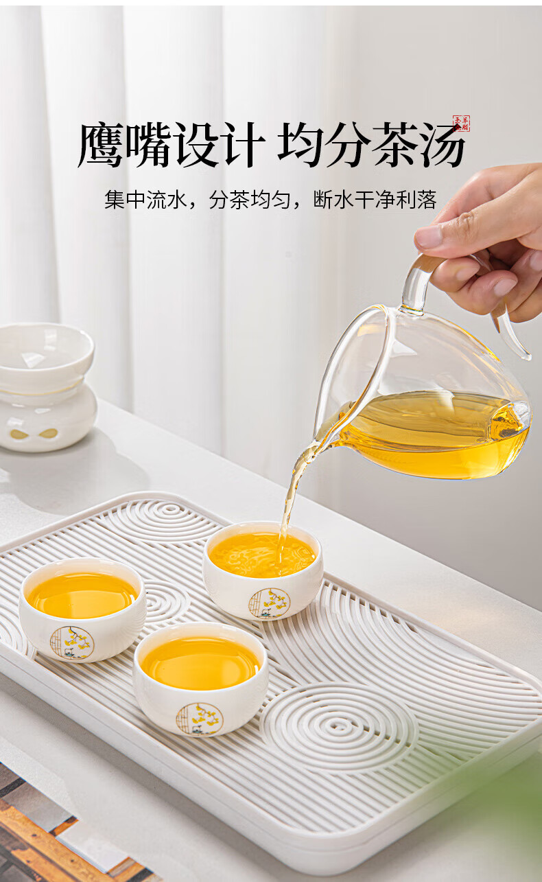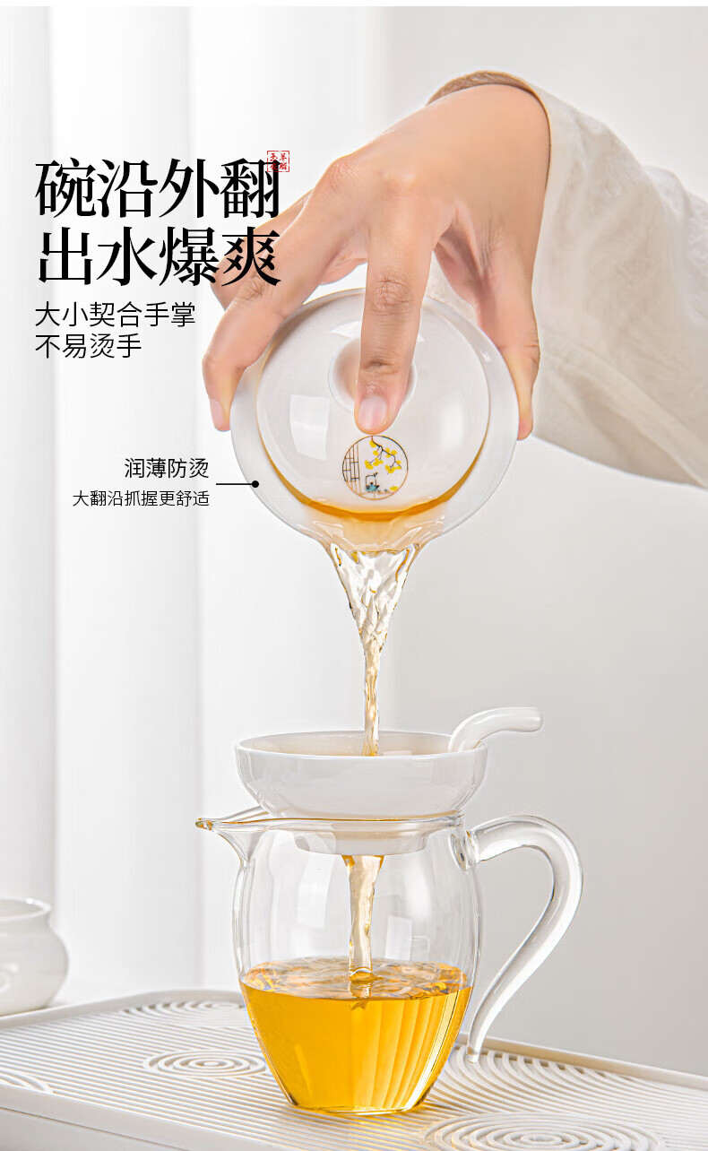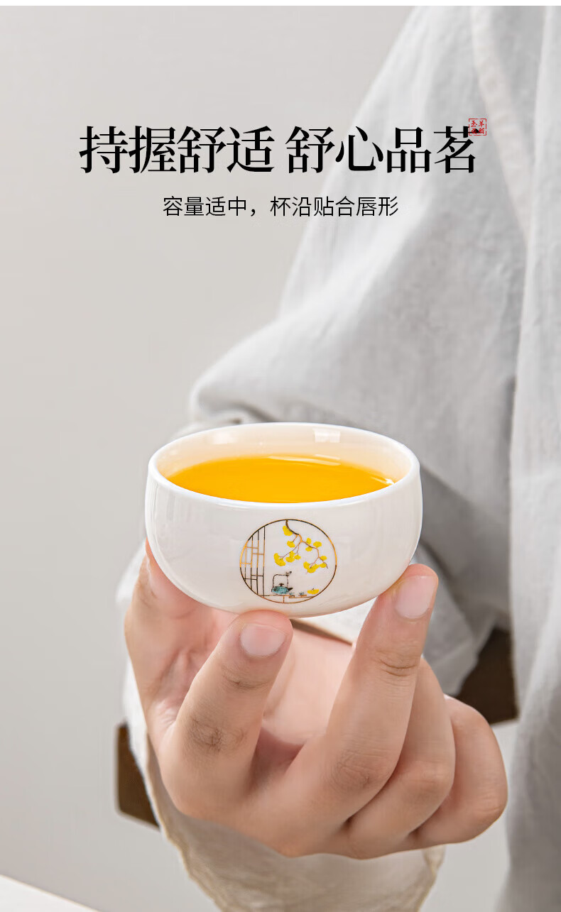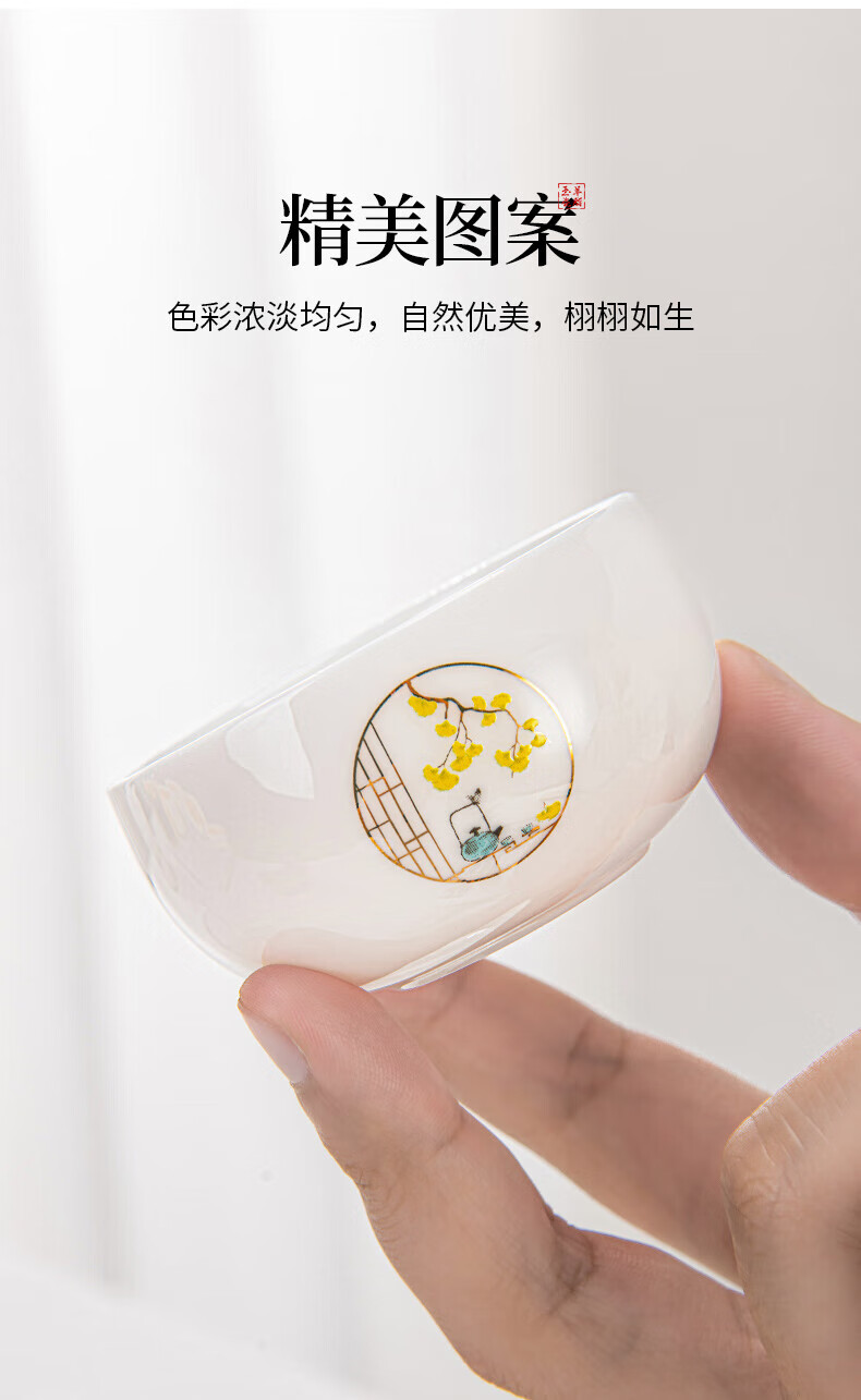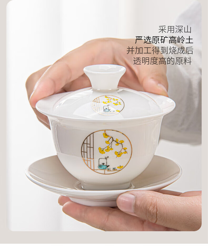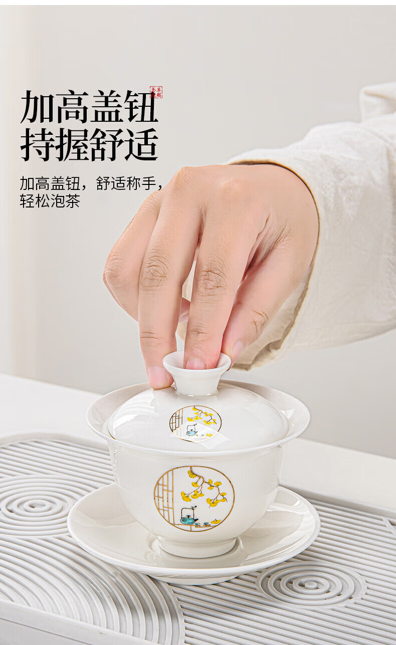 Qixuanyuan Mutton Fat Jade White Porcelain Kung Fu Tea Set Home Living Room Ceramic Covered Bowl Tea Cup Handheld Kettle Drinking Tea Making Tools Yunchu Ting Window Covered Bowl Two-Cup 4-piece Set