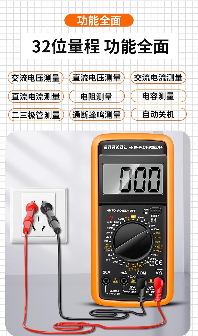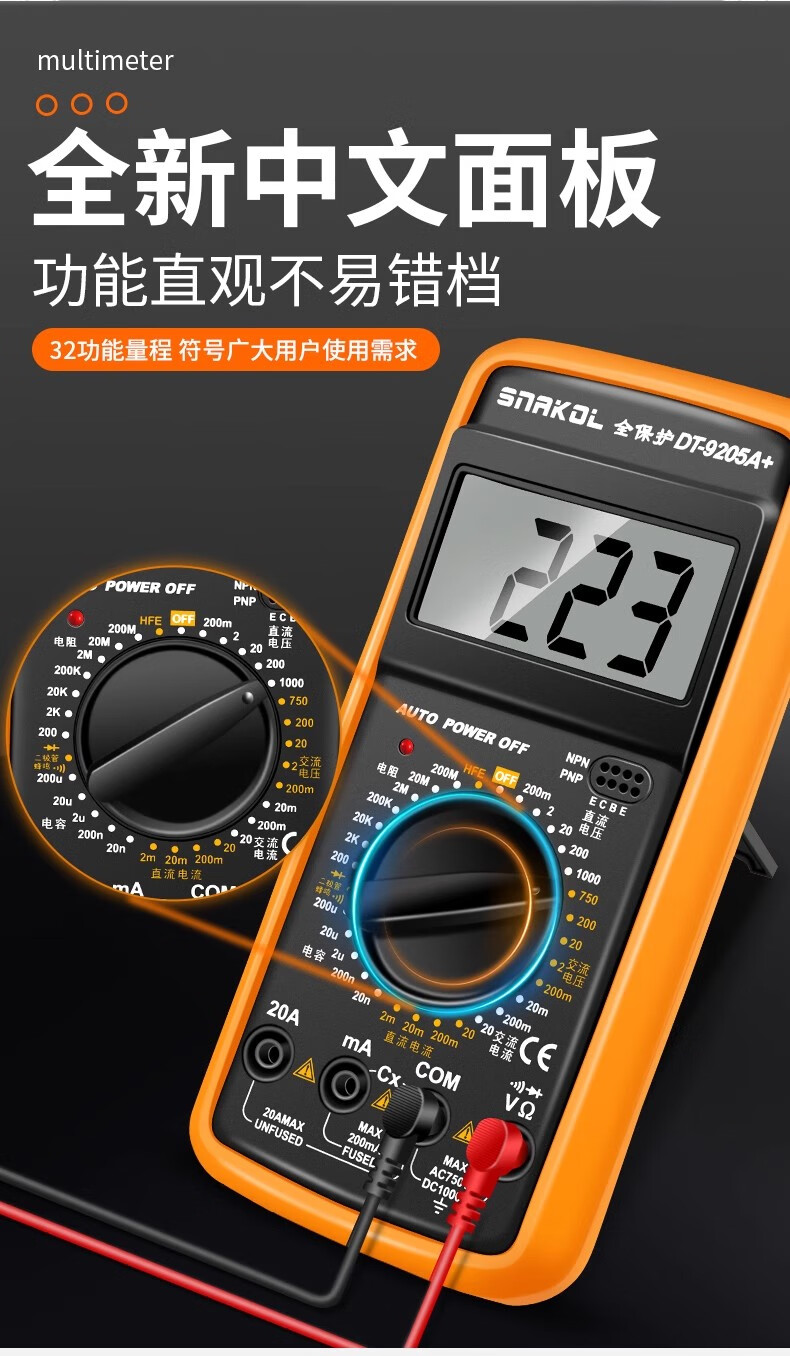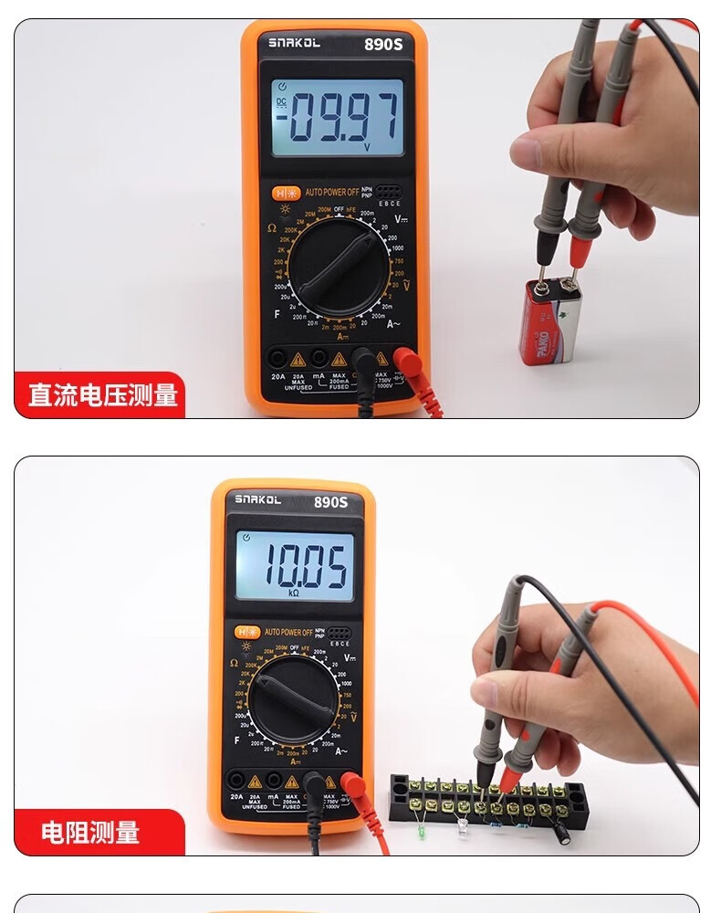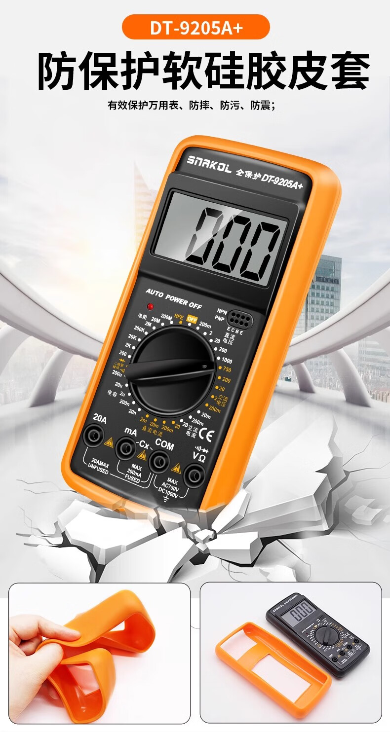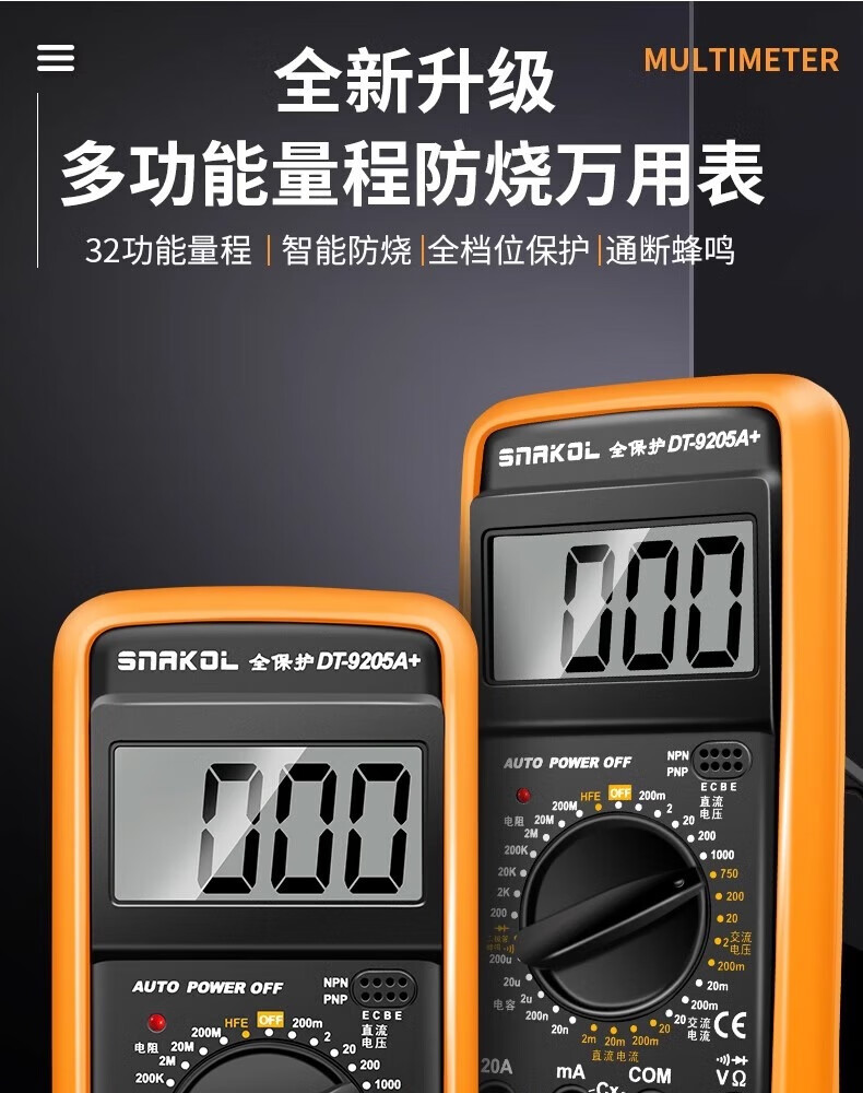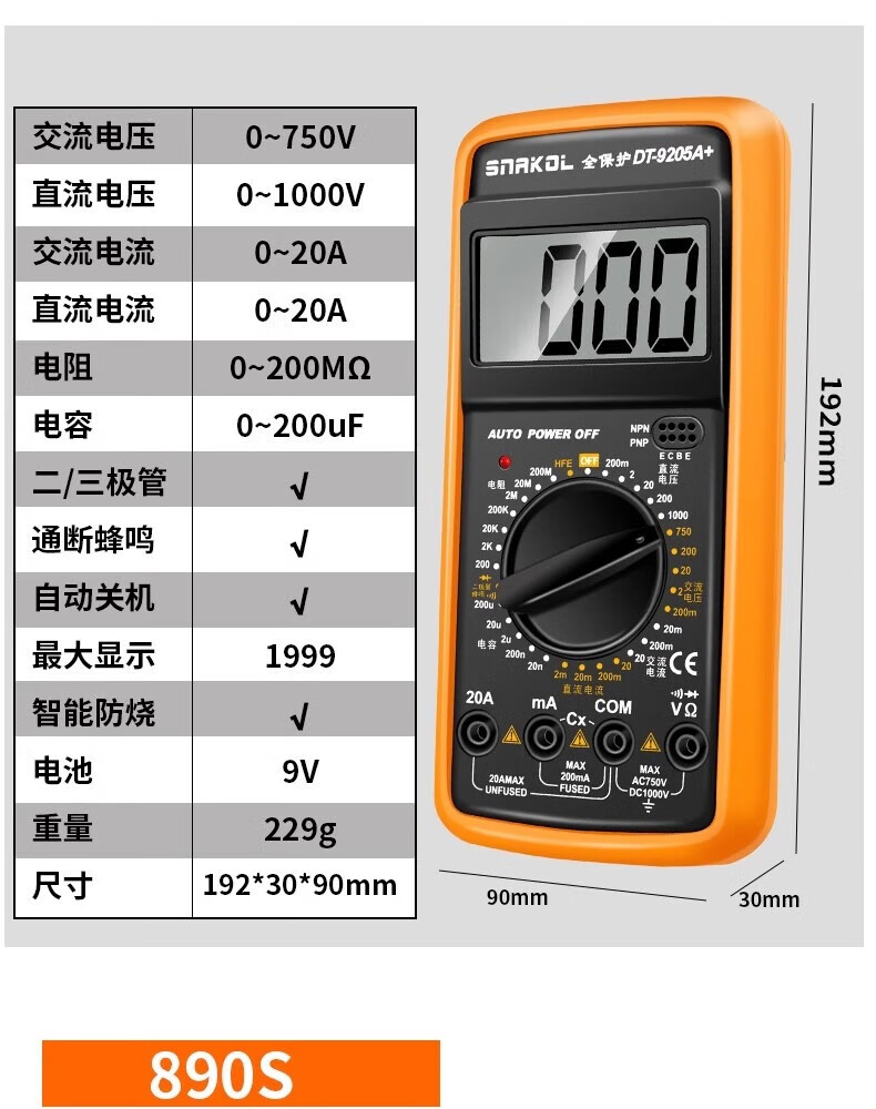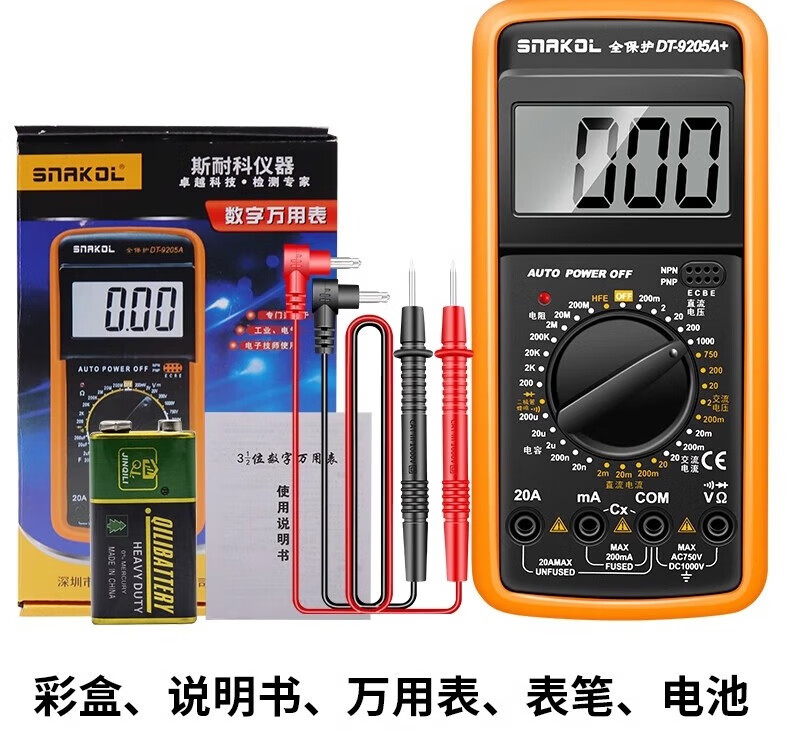 SNACO high-precision digital multimeter, smart anti-burn multimeter, special maintenance for electricians, portable AC and DC multimeter DT9205A+ 890S standard with backlight data lock Chinese panel