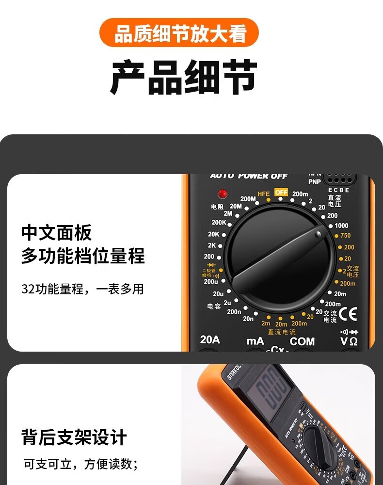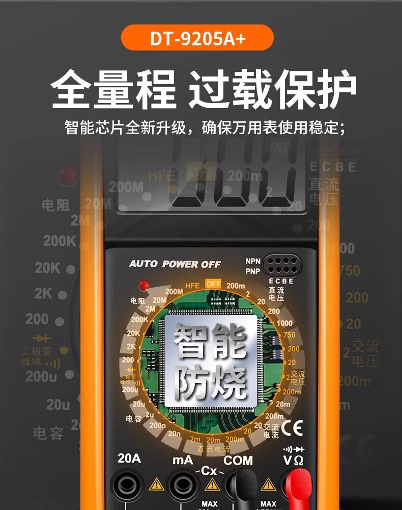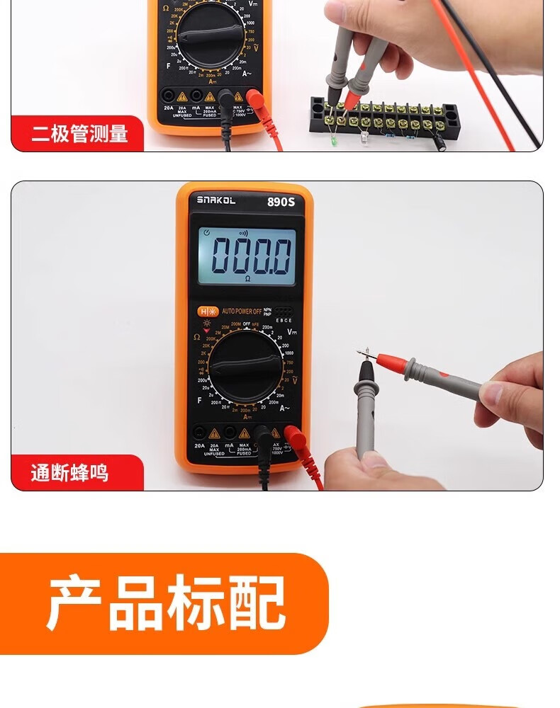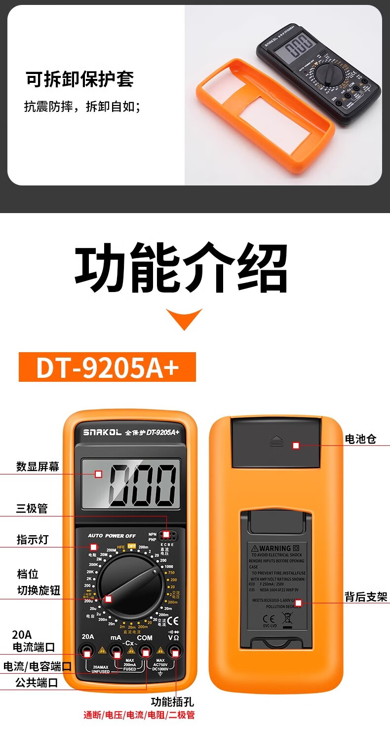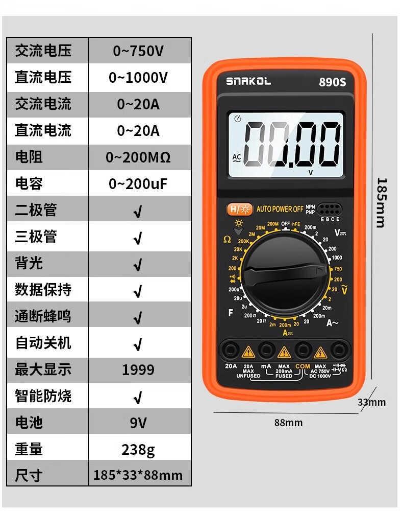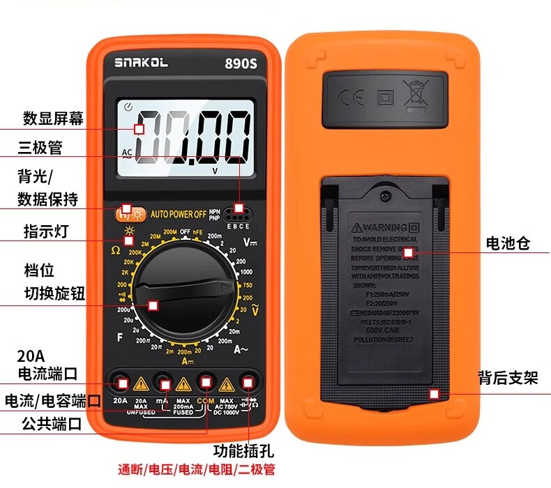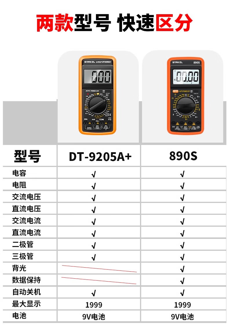 SNACO high-precision digital multimeter, smart anti-burn multimeter, special maintenance for electricians, portable AC and DC multimeter DT9205A+ 890S standard with backlight data lock Chinese panel