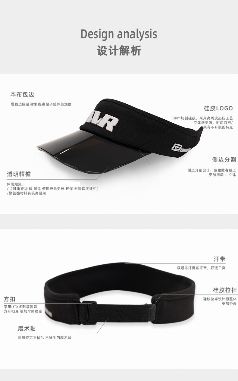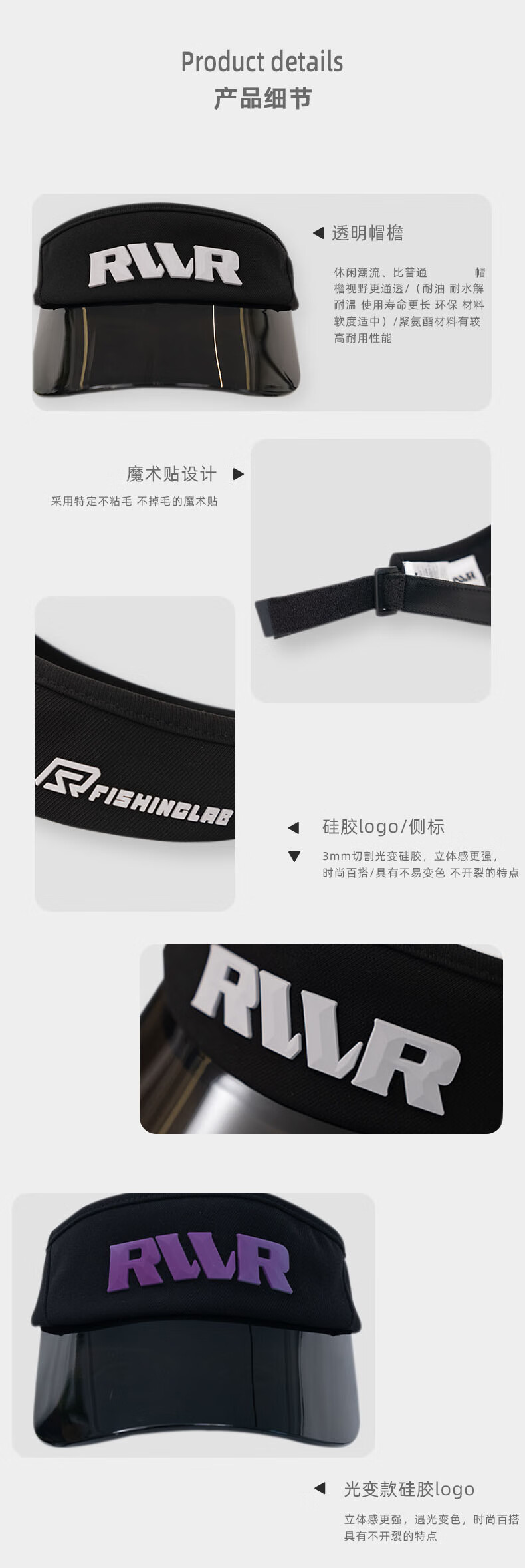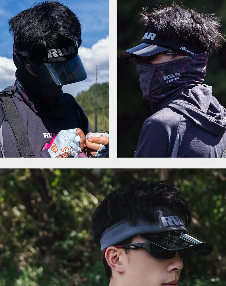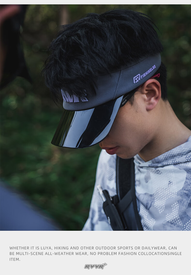 RVVR topless lure fishing sun protection hollow top breathable PVC brim summer peaked hat black