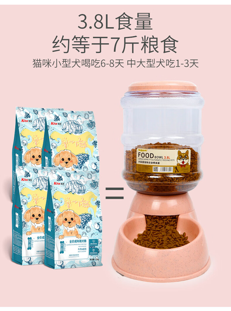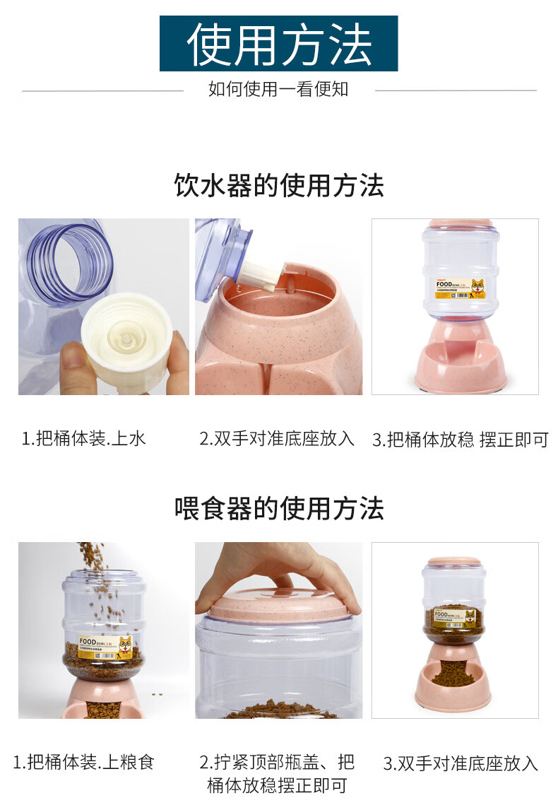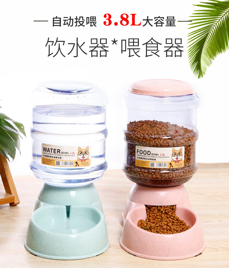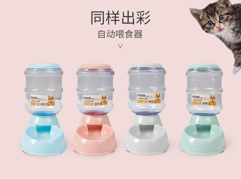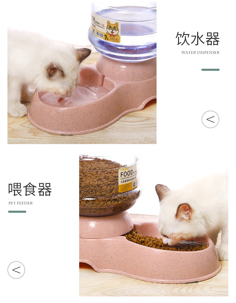 Pipitao pet automatic feeder Pipitao wheat straw large-capacity water feeding utensils feeding dog basin water feeder pink