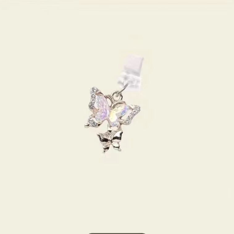 Laiji is suitable for three-dimensional double-layer butterfly exquisite diamond mobile phone dust plug charging port plug to prevent dust Apple Huawei type-c main picture type-c oval (Apple 15)