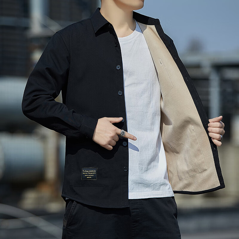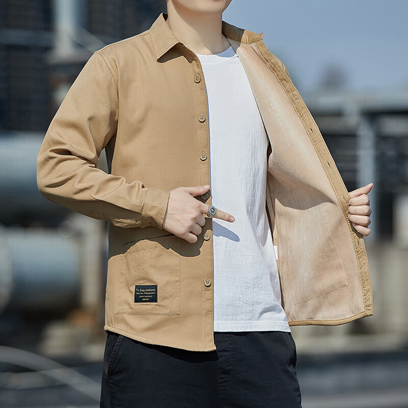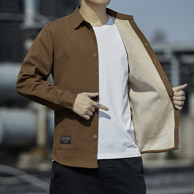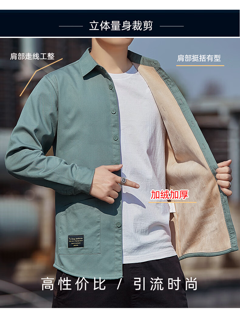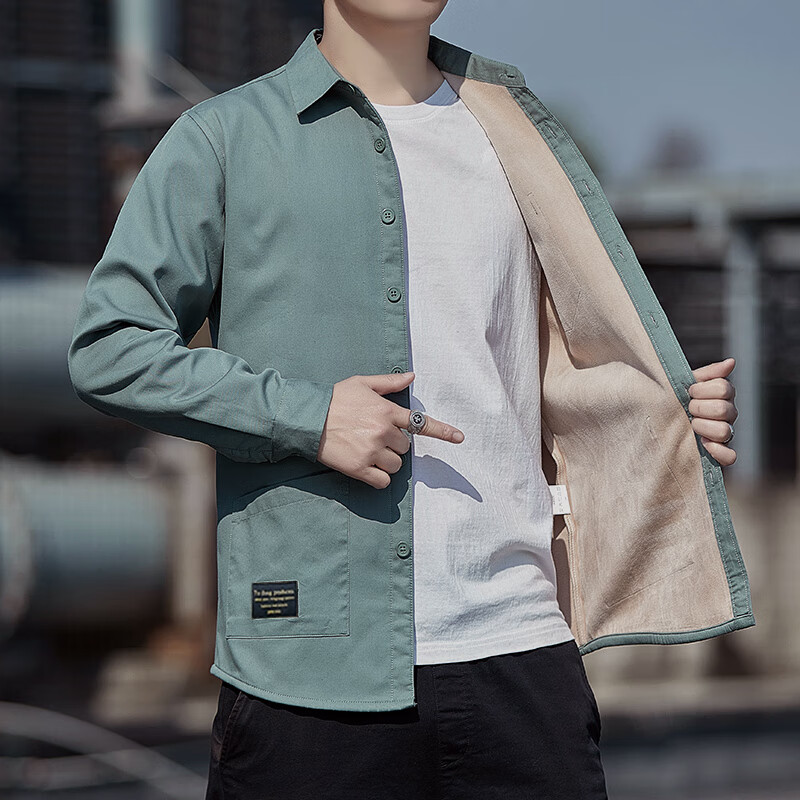 Pierre Cardin men's long-sleeved shirt with velvet and thickened cotton warm men's jacket autumn and winter shirt young and middle-aged men's warm shirt army green pure cotton warm velvet shirt H25 XL recommended 130-150Jin Jin equals 0.5 kg