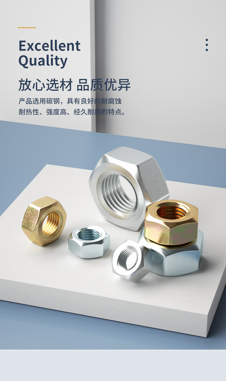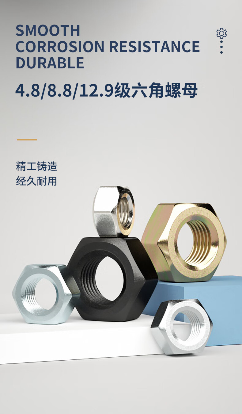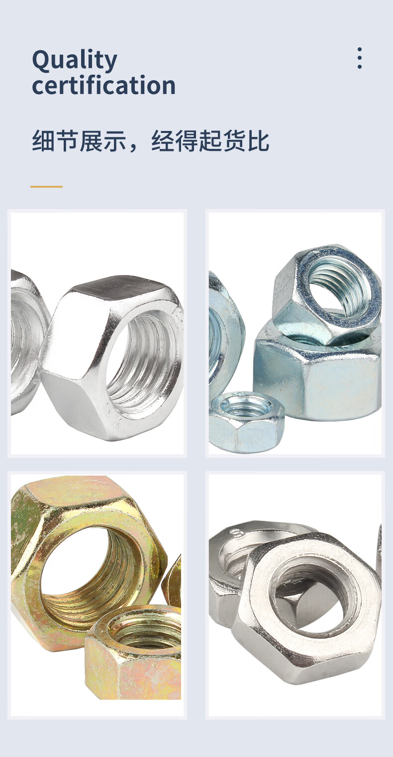 Guwanji grade 8.8 12.9 high strength hexagonal nut galvanized screw cap nickel plated black nut national standard accessories M8 40 pieces 8.8 grade color zinc