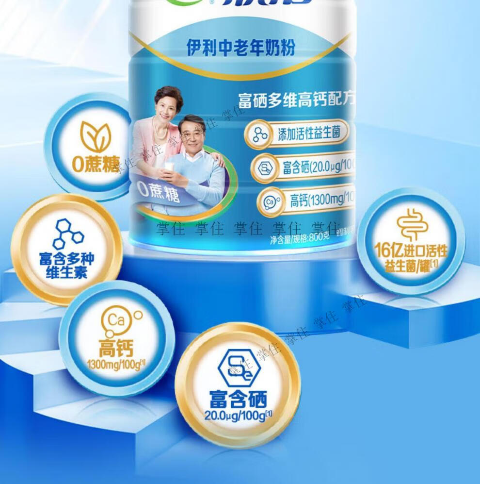 Yili middle-aged and elderly milk powder for diabetics special sugar-controlled sugar-free food for three high people nutritious breakfast 0 sugar rich selenium and high calcium milk powder for middle-aged and elderly people 800g*2 cans