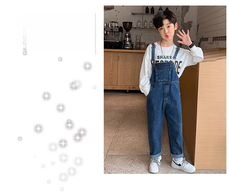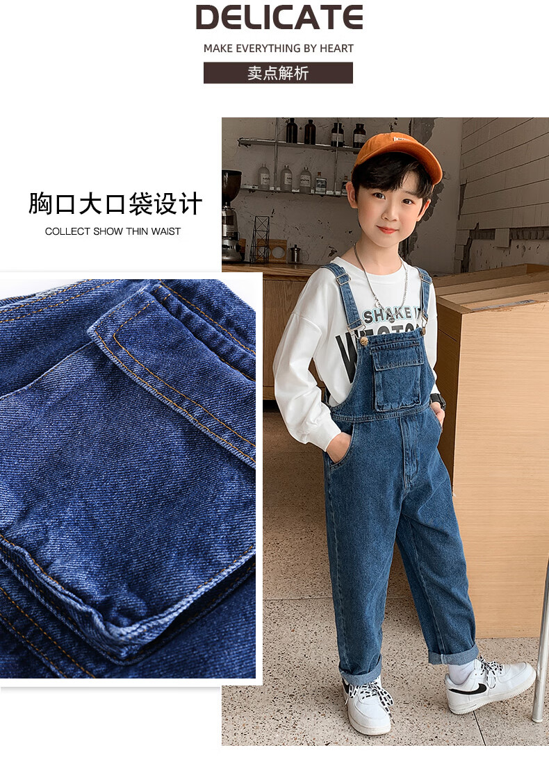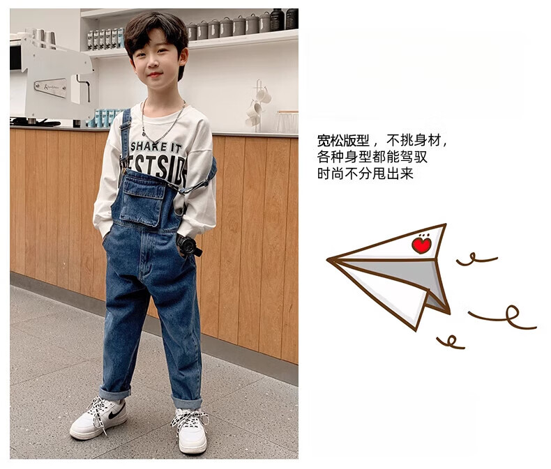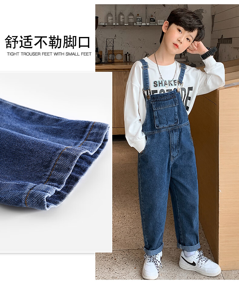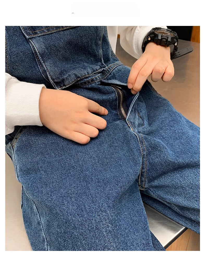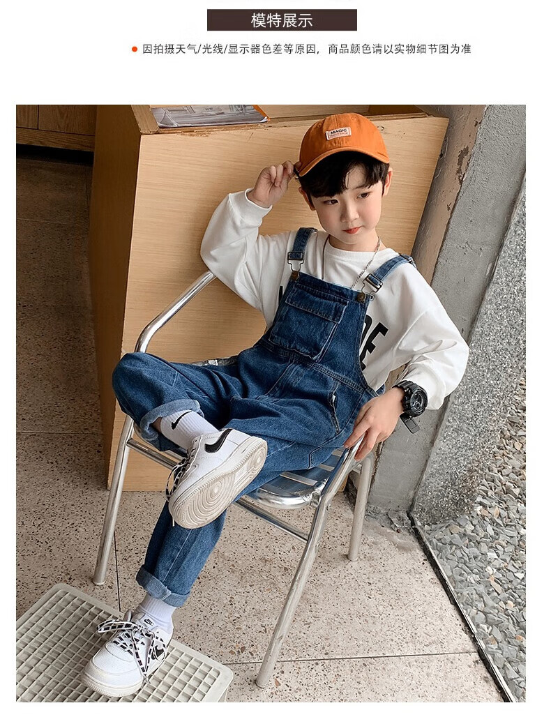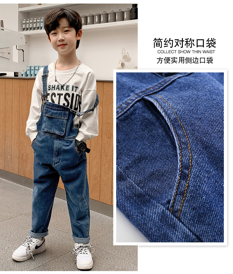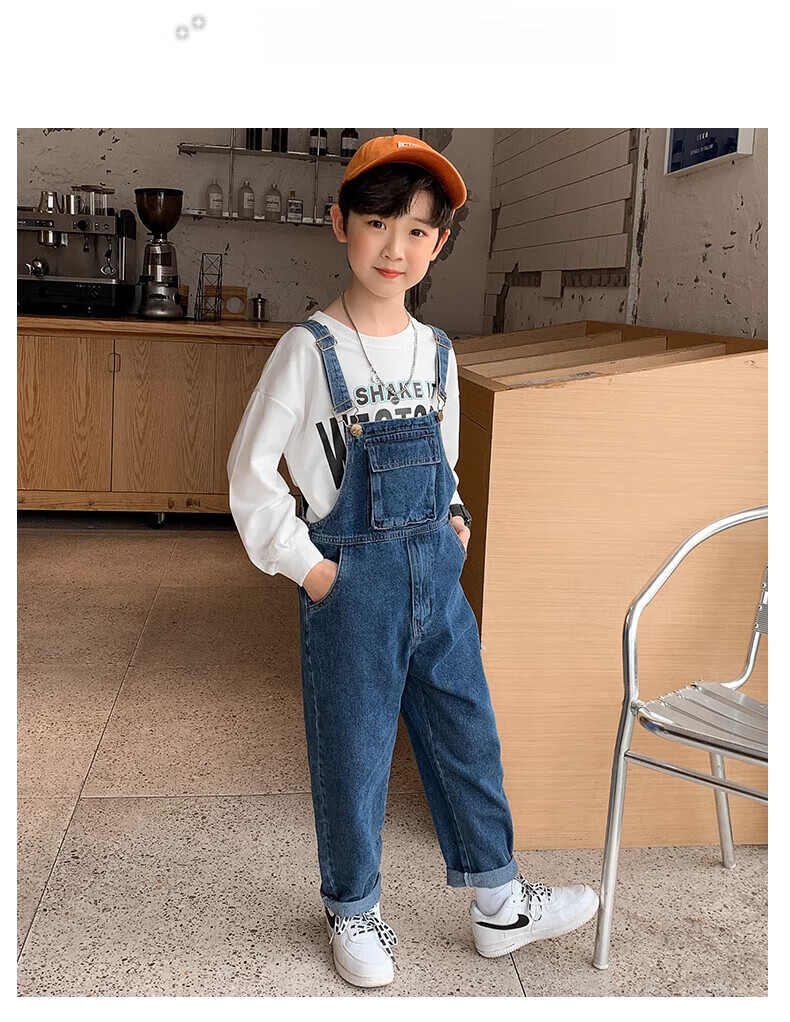 G.DUCKKIDS Boys and Girls Denim Overalls Suit Spring and Autumn 2025 New Medium and Large Children's Long Pants Performance Outfit Blue Single-piece Overalls 130 Recommended 120-130cm Age 7-8 Years Old