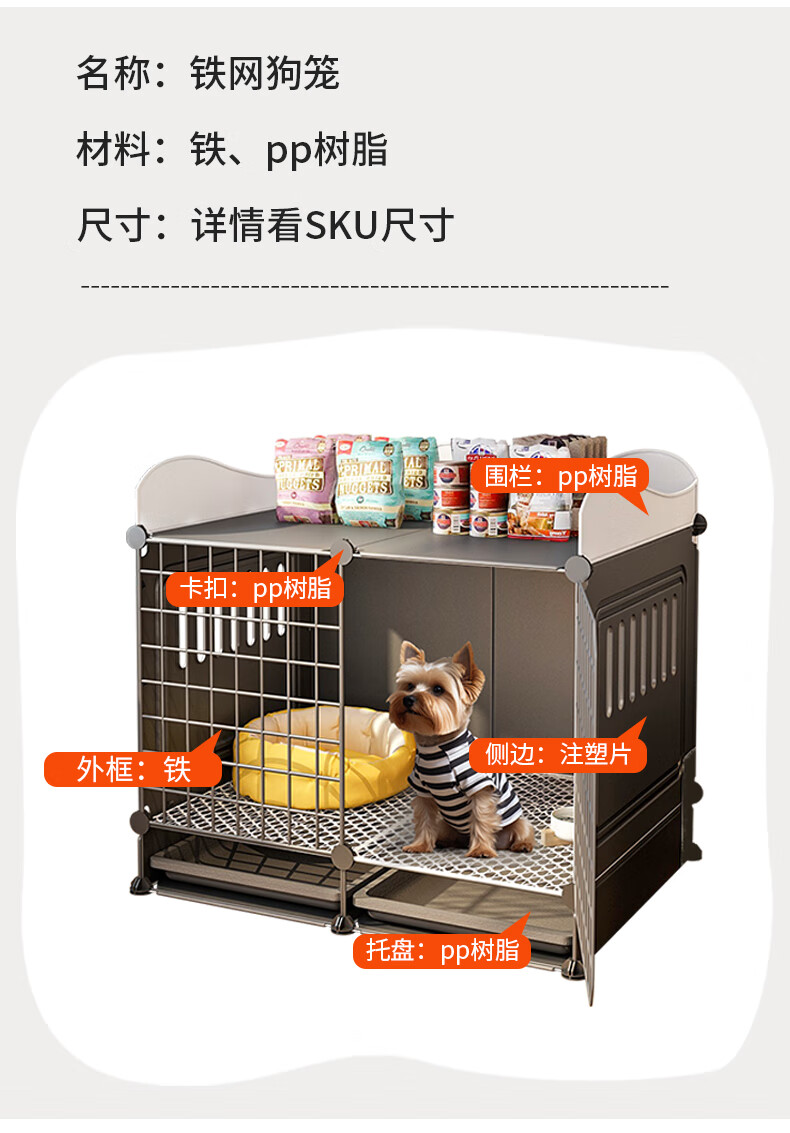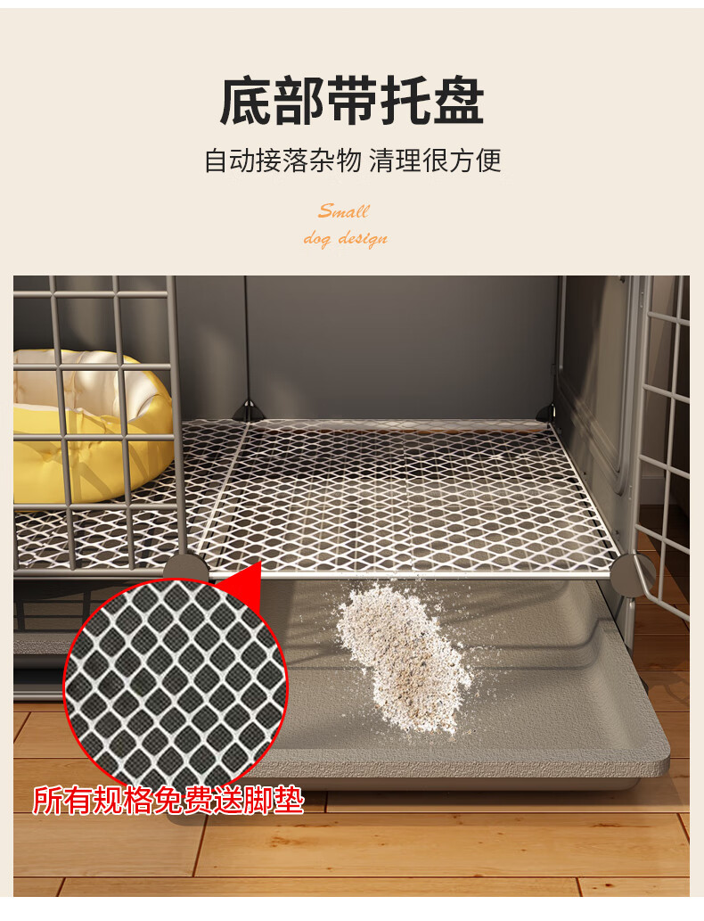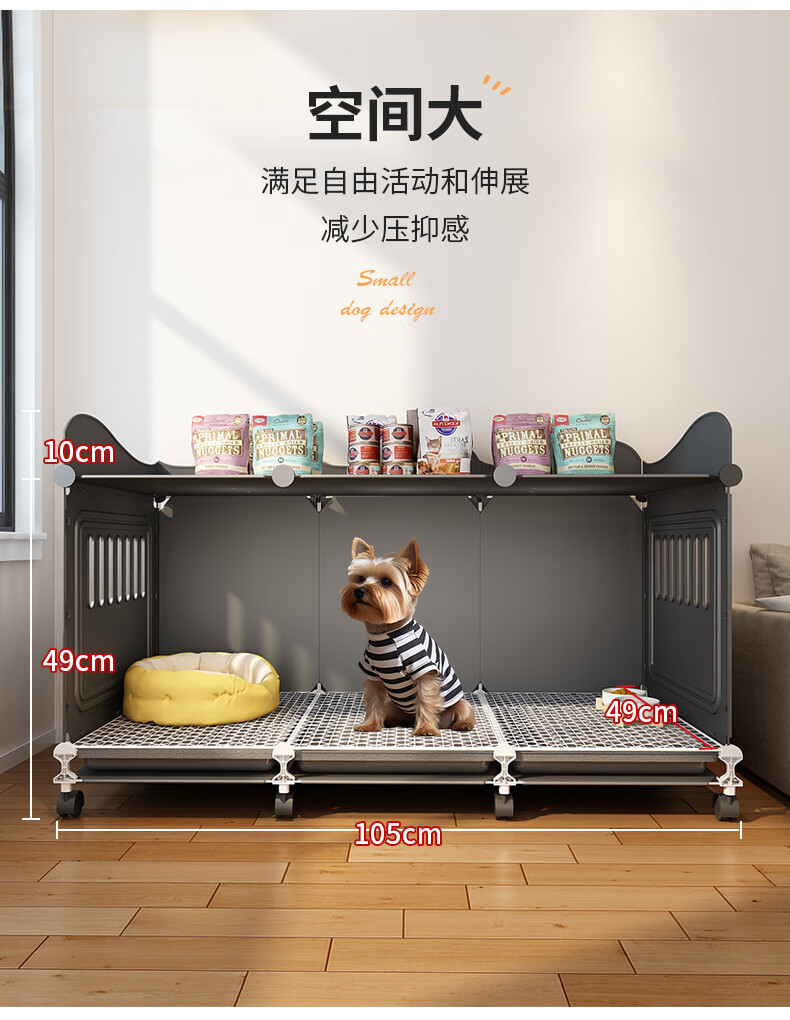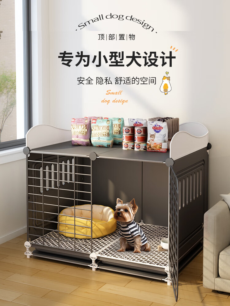 OIMG Dog Cage Small Dog Home Indoor Winter Nest Toilet Integrated Puppy Pet Cage Bichon Frize Fence 2 Medium Size 75*49*59CM (With Universal Wheel White) Basic Cage + Grid Foot Pads + Installation Tools