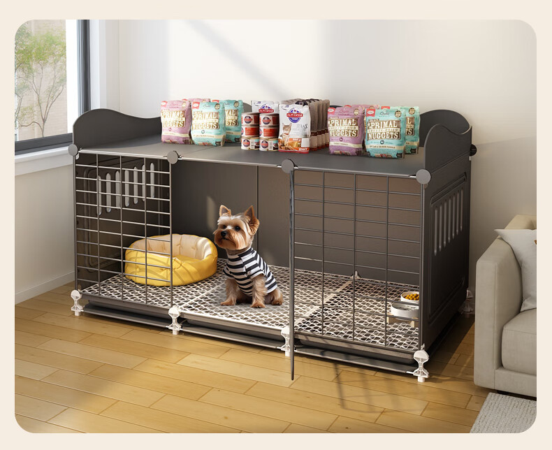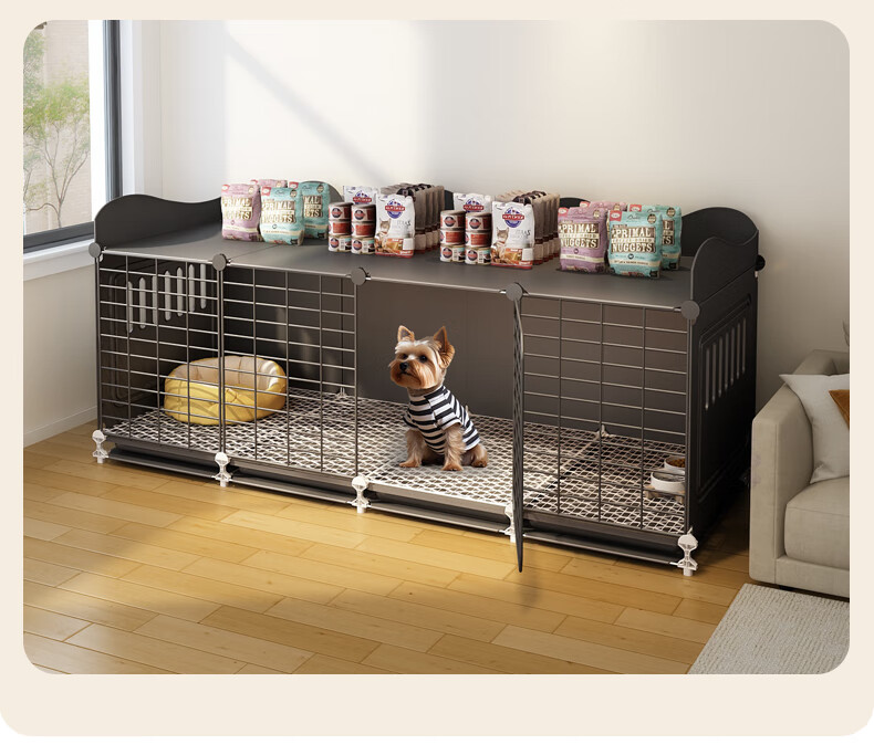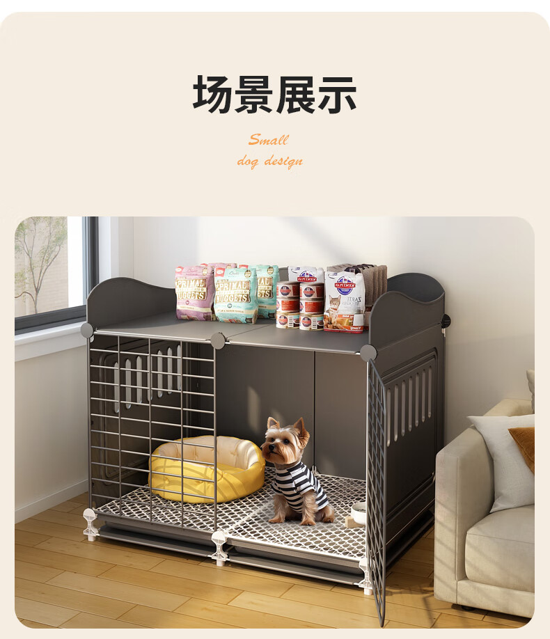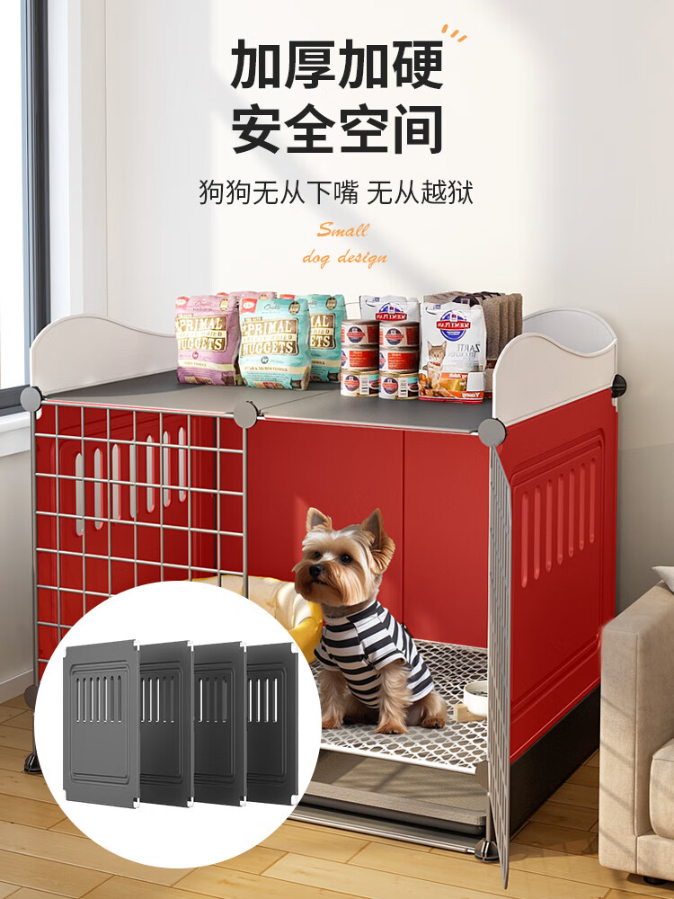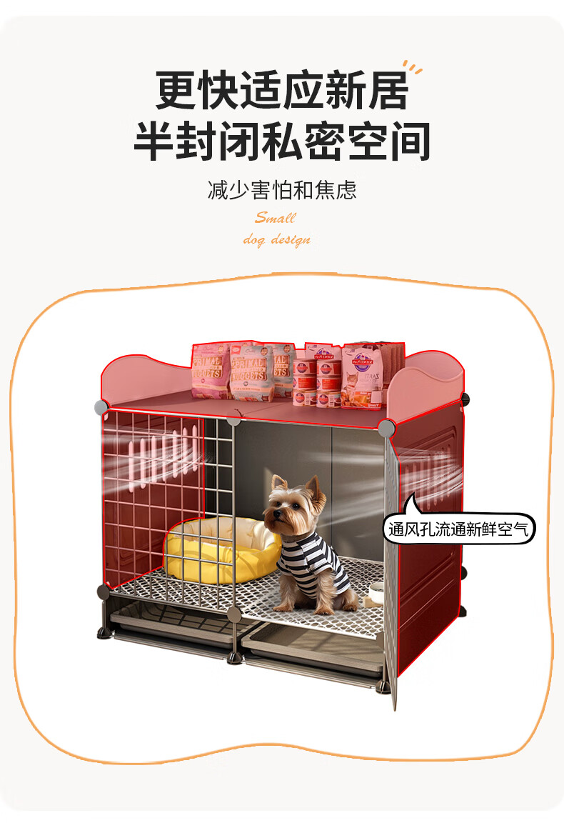OIMG Dog Cage Small Dog Home Indoor Winter Nest Toilet Integrated Puppy Pet Cage Bichon Frize Fence 2 Medium Size 75*49*59CM (With Universal Wheel White) Basic Cage + Grid Foot Pads + Installation Tools