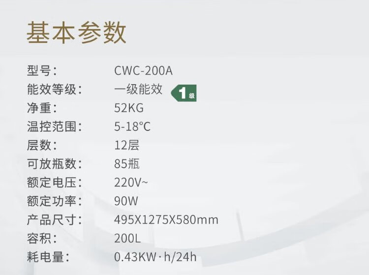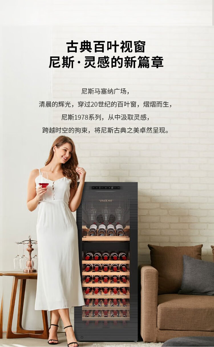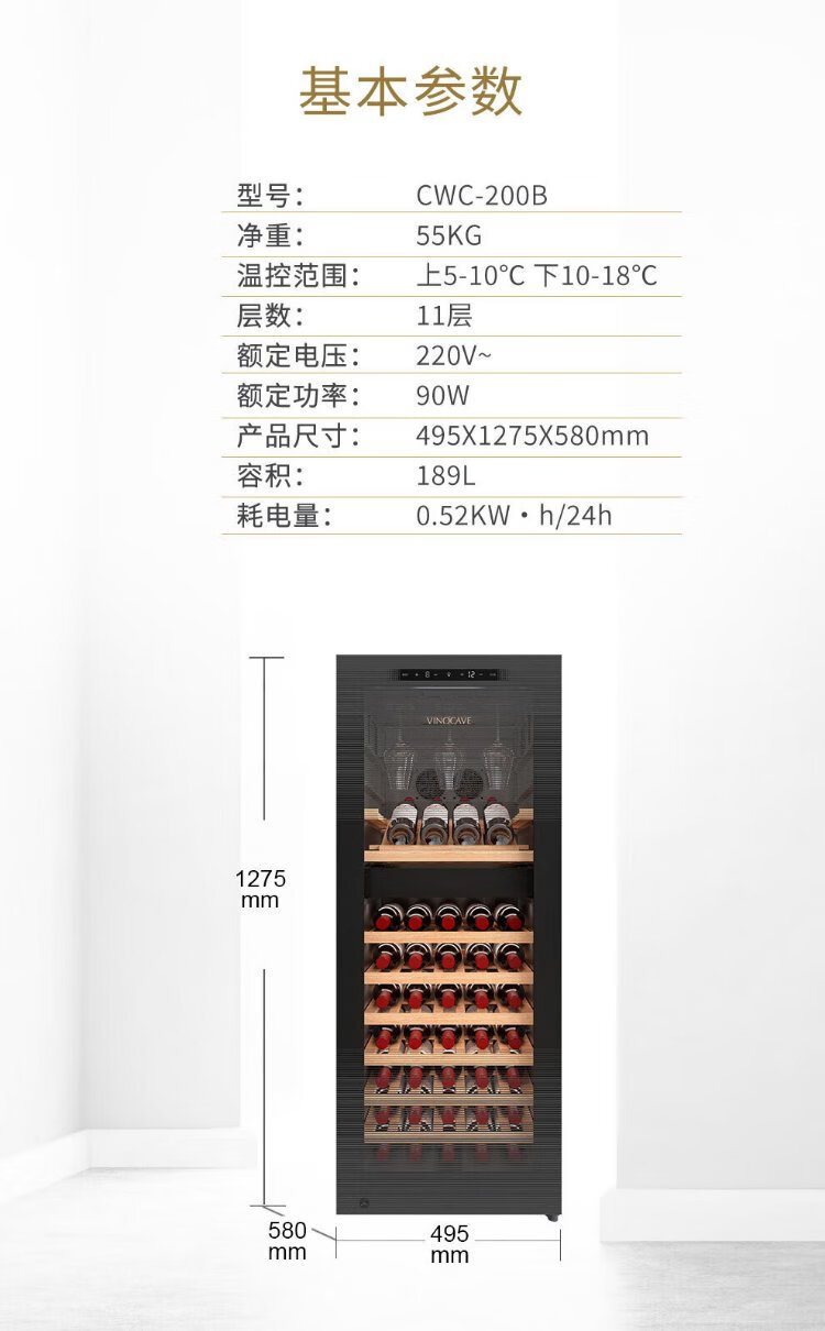 Vinocave red wine cabinet constant temperature wine cabinet compressor home living room fresh wine refrigerated storage display cabinet refrigerator bar ultra-thin dual temperature dual control CWC-200B-189L