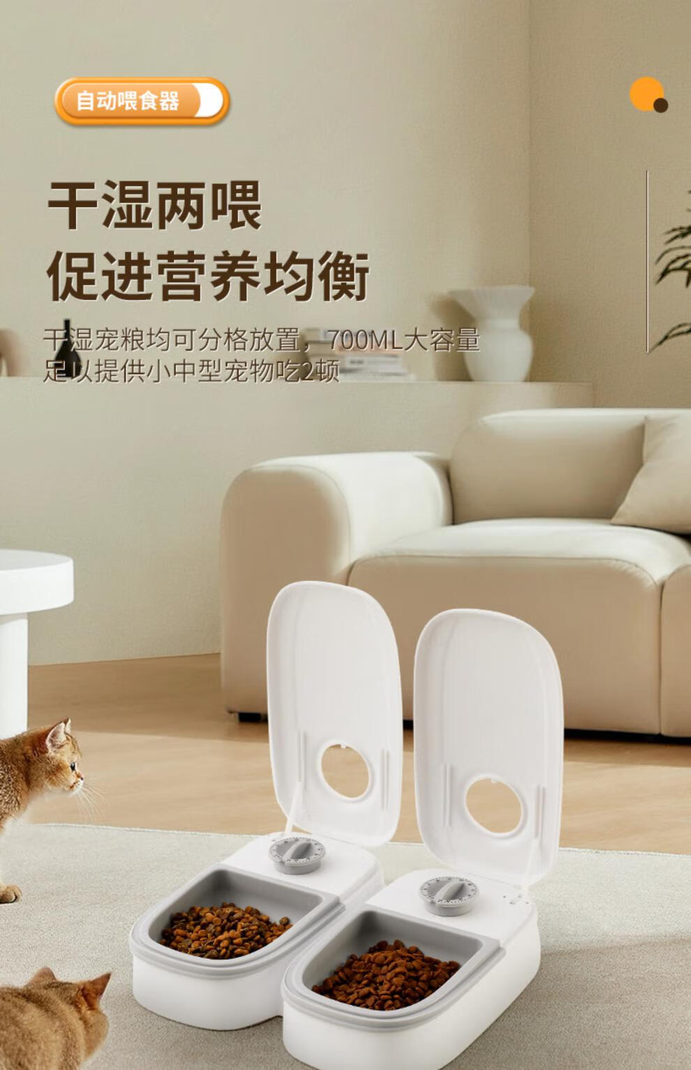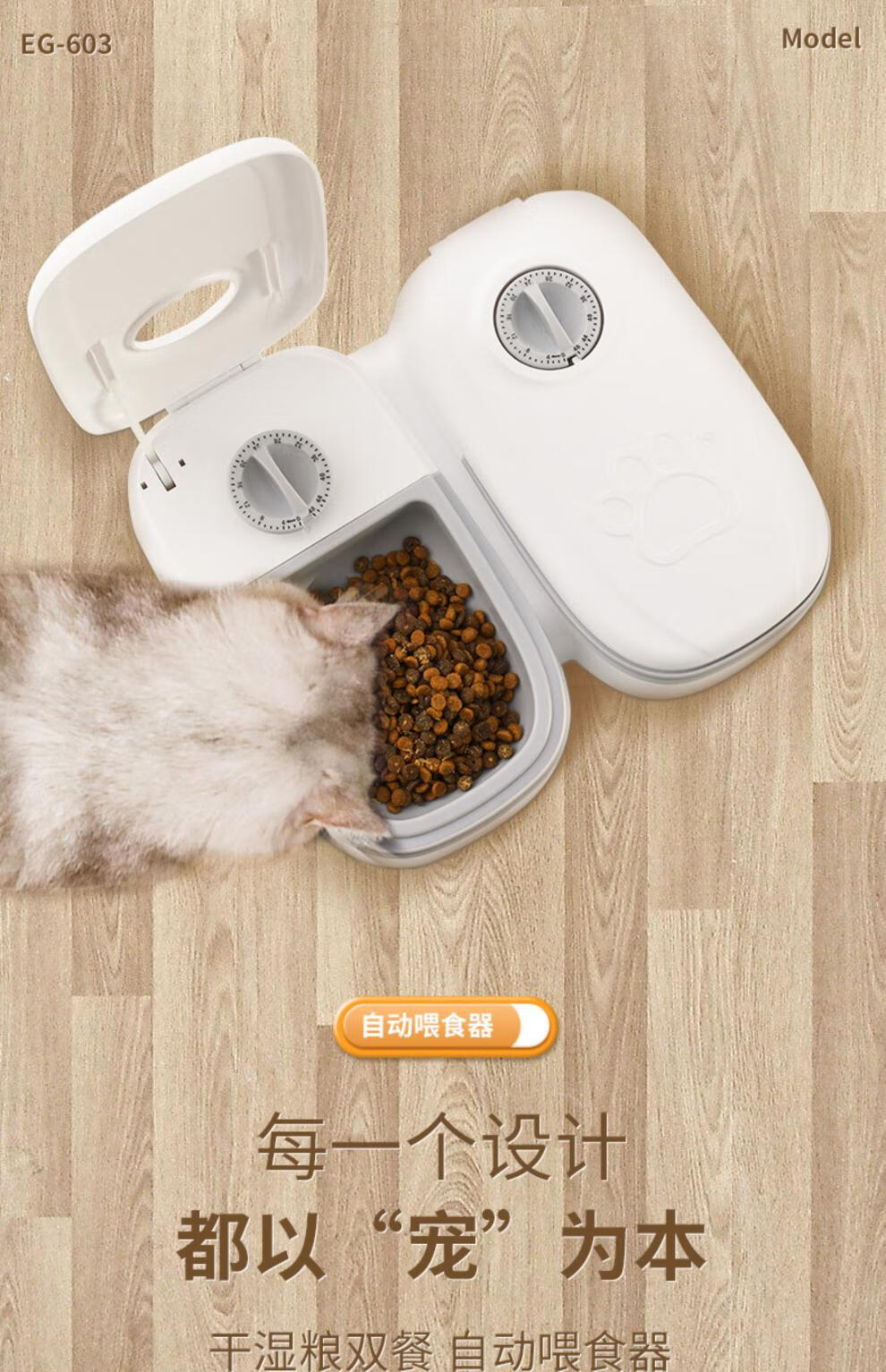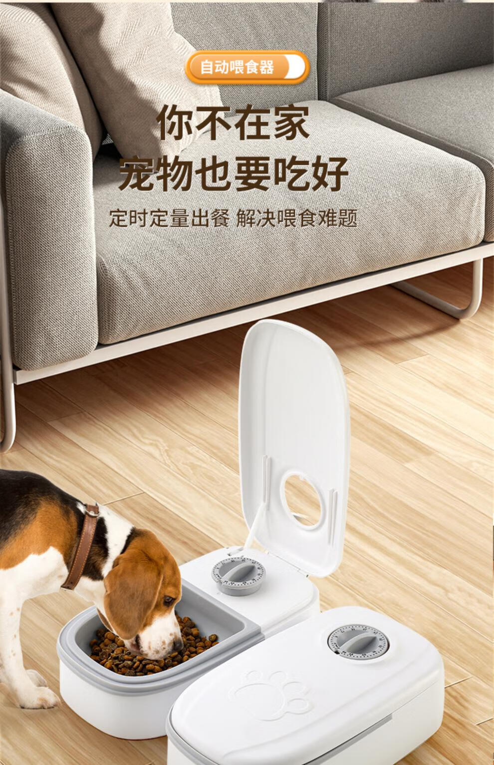 CLCEY pet automatic feeder cat and dog timed and quantitative intelligent feeding artifact dry and wet double bowl cat food feeding machine double meal gray shopkeeper