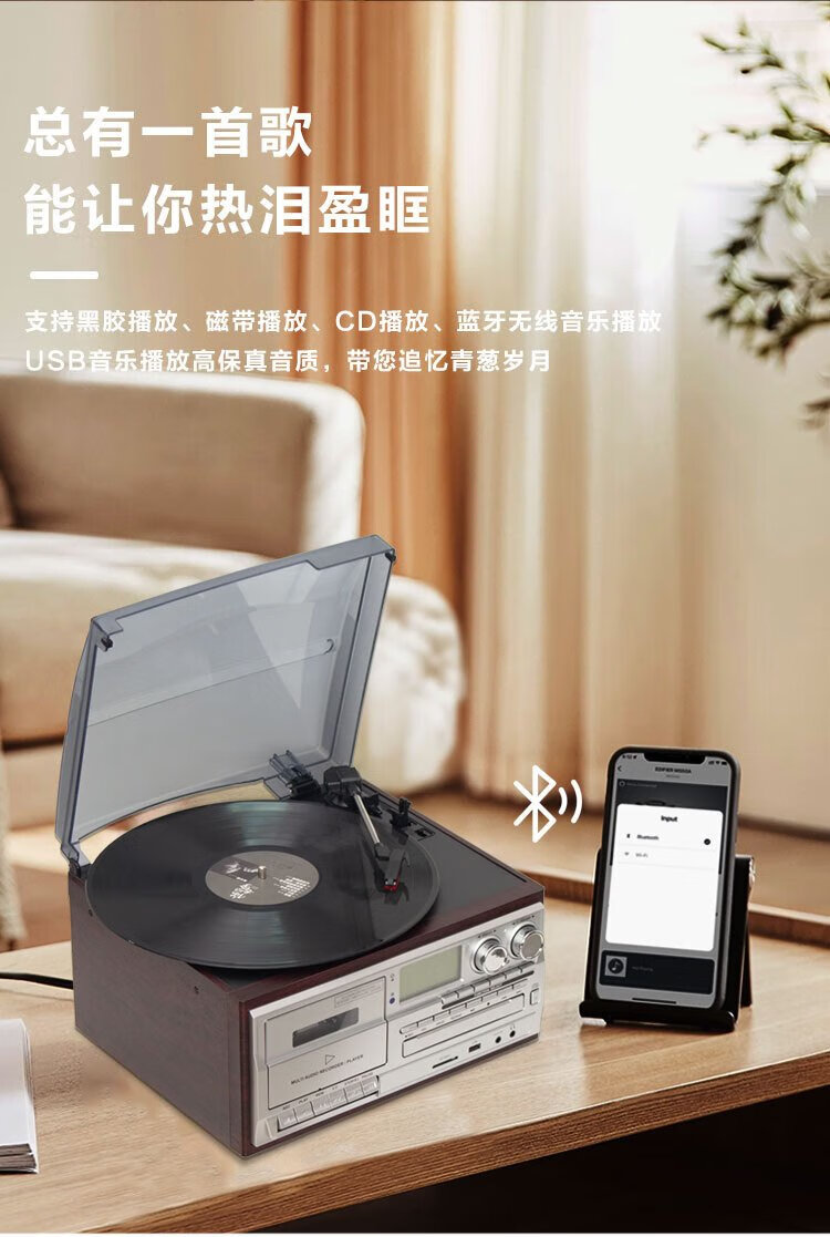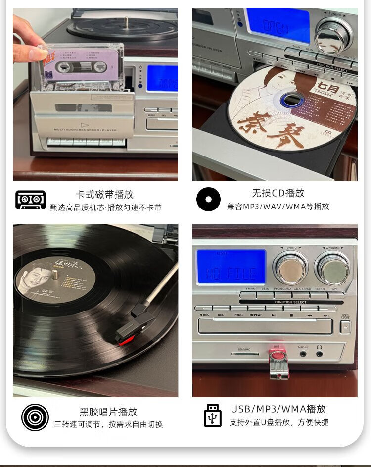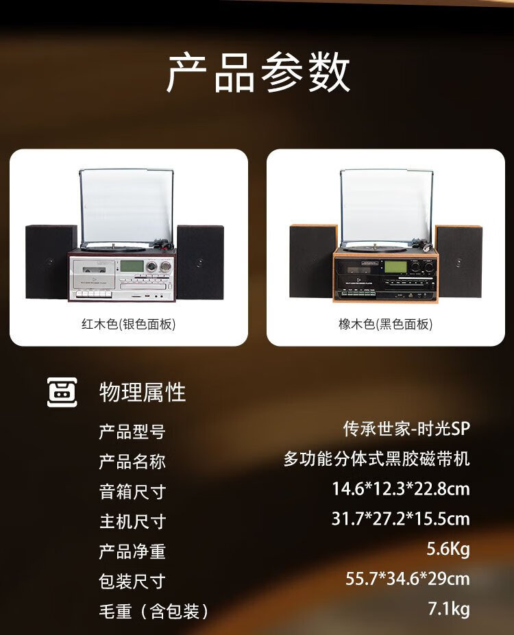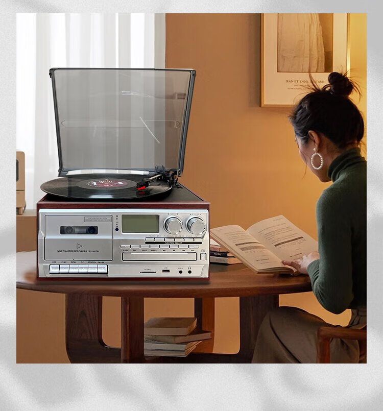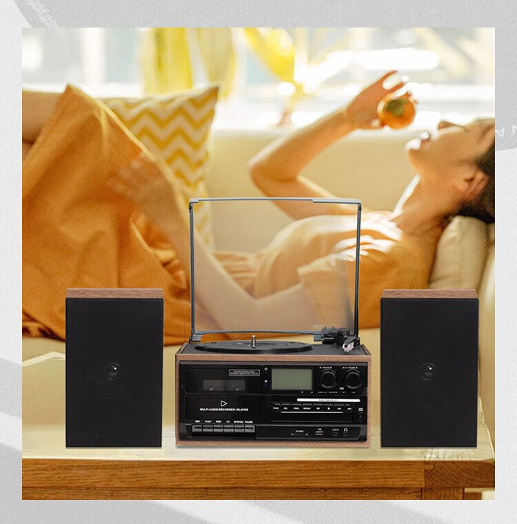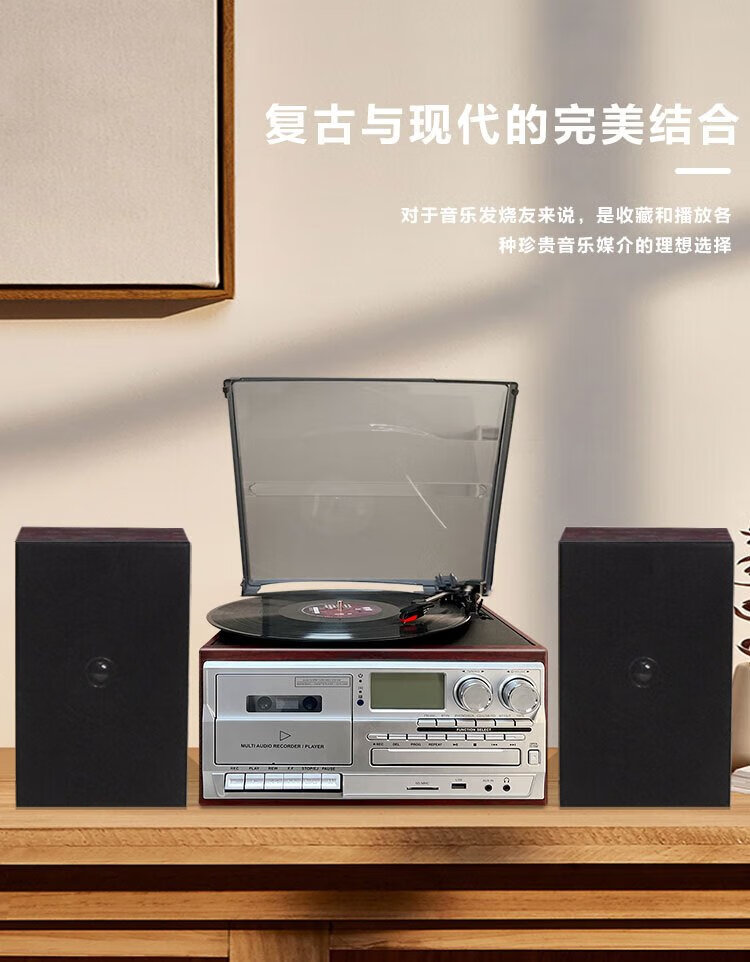 Heritage family tape player CD tape vinyl multi-function split external speaker vinyl record player retro gramophone small Bluetooth speaker vinyl CD tape multi-function external speaker oak color