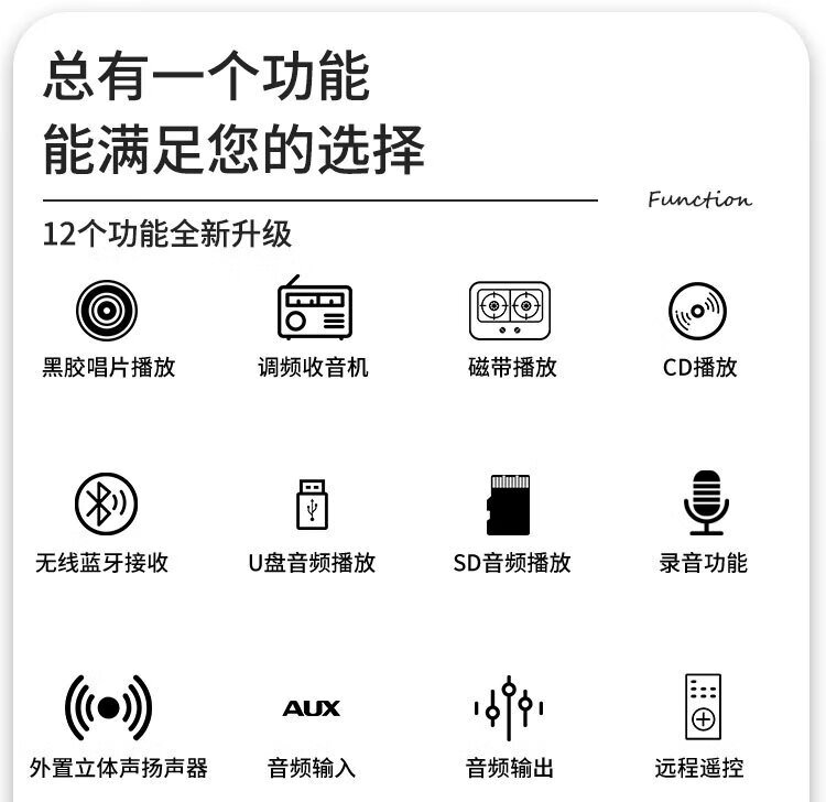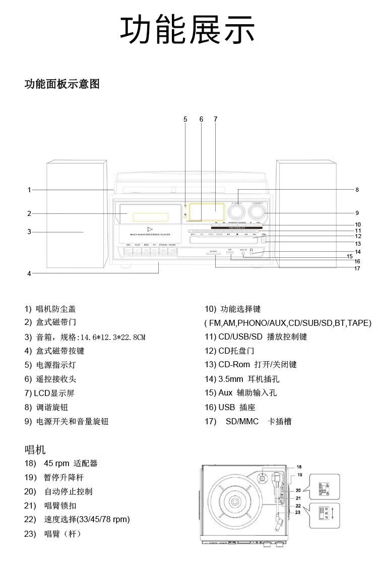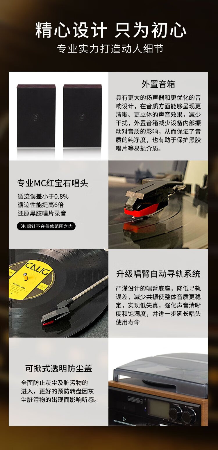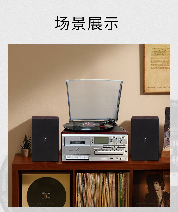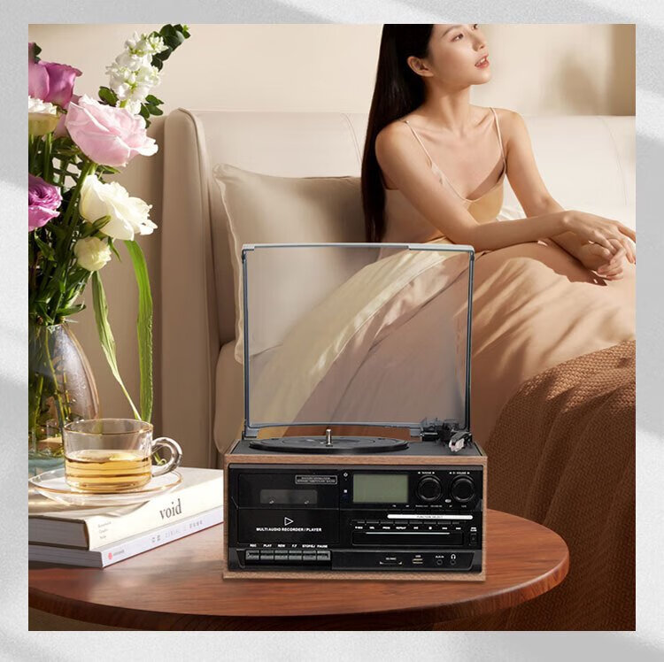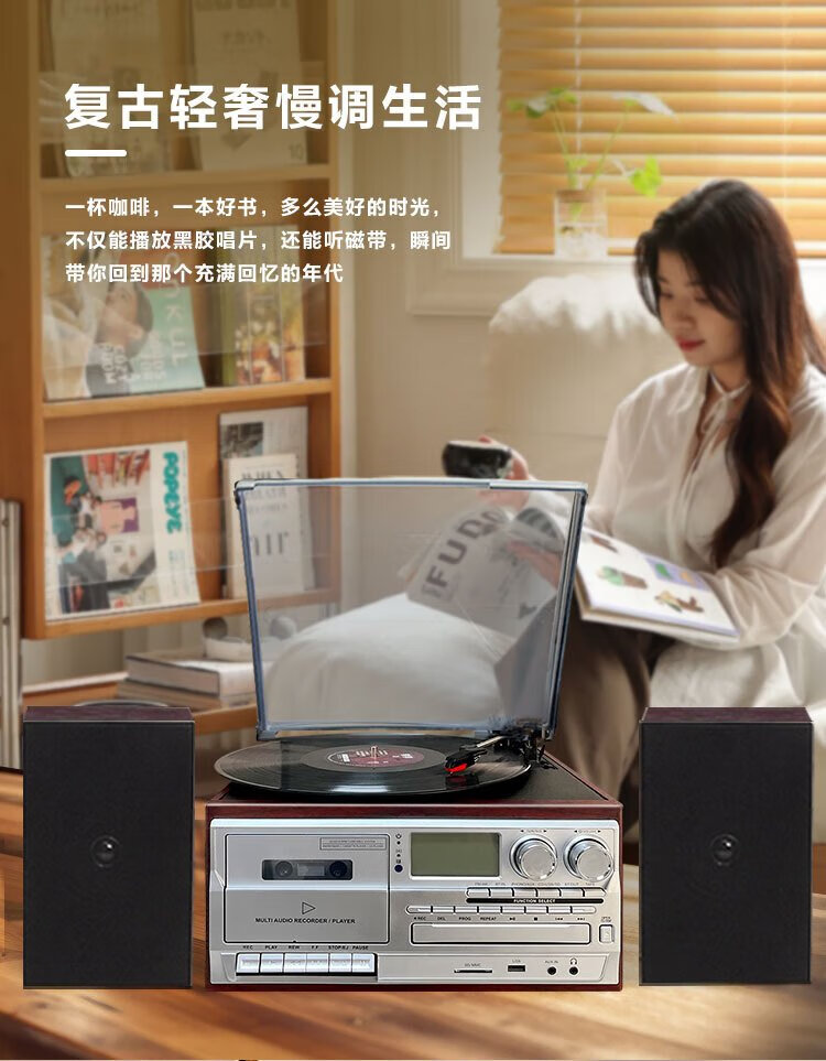 Heritage family tape player CD tape vinyl multi-function split external speaker vinyl record player retro gramophone small Bluetooth speaker vinyl CD tape multi-function external speaker oak color