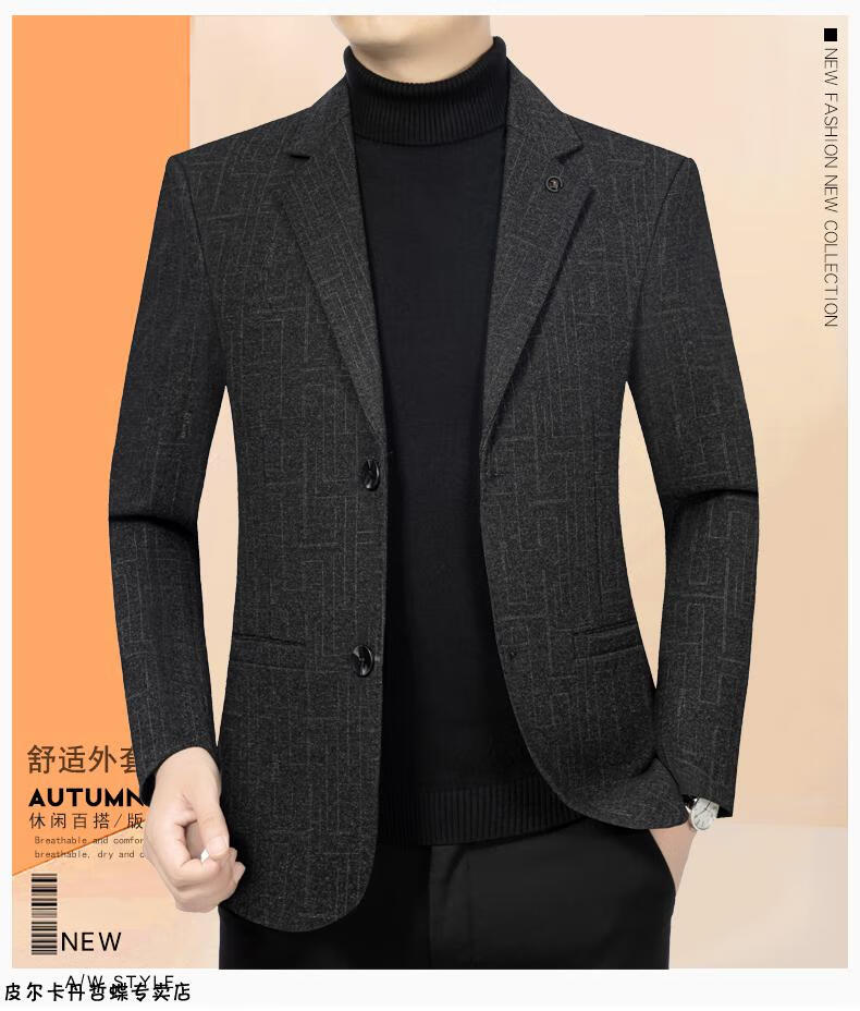 Pierre Cardin Autumn Suit Men's Middle-aged Spring and Autumn Casual Suit Jacket Business Single Top Men's Slim Dad Wear 6261 Gray L (175)