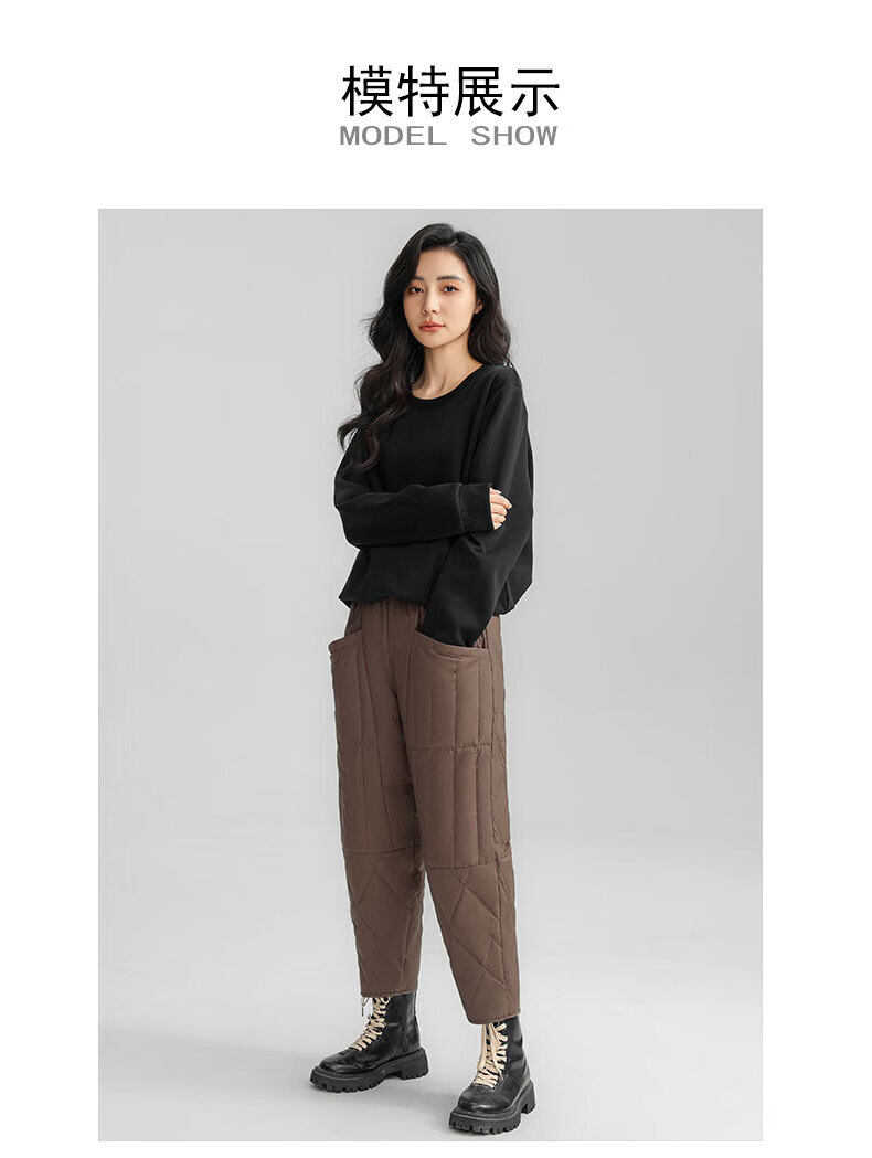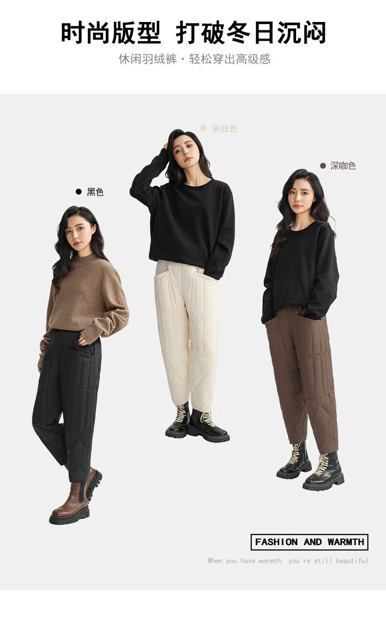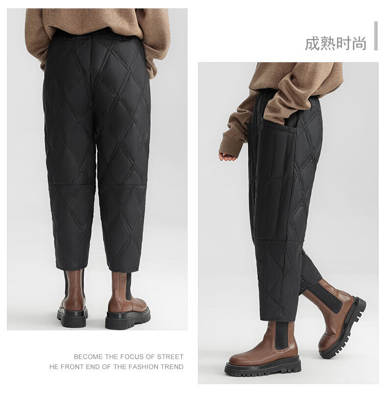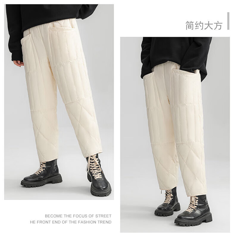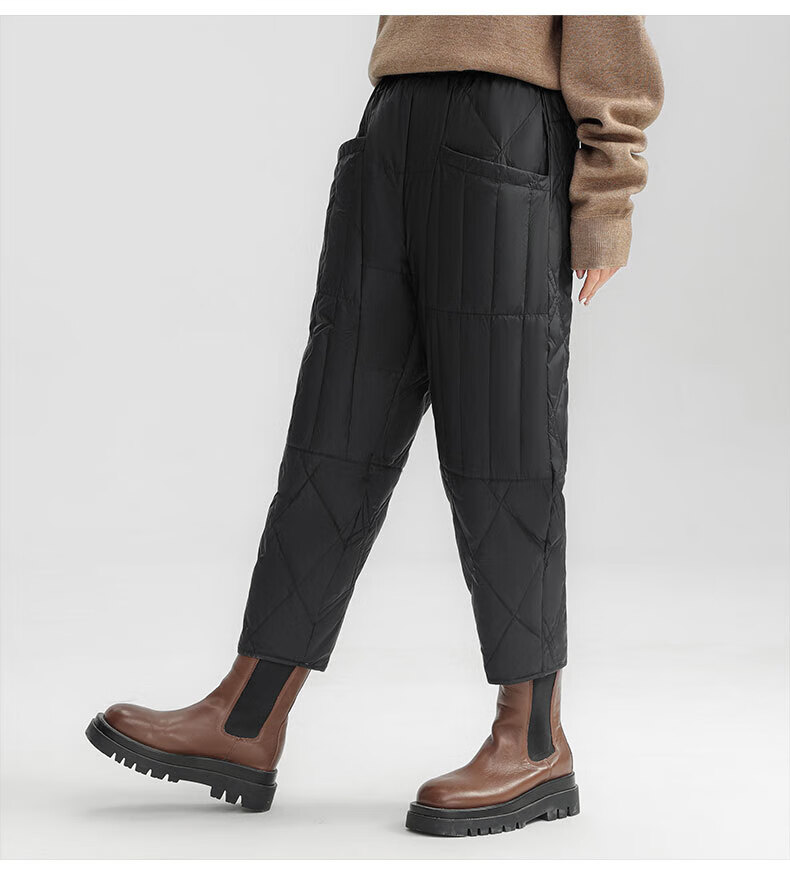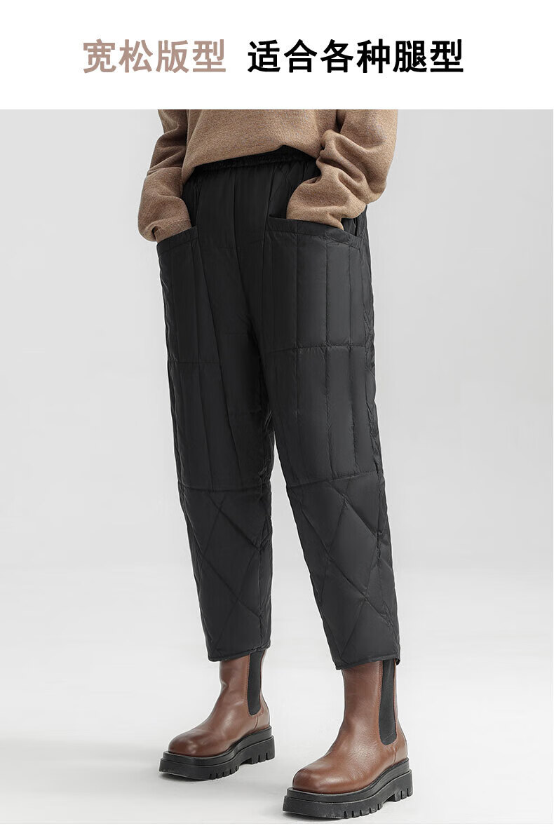 YAYA down pants for women 2024 winter new fashion versatile loose straight duck down warm casual trousers K black L (165)
