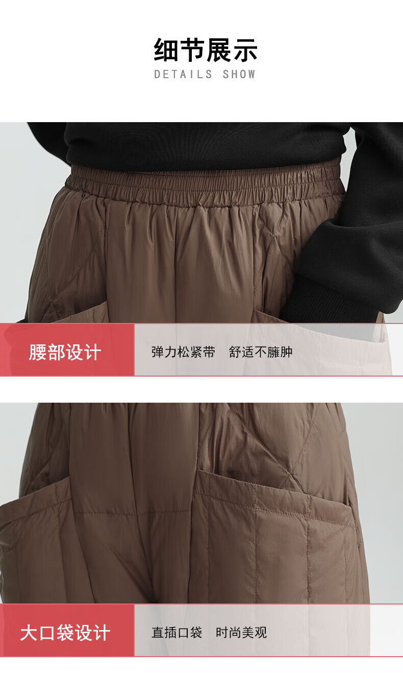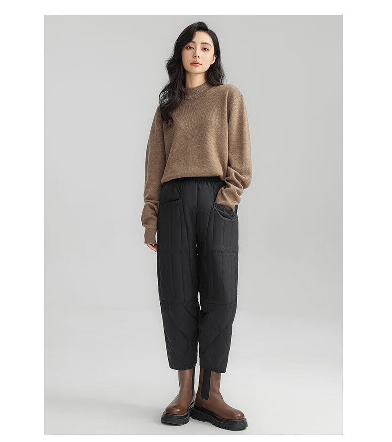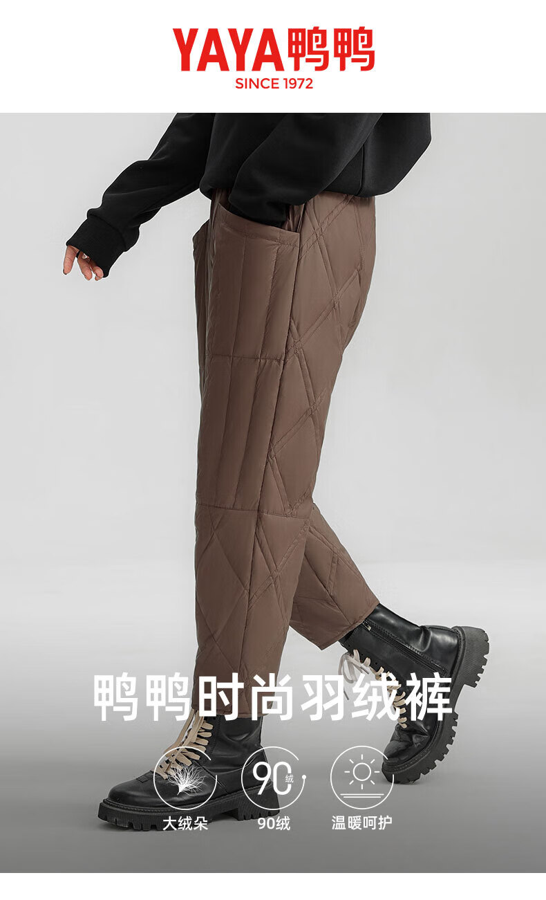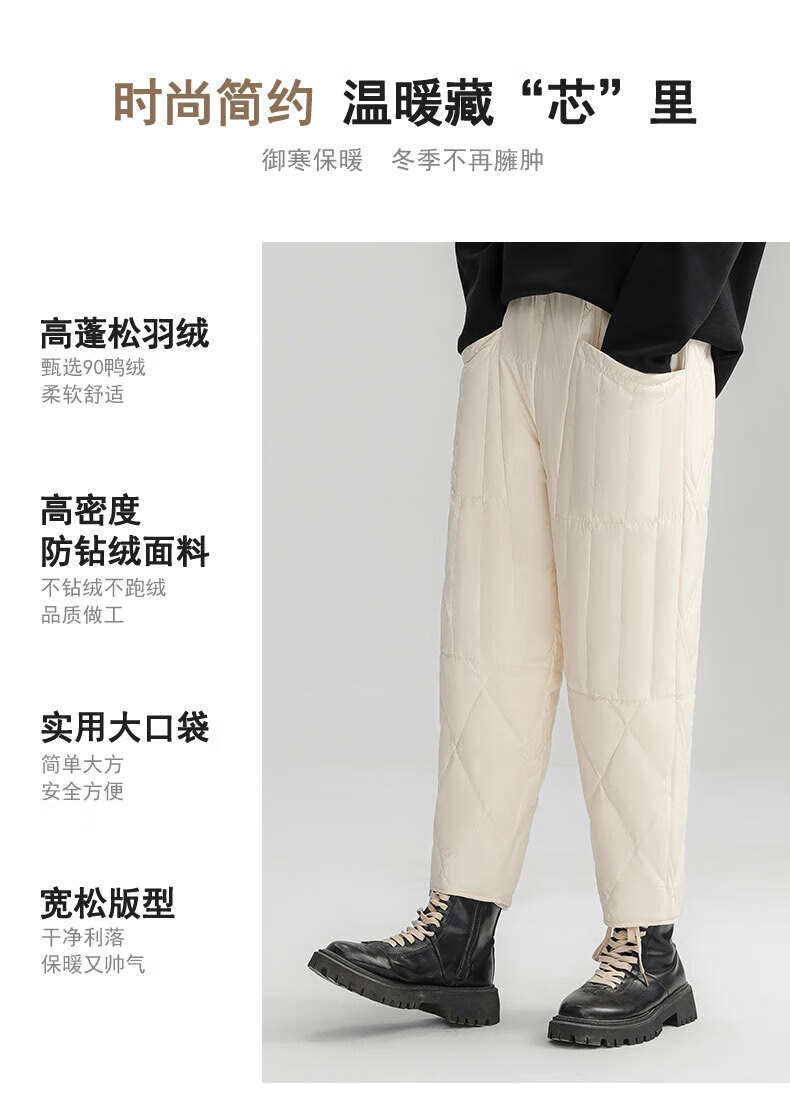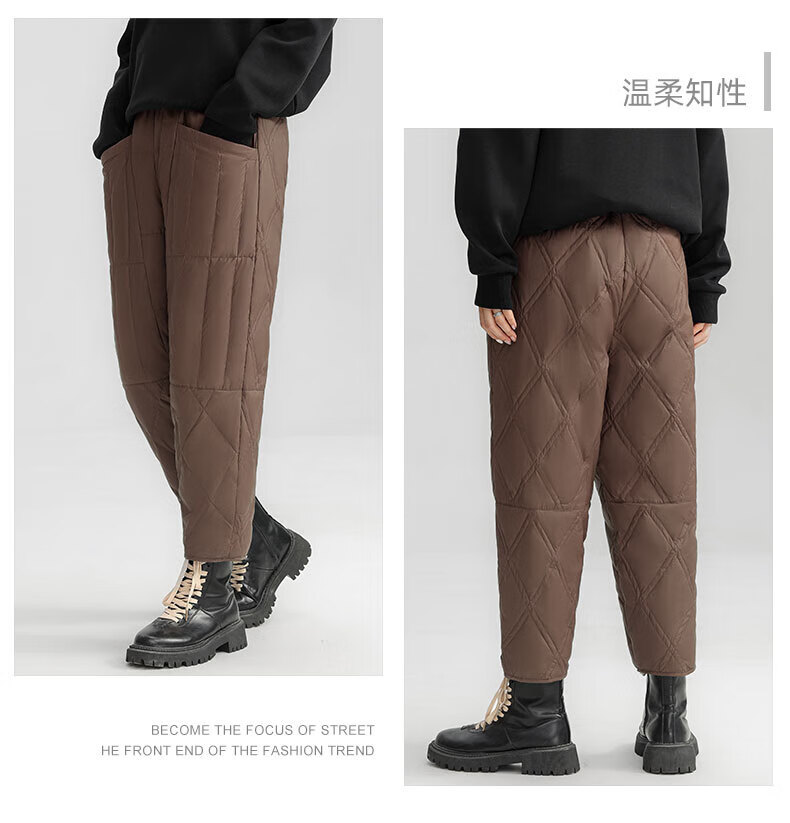 YAYA down pants for women 2024 winter new fashion versatile loose straight duck down warm casual trousers K black L (165)