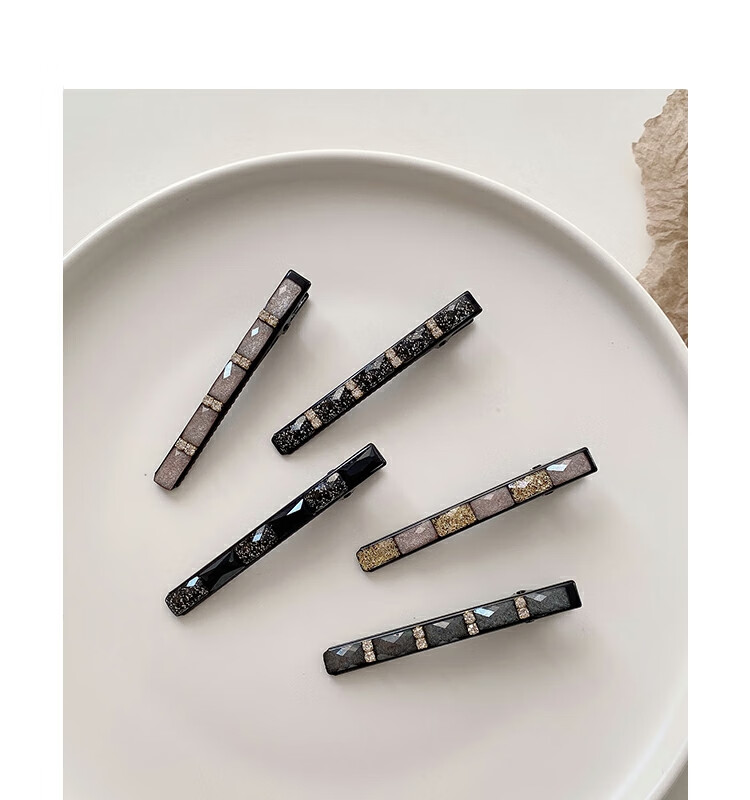 SO SOUL hair clip 2025 new high-end women's side bangs clip forehead one-word clip hair trim side clip simple hair clip rhinestone starry sky black (2 pieces) main picture style