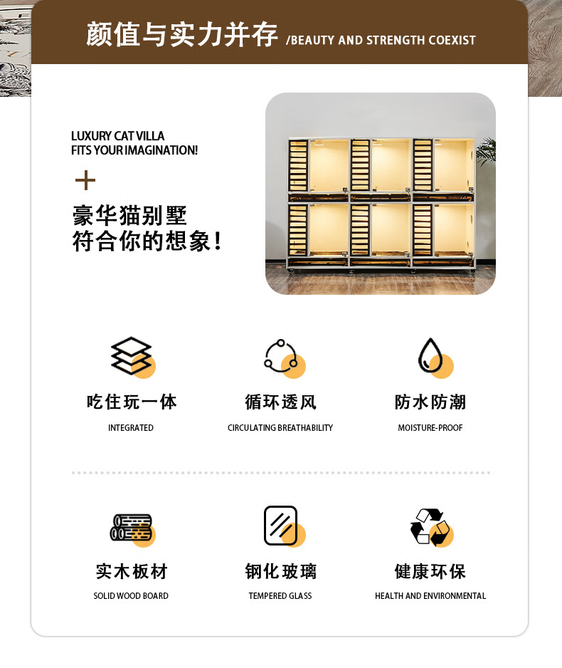 Small dog solid wood glass dog cabinet dog villa pet boarding cage display dog house toilet pet custom dog cage cat and dog in one 15 with tray