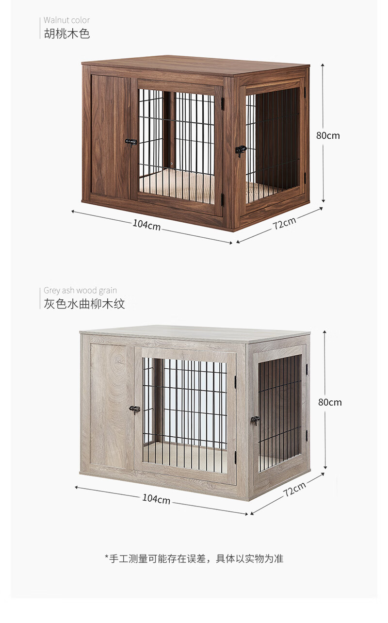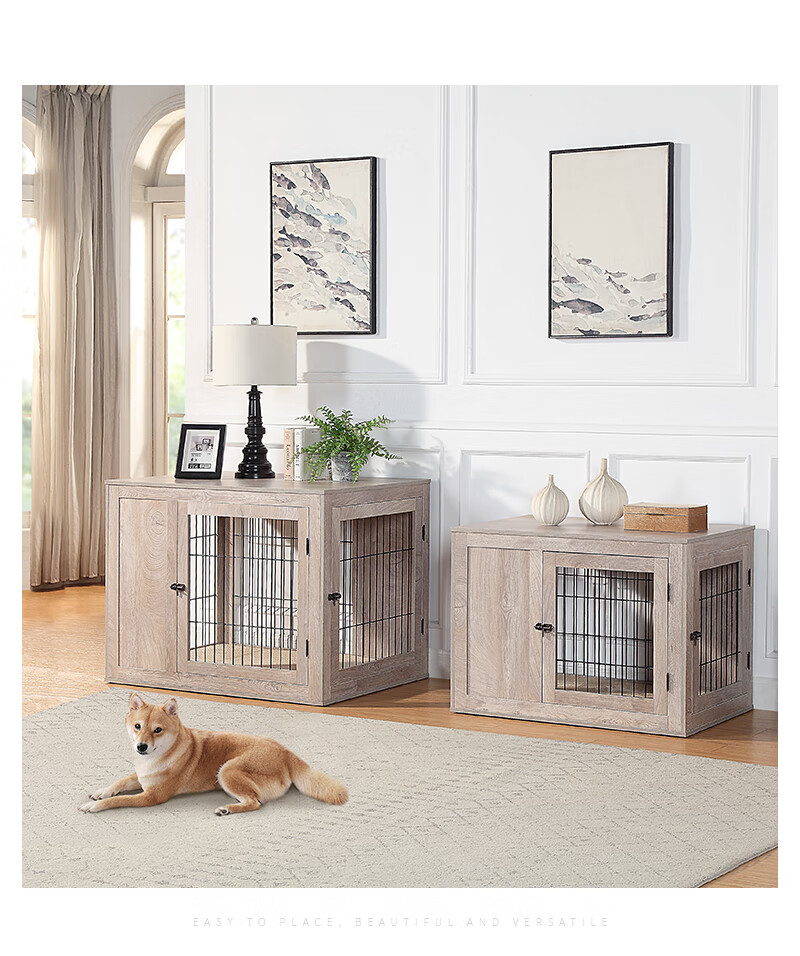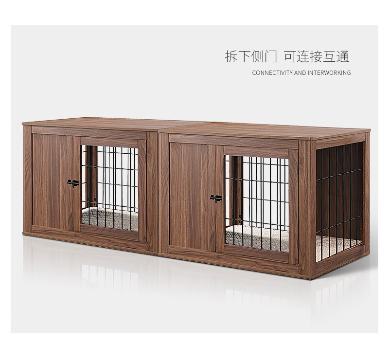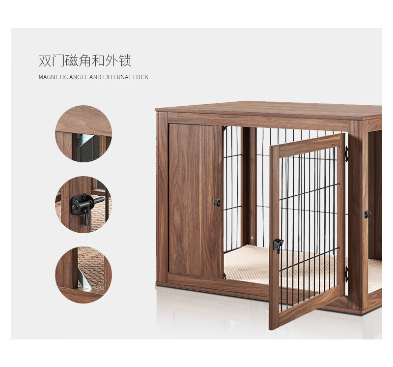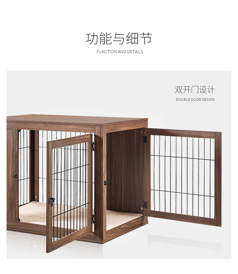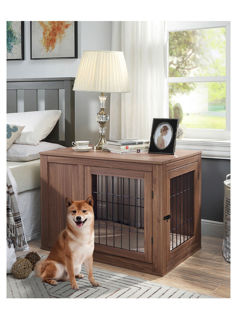 Yakong indoor furniture dog cage double door wooden cage medium-sized dog side animal cage iron cage with side door opening walnut medium size 91*58*67cm