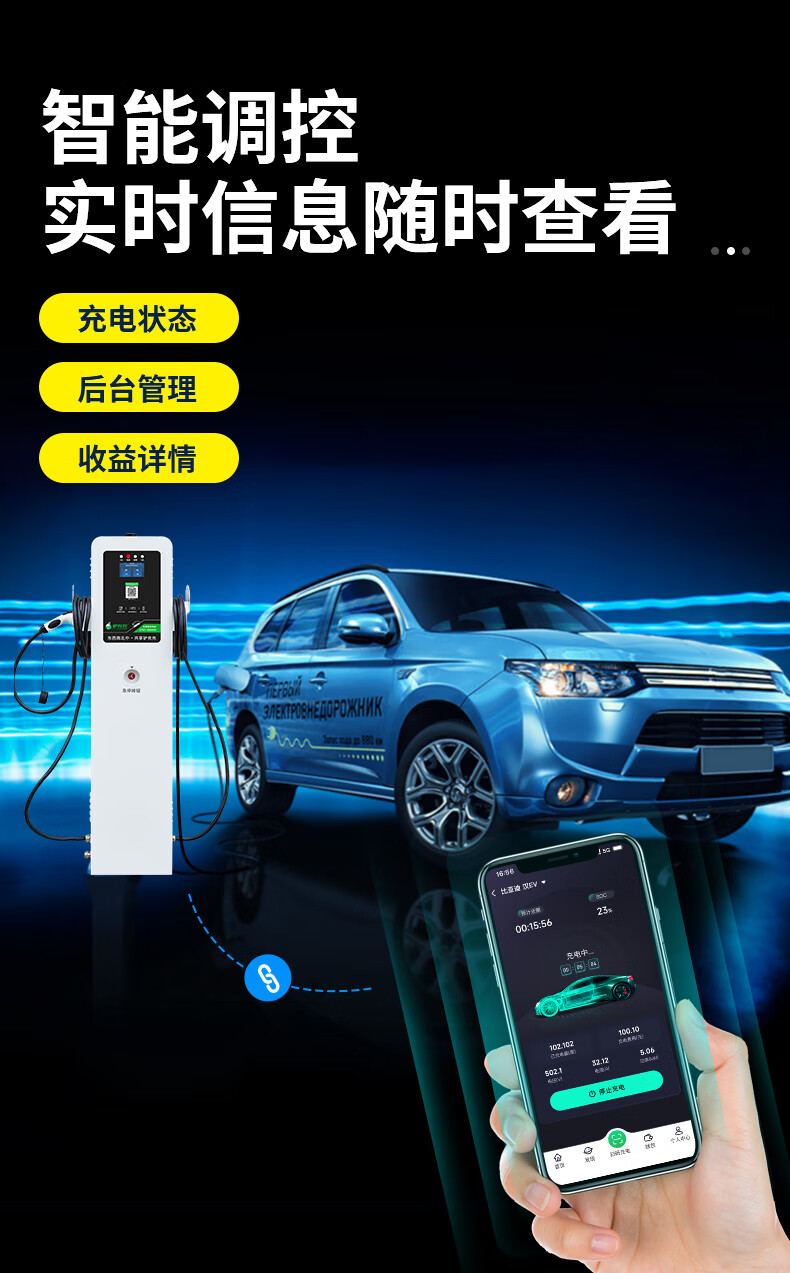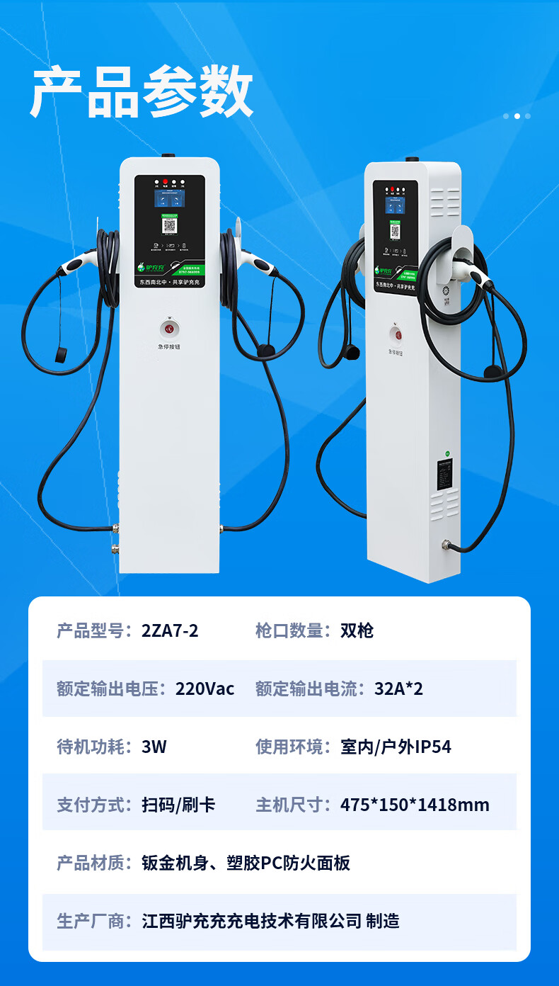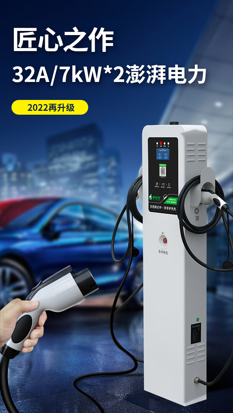 Lvchongchong New Energy Electric Vehicle Charging Pile Charging Station General Community BYD Tesla 7kw/14kw32A Commercial Charging Gun 2ZA7-2 14kW Charging Pile Scan Code + Swipe Card Double Gun 2ZA7-2