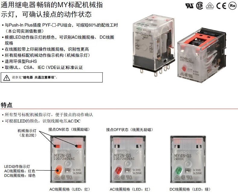 Omron OMRON small DC intermediate relay MY2N-D2 with two poles MY4N-CR-GS with resistance and capacitance 8 feet 14 feet MY4N-D2 DC24V