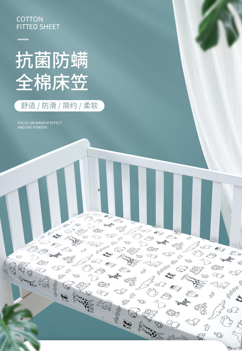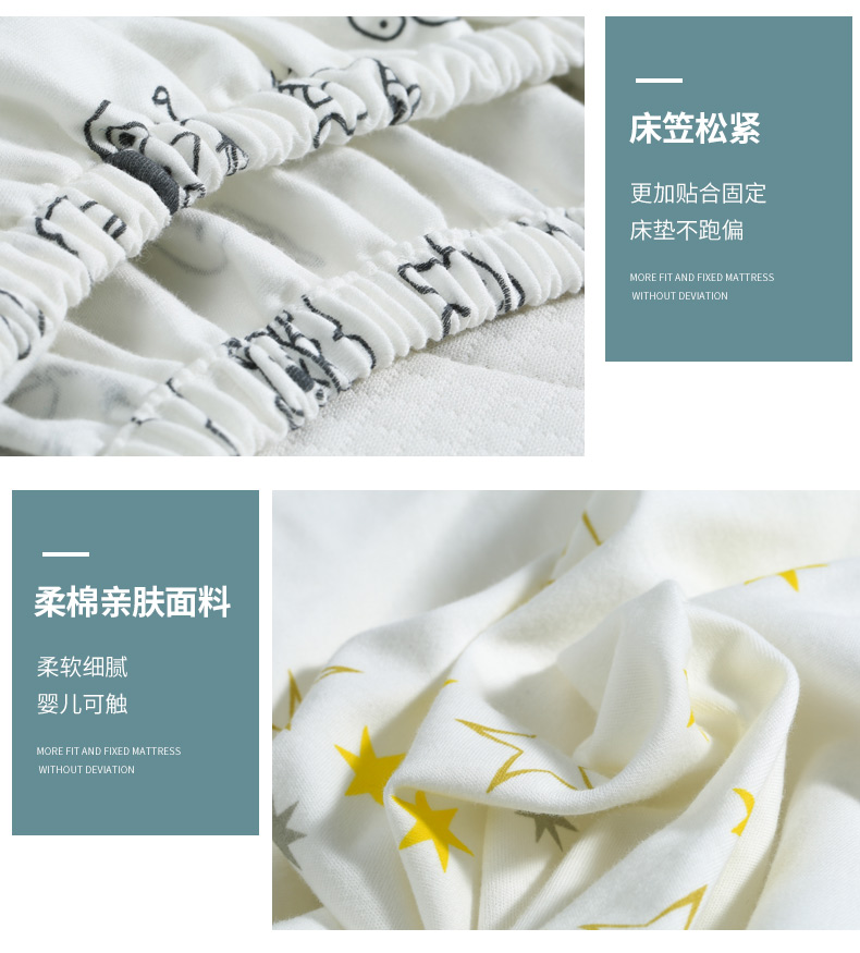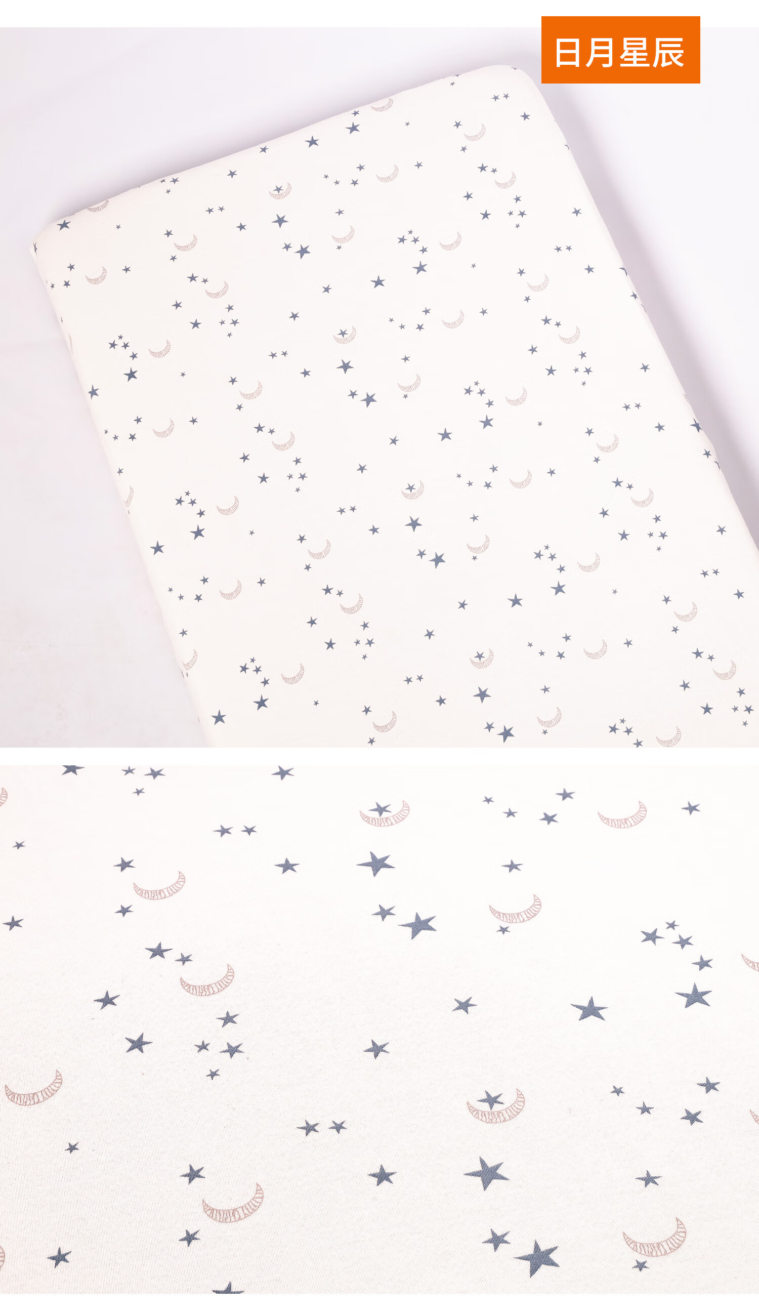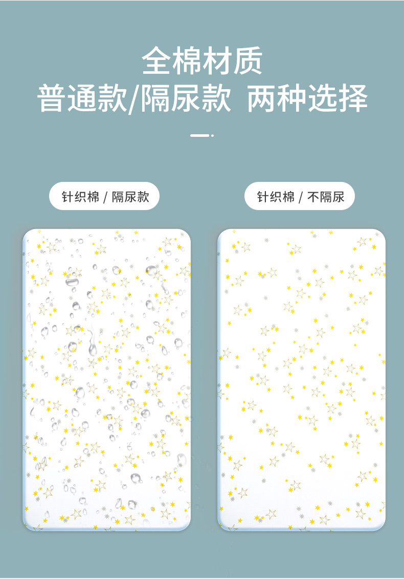 Nuskin crib fitted sheet, pure cotton children's sheet, baby diaper mattress protector, waterproof and breathable custom made sun, moon and stars pure cotton 5A antibacterial 120*65
