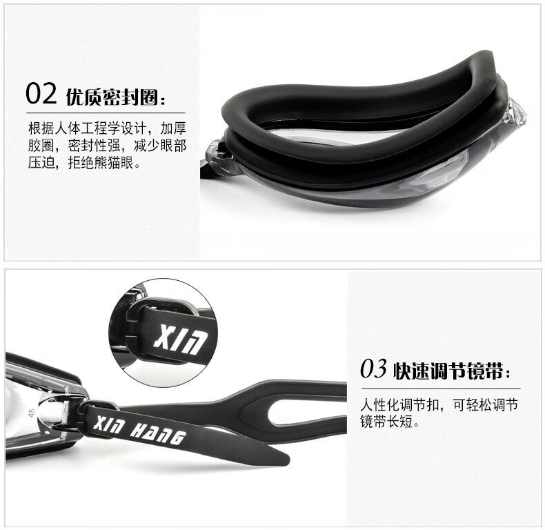 Oeny prescription swimming goggles for adults and men, myopia, swimming cap and trunks set, HD anti-fog, black three-piece set (swimming goggles + swimming cap + nose clip earplugs 800