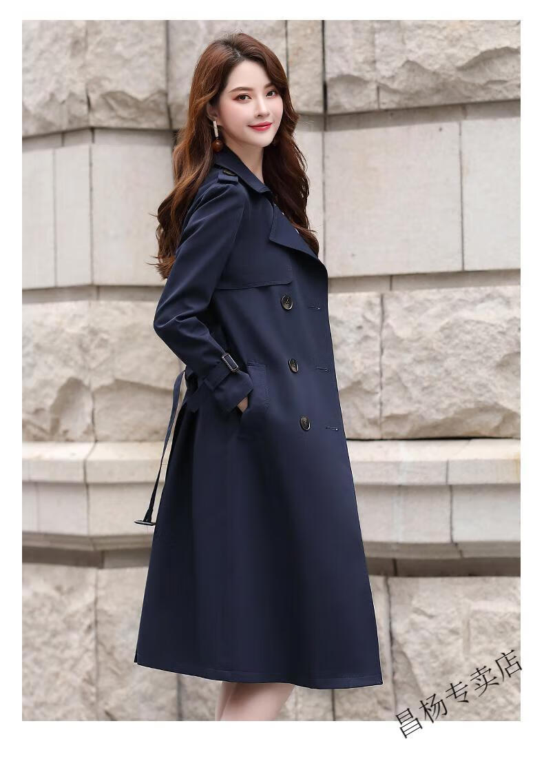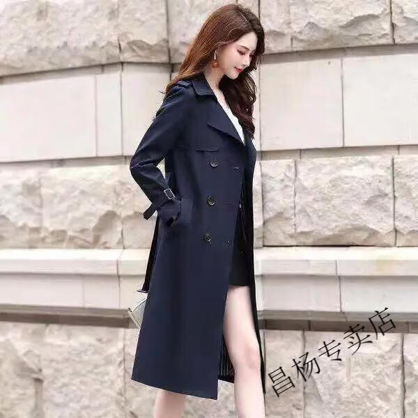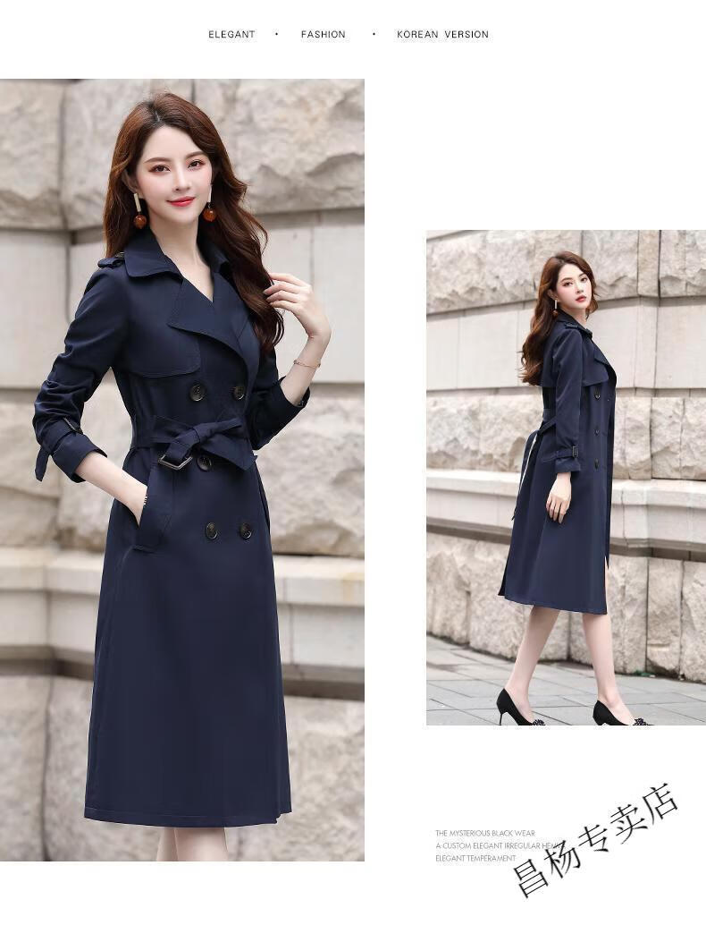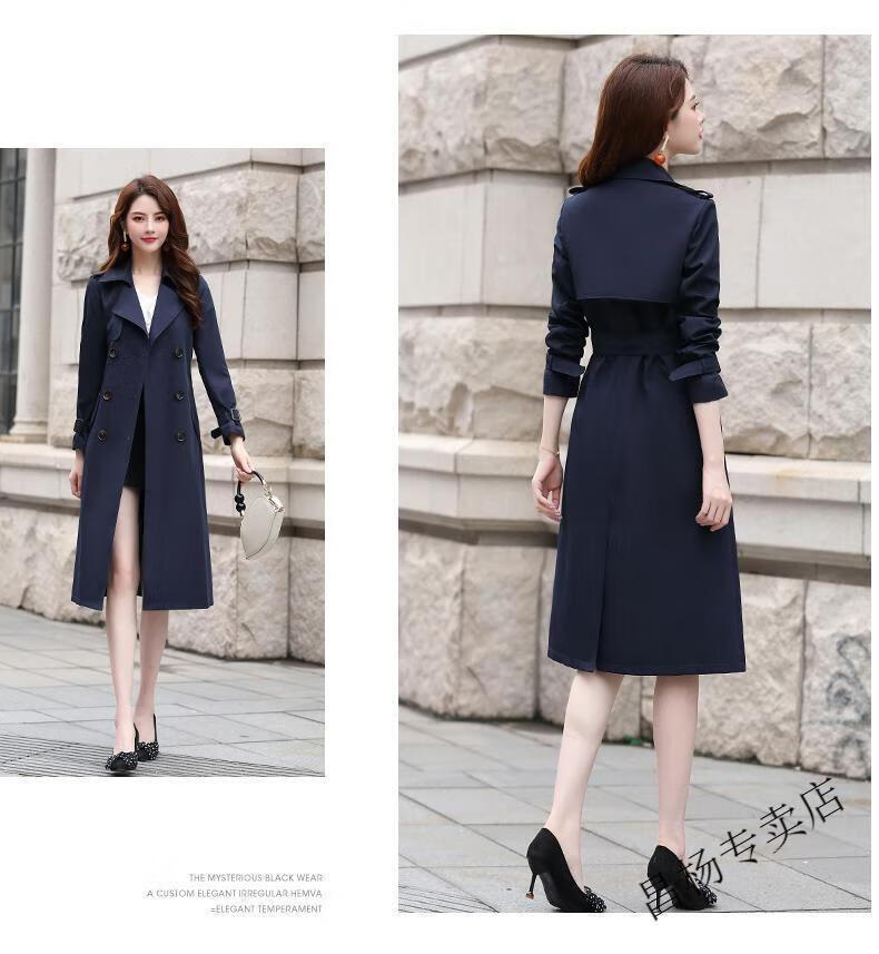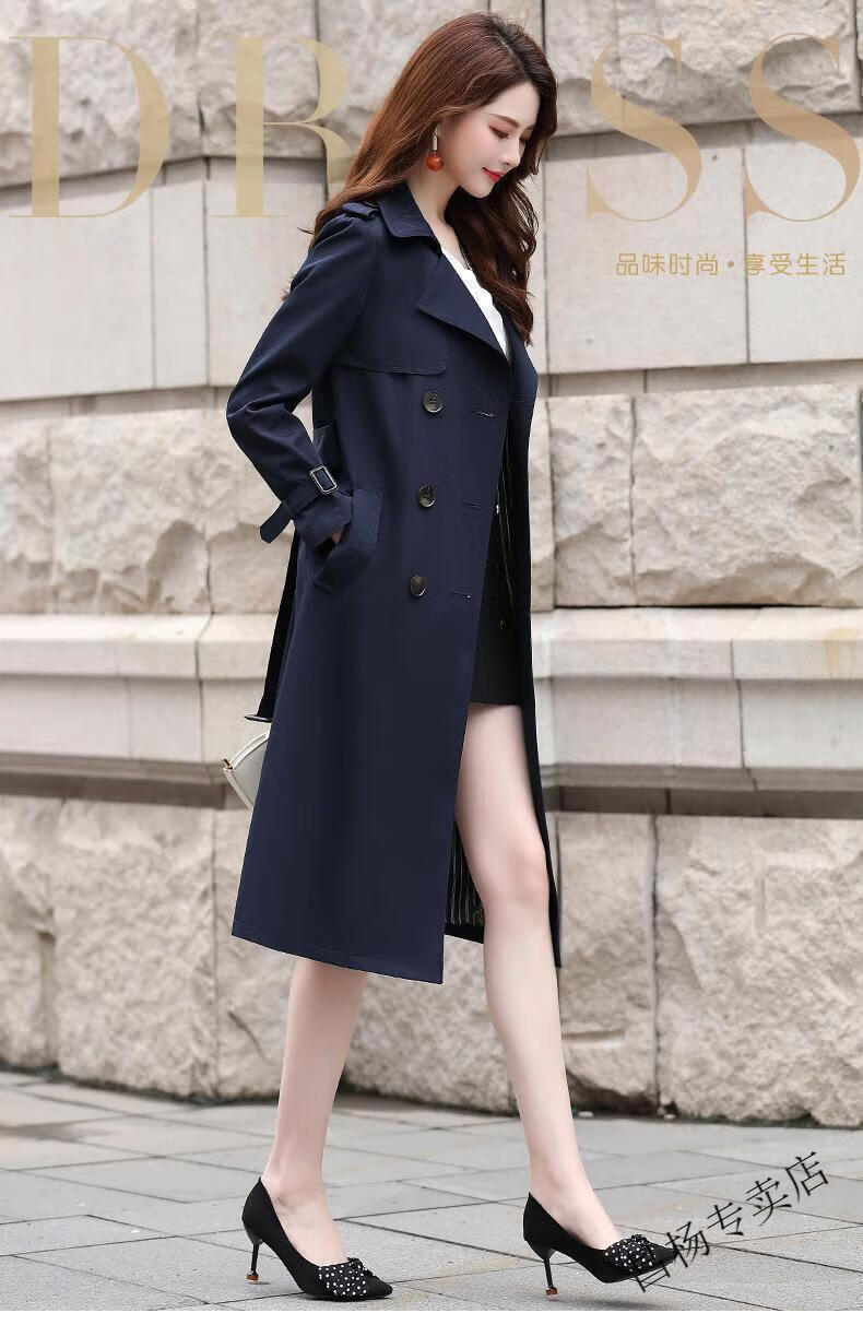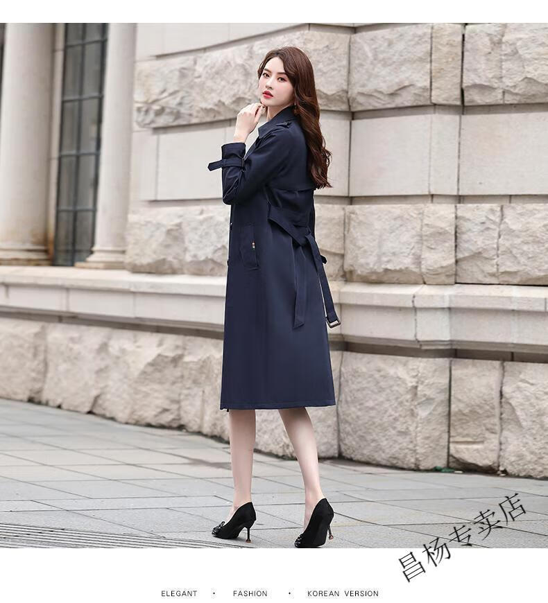 ROMON Lined Windbreaker Women's Mid-Length 2025 Autumn New Korean Style High-Quality Coat Women's Versatile Over-the-Knee Jacket Navy Lined L Recommended 116-130 Jin Jin equals 0.5 kg